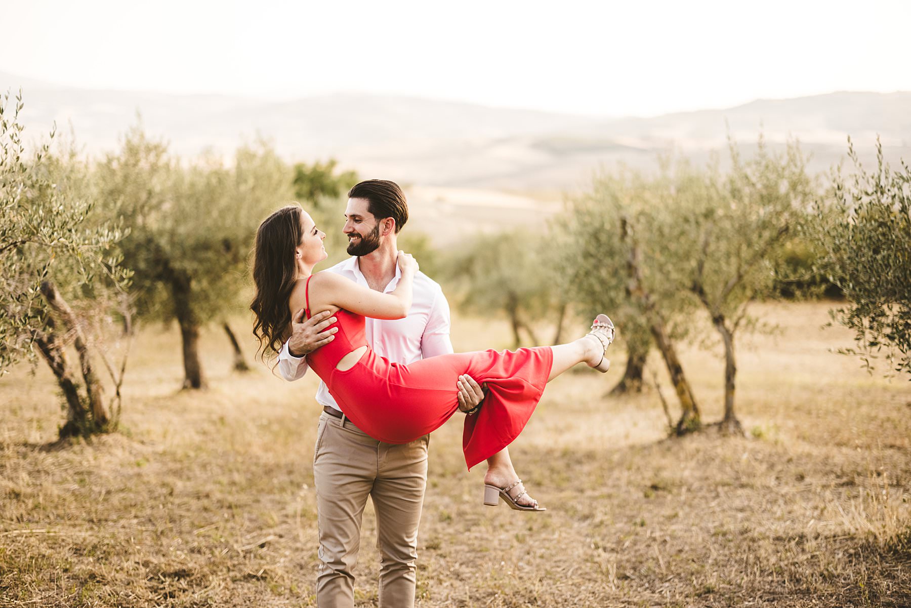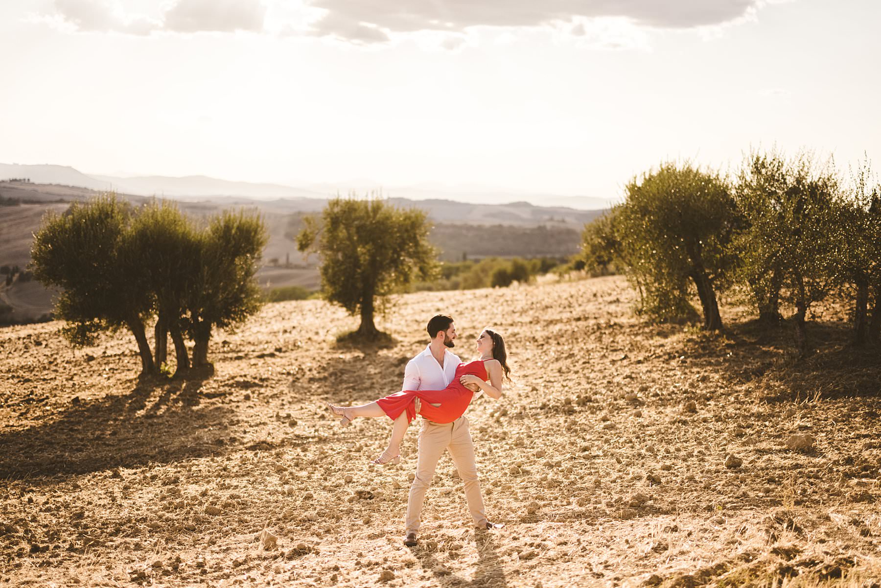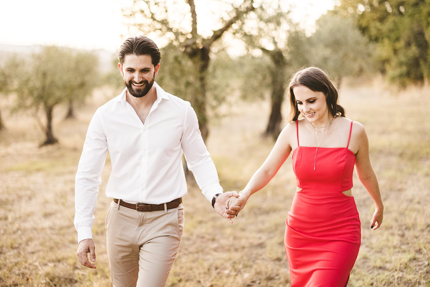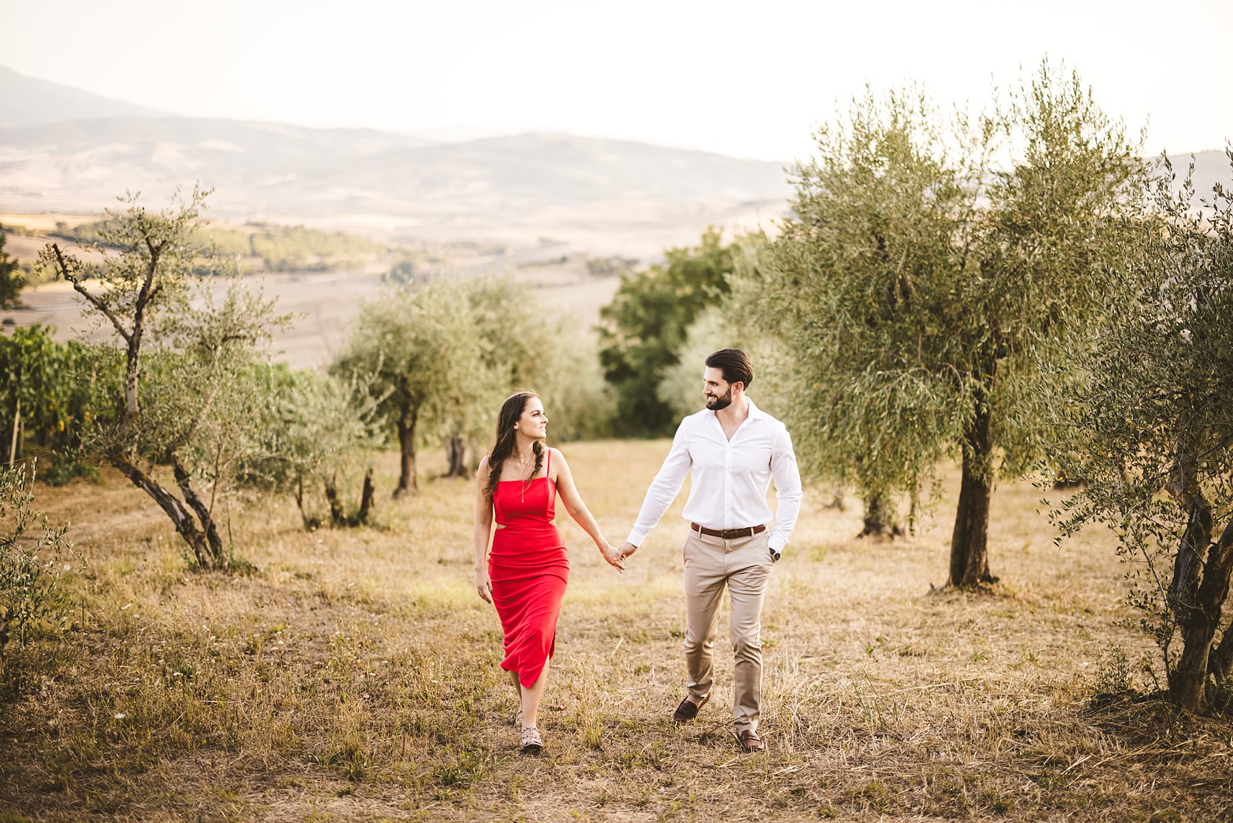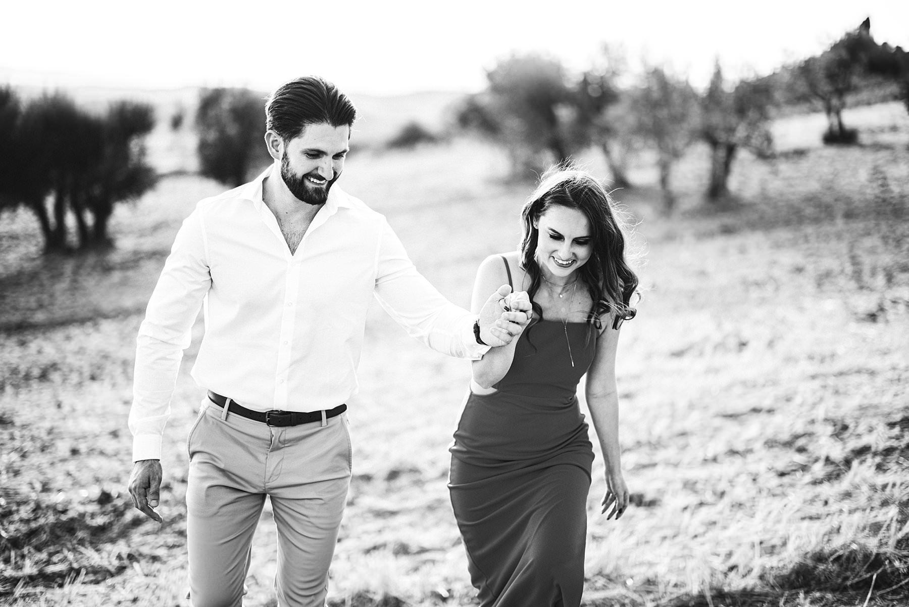 Lovely American couple photo session in the olive groves of Pienza in the countryside of the Val D’Orcia. Photo by the Italian creative elegant and modern engagement photographer in Tuscany Gabriele Fani.