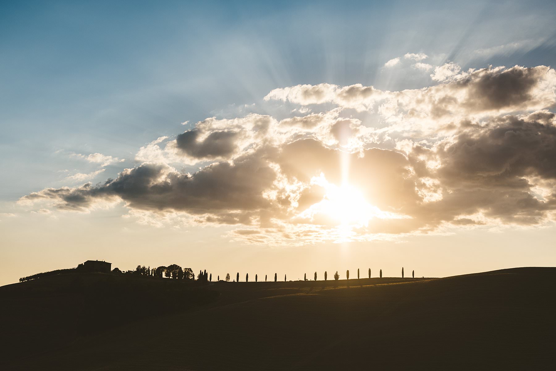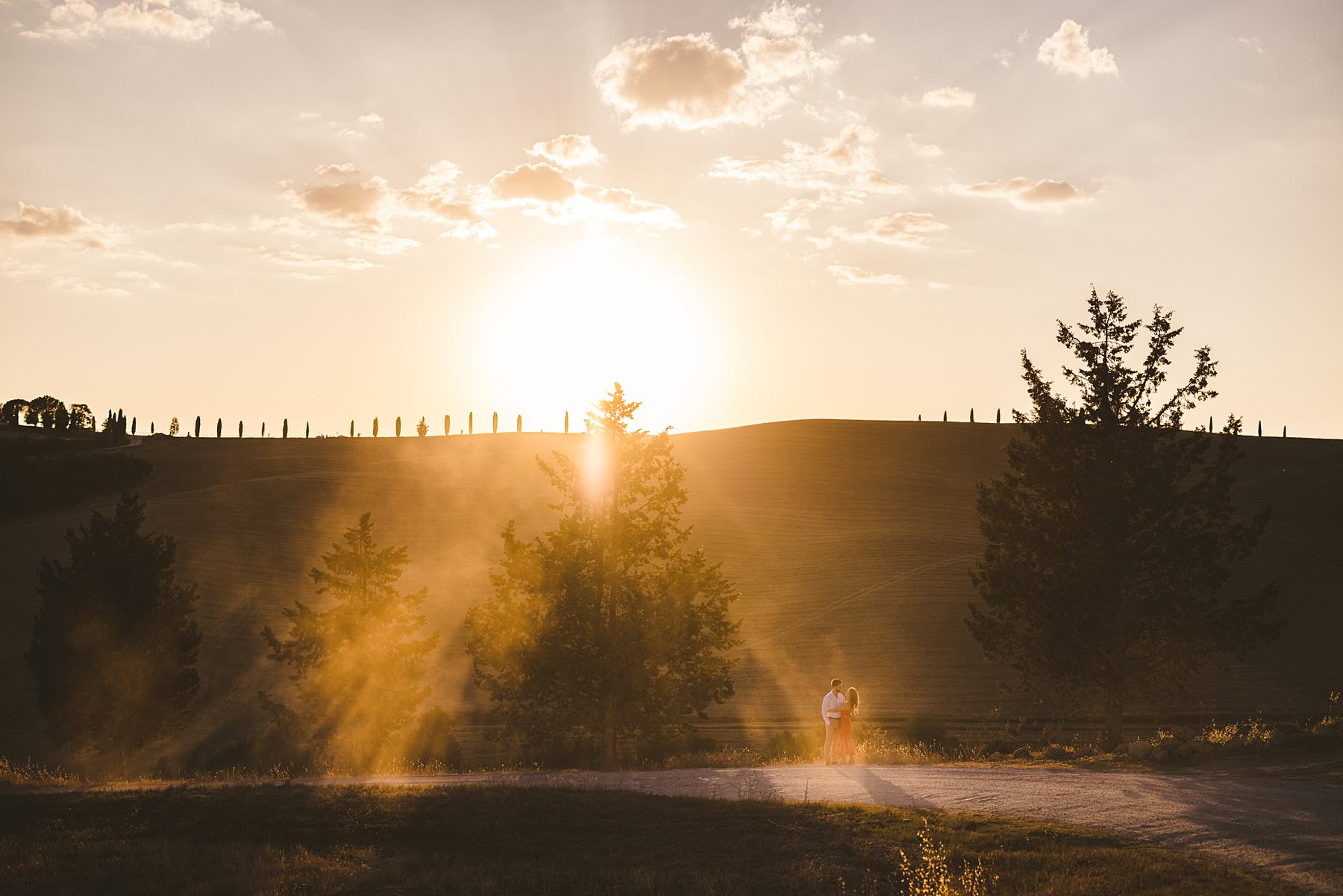 Evocative and iconic Tuscan landscape, a perfect region for a pre-wedding engagement photo shoot in Italy. Photo by the Italian creative elegant and modern engagement photographer in Tuscany Gabriele Fani.