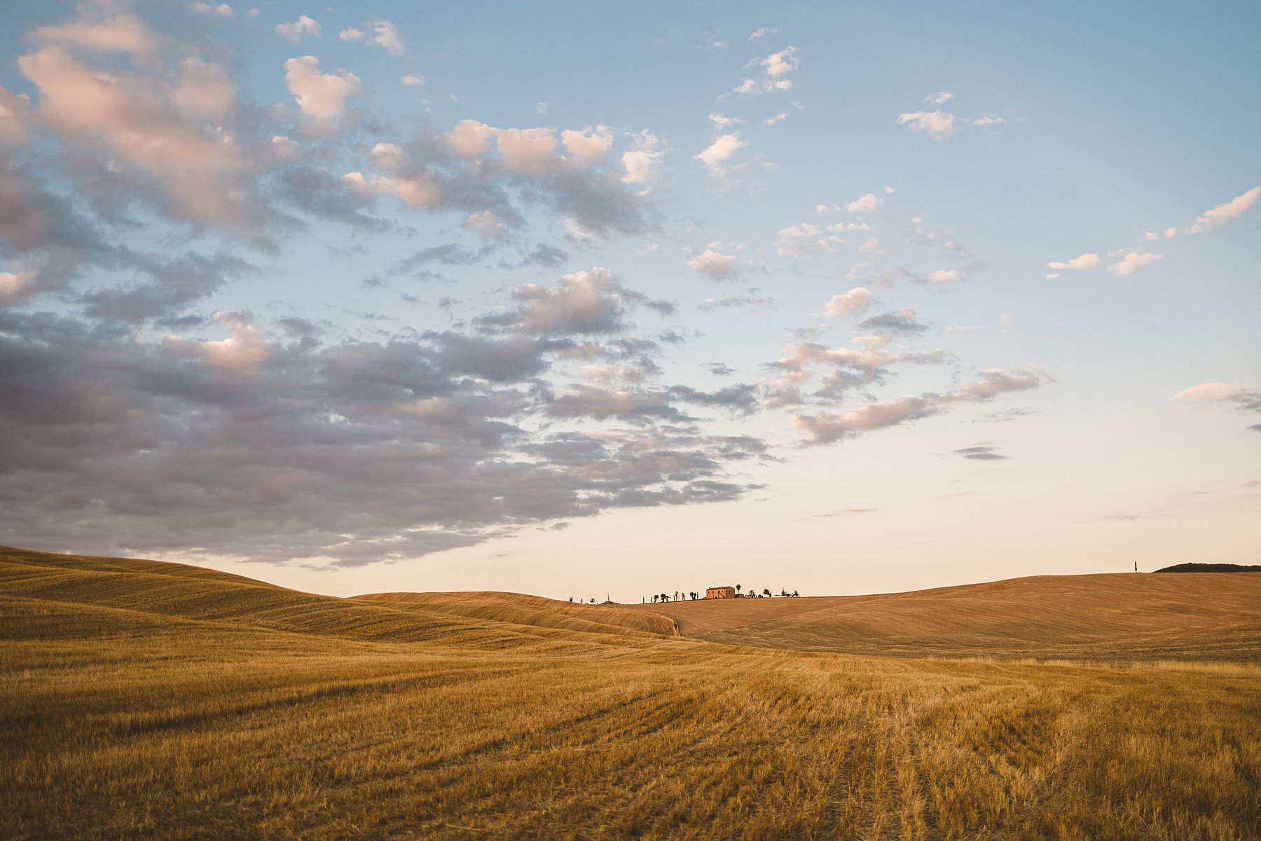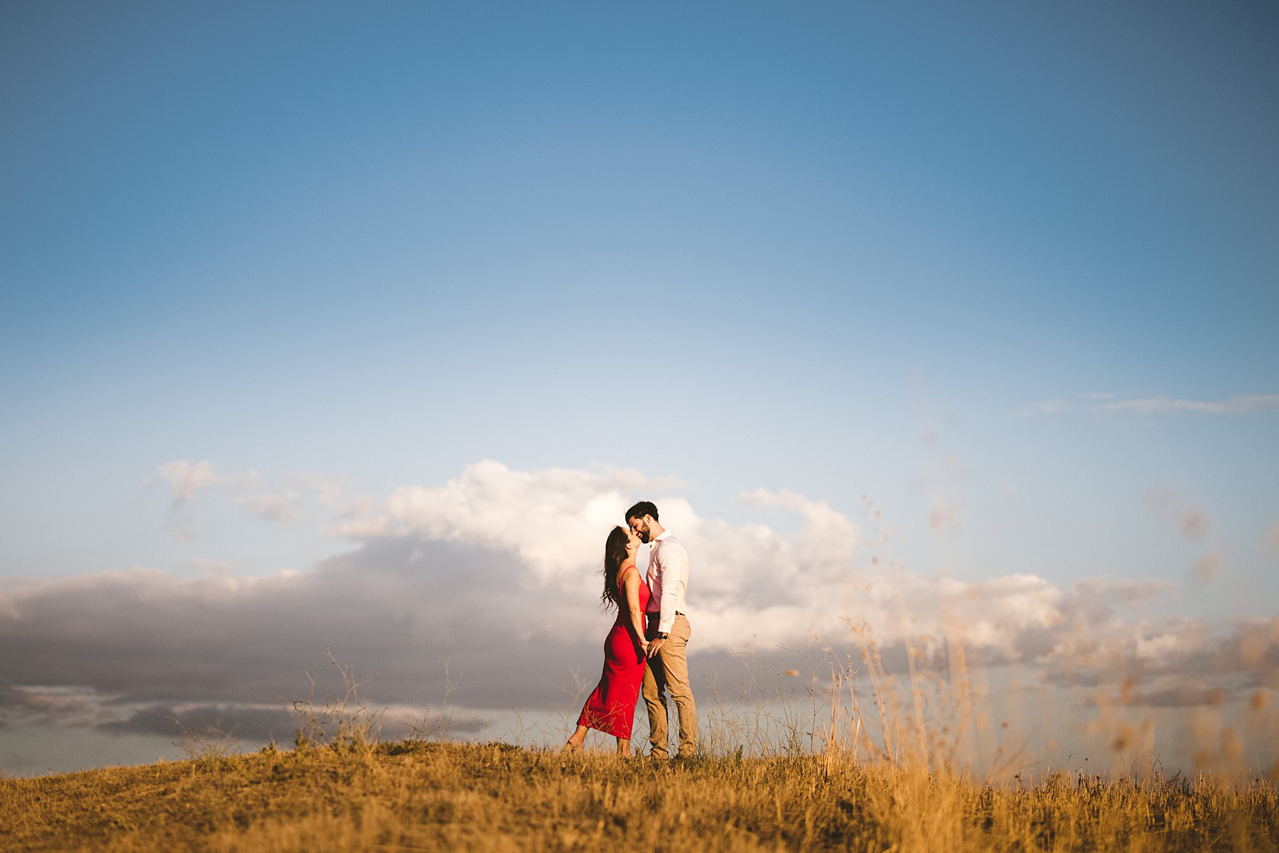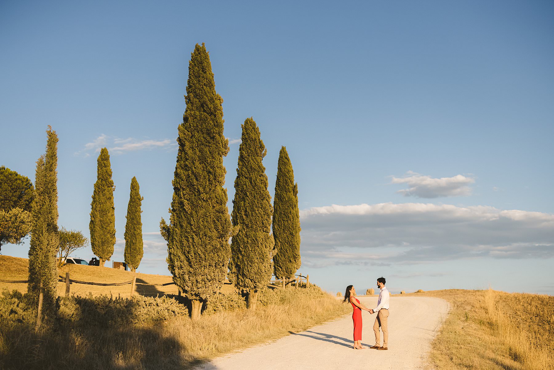For the second part of the session we moved to the hills of the valley, covered in golden fields and green vineyards. Cheyenne and Filip had the strong desire to take some cute couple photoswith the iconic cypresses on the background – and I was happy to fulfil their dream.