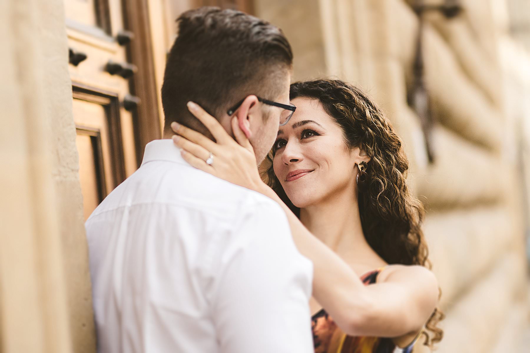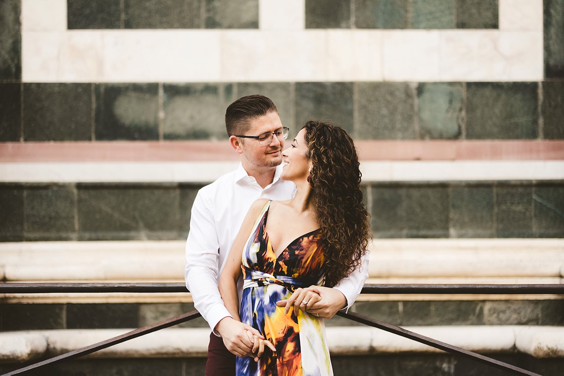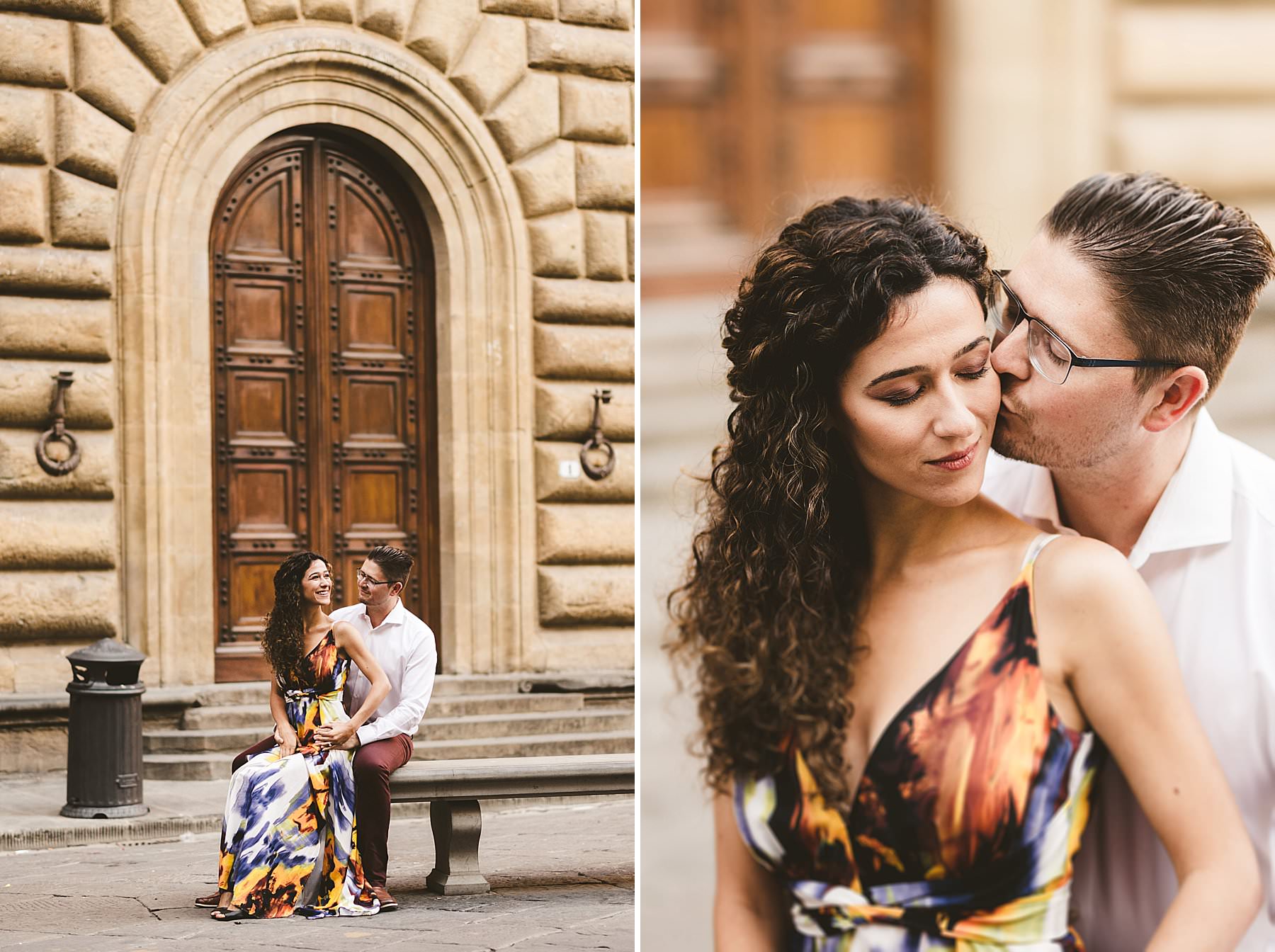 Lovely couple portrait session in the heart of Florence streets. Photo by the Italian elegant creative and modern engagement photographer in Tuscany based in Florence Gabriele Fani