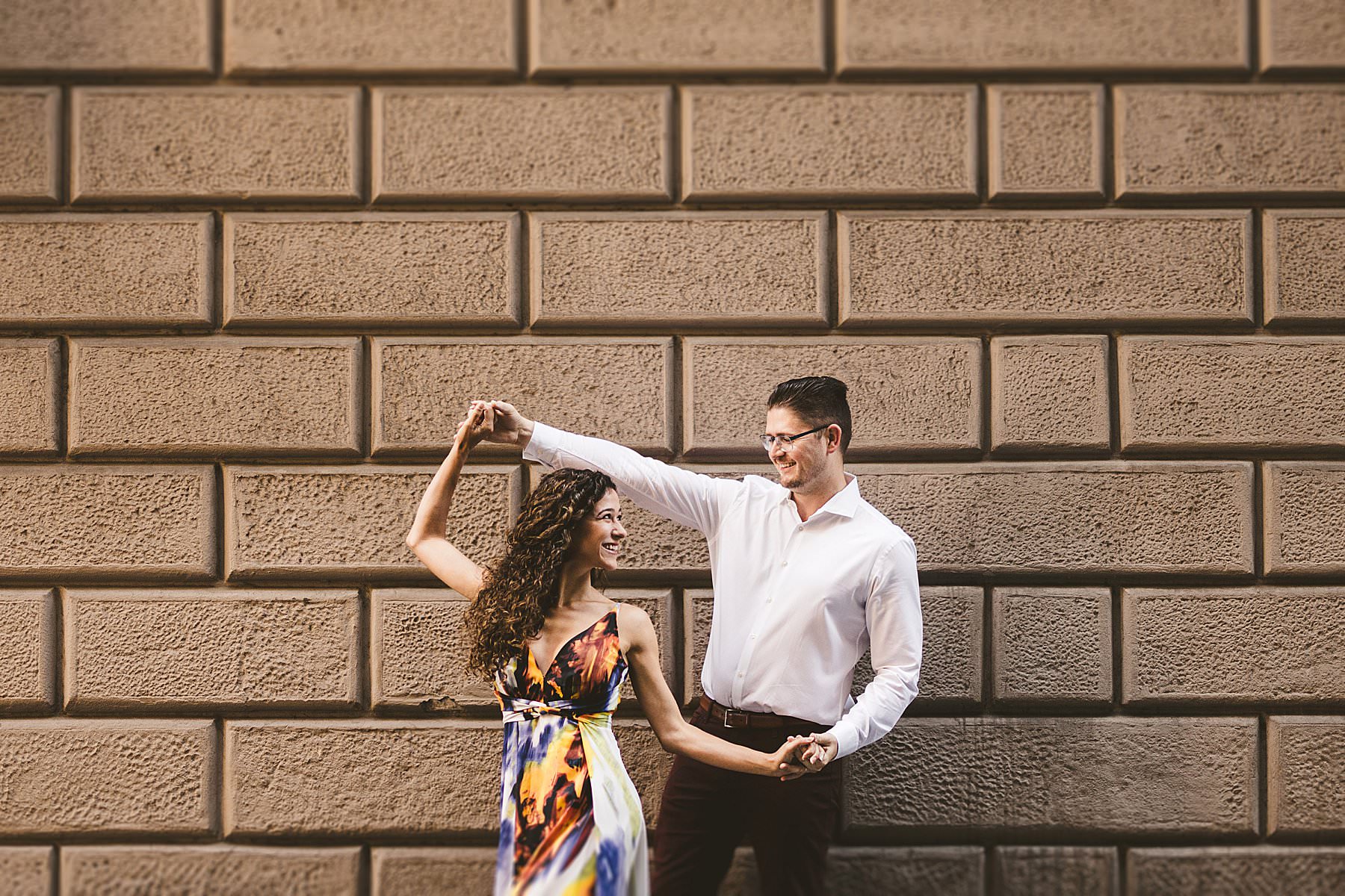 Spontaneous and exciting honeymoon photo shoot in Florence at sunrise. Photo by the Italian elegant creative and modern engagement photographer in Tuscany based in Florence Gabriele Fani