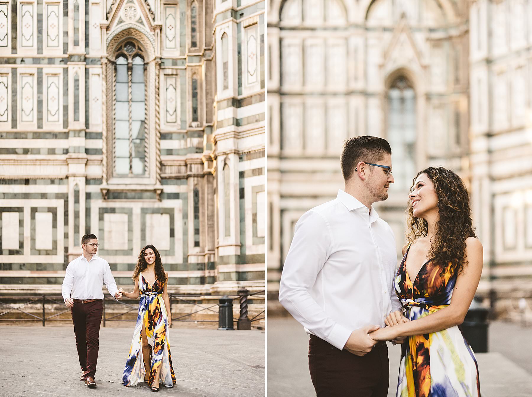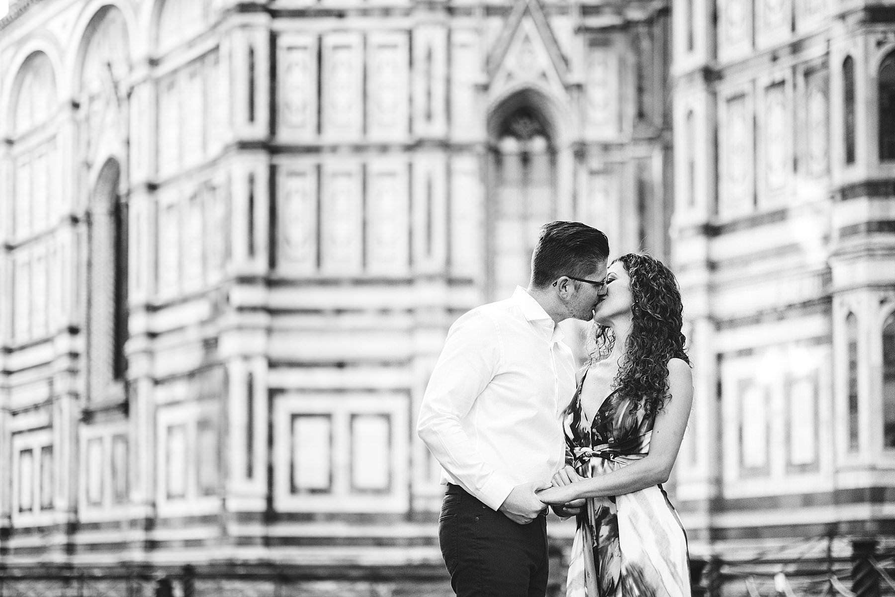 Exciting honeymoon walk tour photography in Florence at sunrise. Photo by the Italian elegant creative and modern engagement photographer in Tuscany based in Florence Gabriele Fani