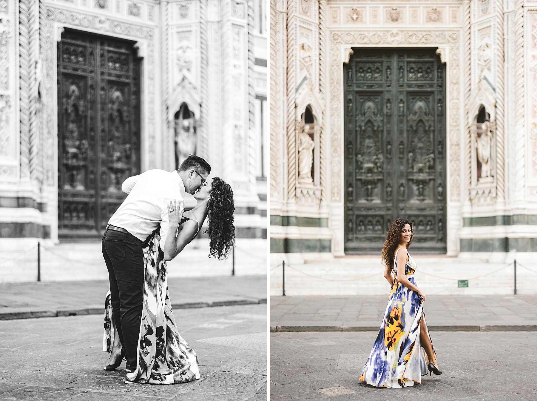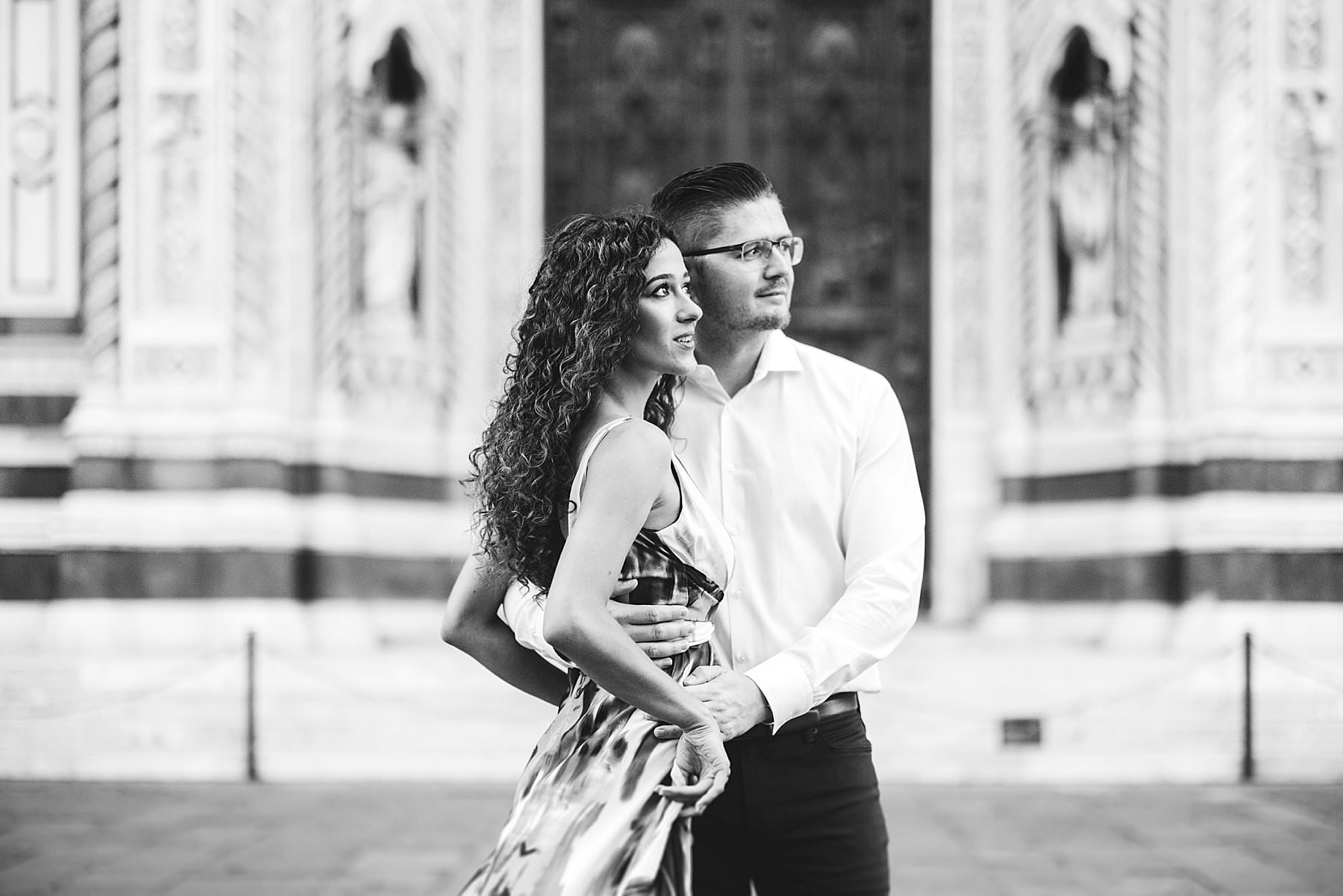 Elegant early morning couple portrait photo session near the Duomo in the heart of Florence. Photo by the Italian elegant creative and modern engagement photographer in Tuscany based in Florence Gabriele Fani