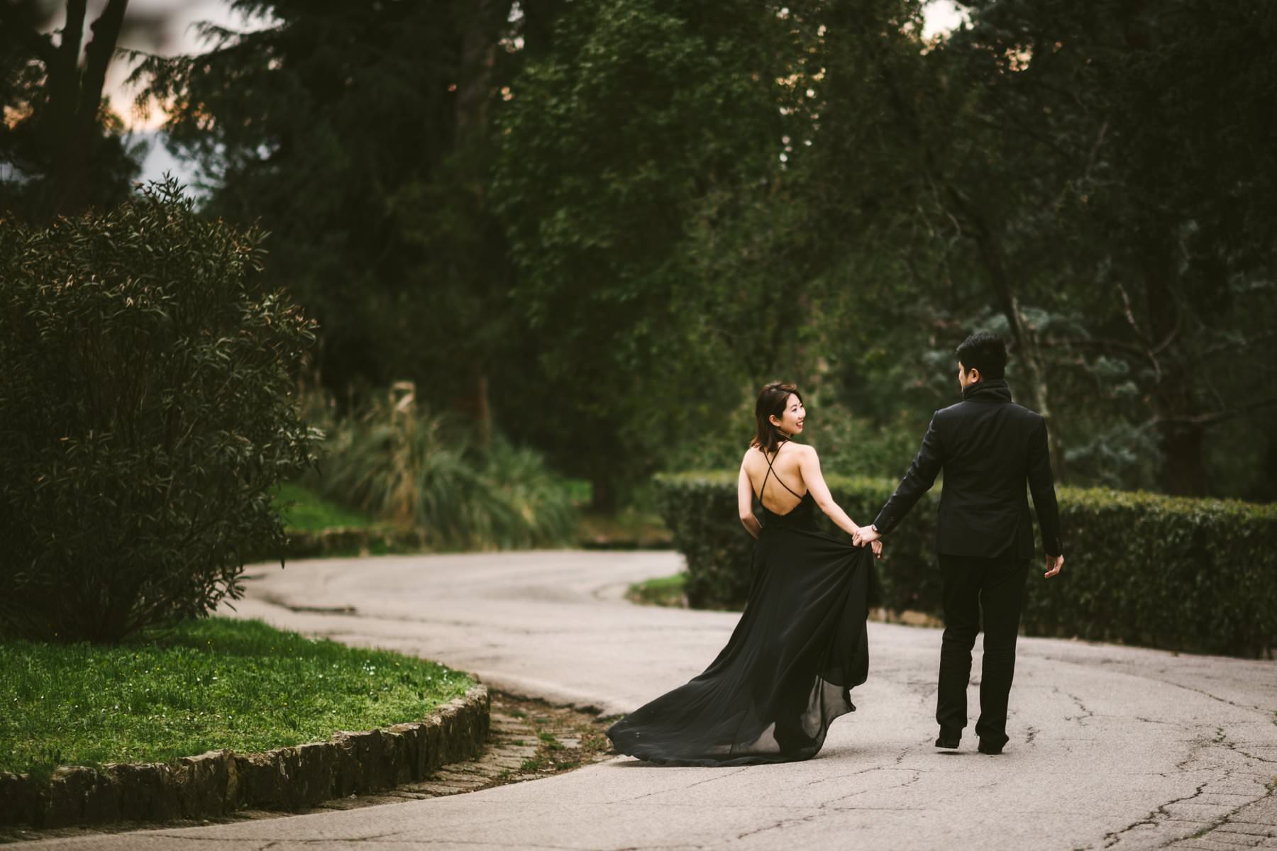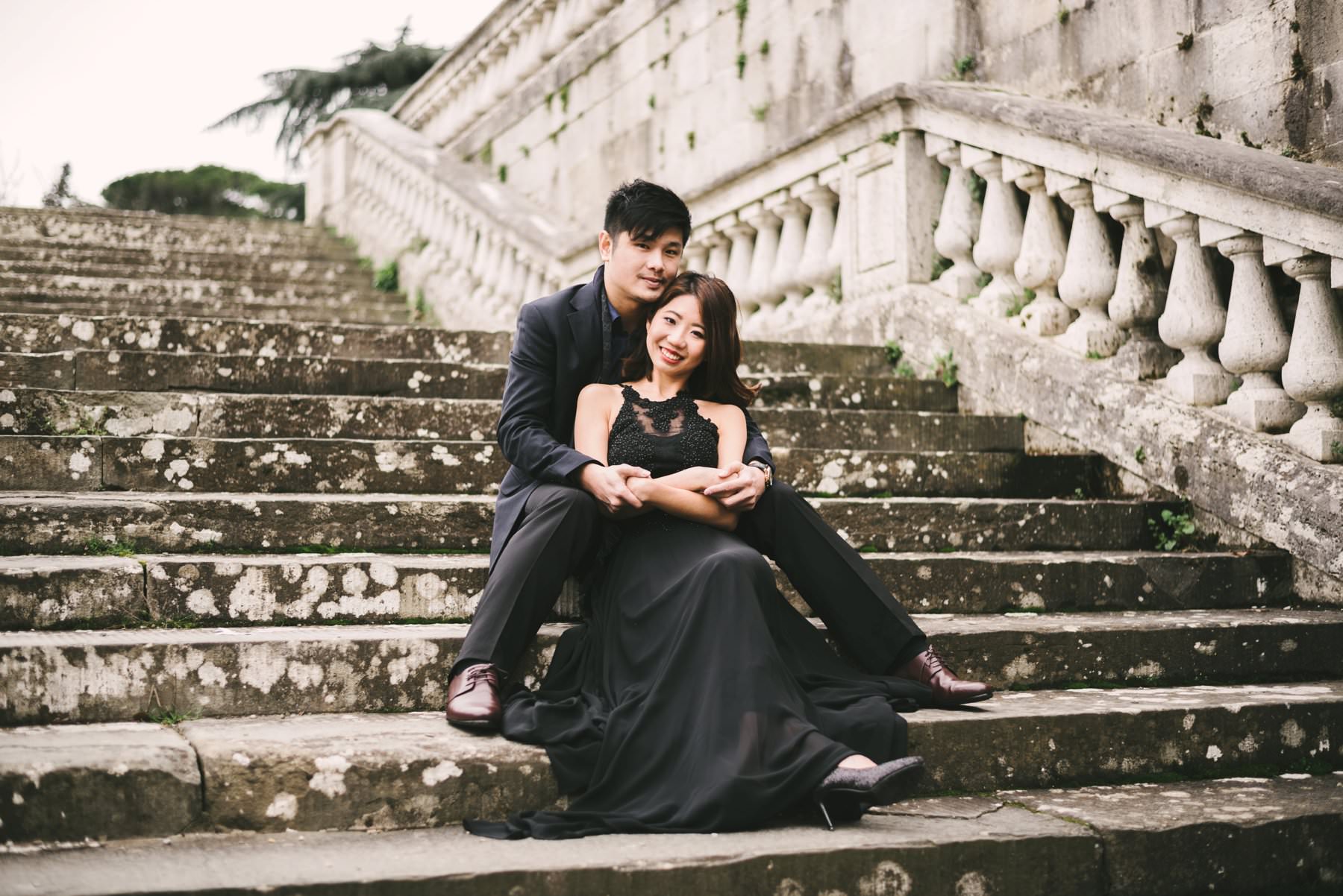 We started from the Basilica of San Miniato al Monte, where you can contemplate one of the most evocative views of Florence. But the landscape itself is not enough: the key for an emotional couple shoot lays in the ability of the prewedding photographer to capture your personality – and that’s what I did with Melissa and Ray, realizing elegant and candid engagement photos.