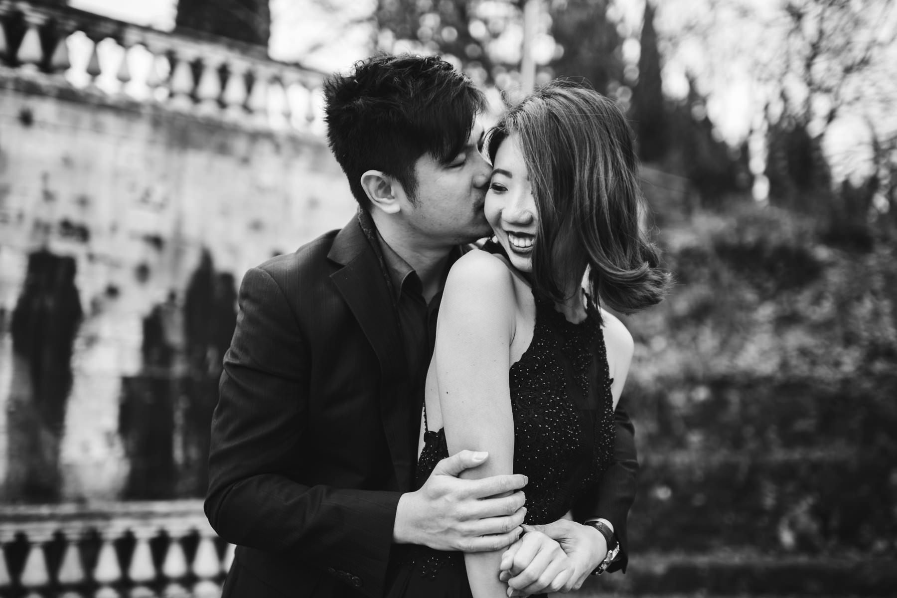Lovely and delicate moment during an engagement photo shoot in Florence near Piazzale Michelangelo. Melissa and Ray from Singapore are sharing some love. Photo by the Italian creative and modern couple photographer in Tuscany based Florence Gabriele Fani.