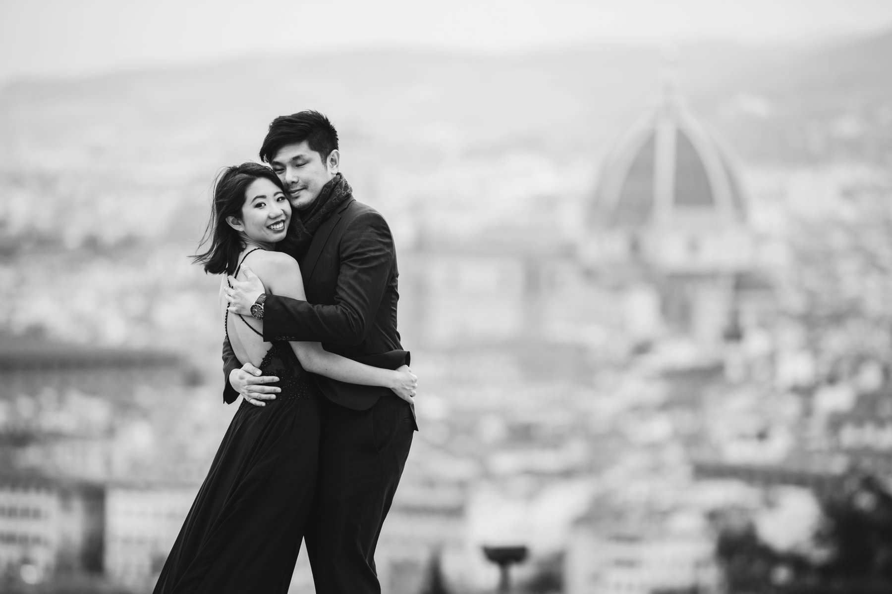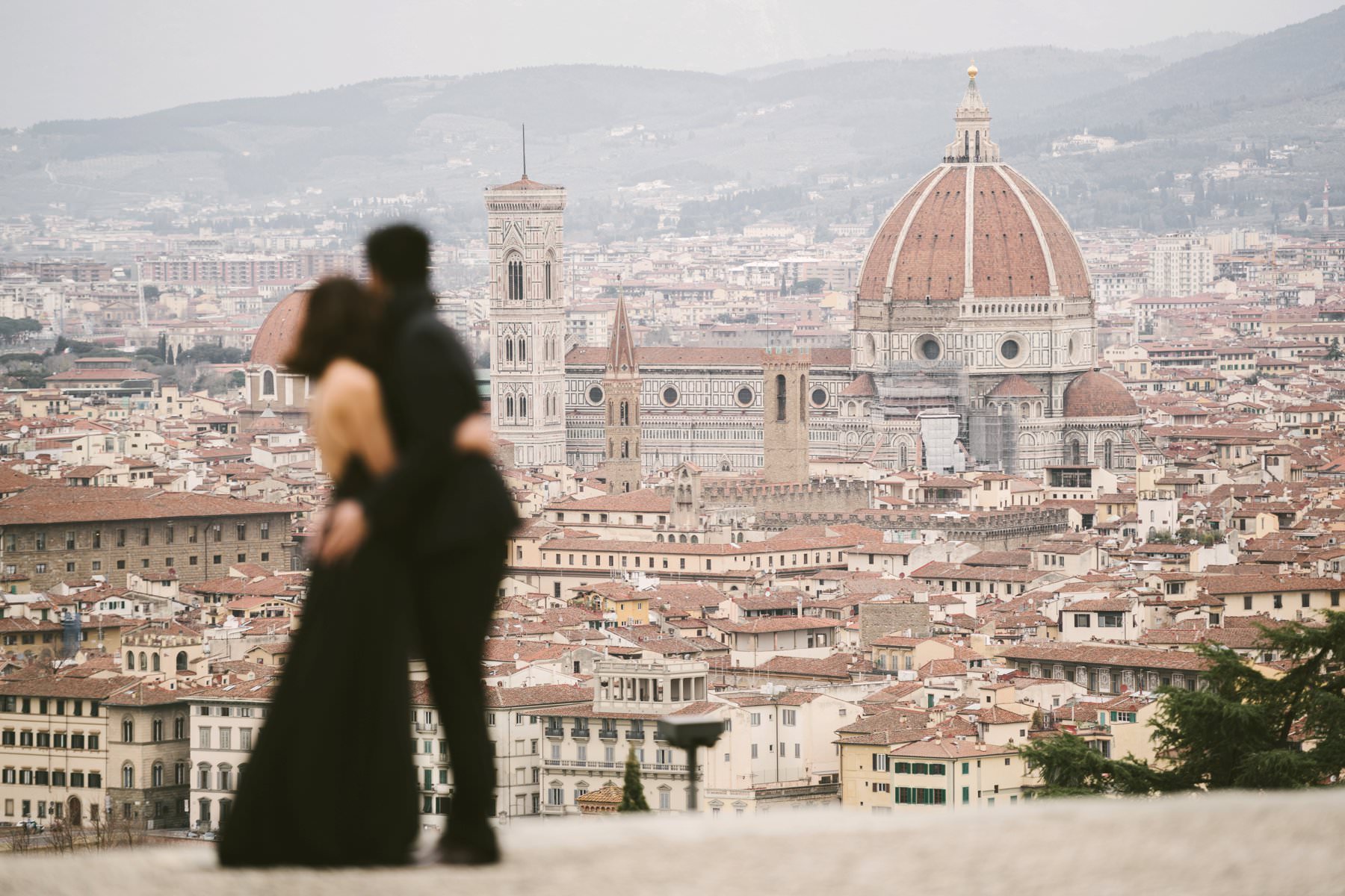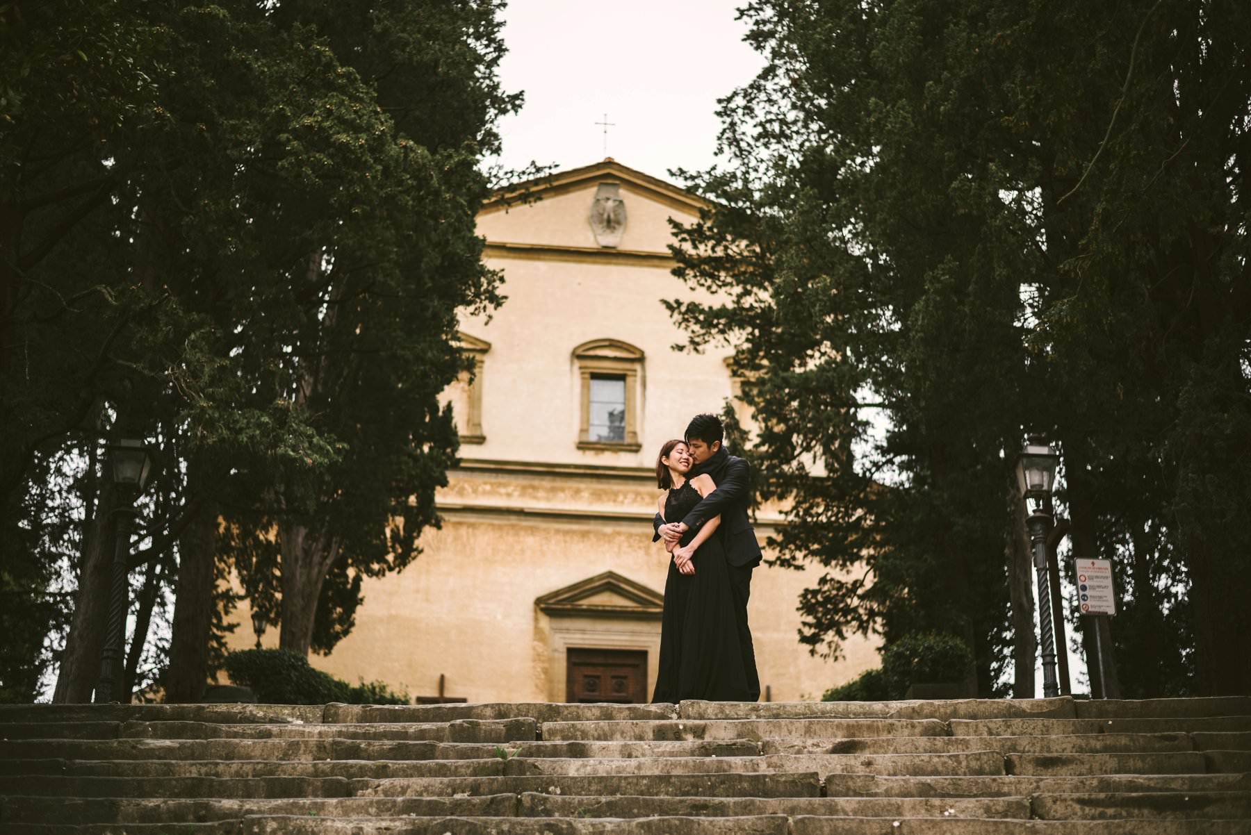 Creative and modern vacation photographer in Tuscany based Florence Gabriele Fani photographer. I really love capture authentic emotional moment for awesome clients who want to share their love in front of my camera. Build memories that last forever is my mission. Here we are with Jessy and Leigh at San Miniato al Monte near Piazzale Michelangelo a perfect starting point to take a walk tour and take pictures into the streets.