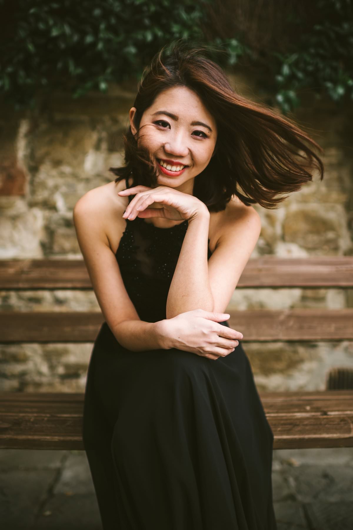 Elegant and beautiful Melissa during a prewedding photo shoot in Florence with boyfriend Ray. Photo by by the Italian creative and modern engagement pre wedding portrait photographer in Tuscany based Florence Gabriele Fani.