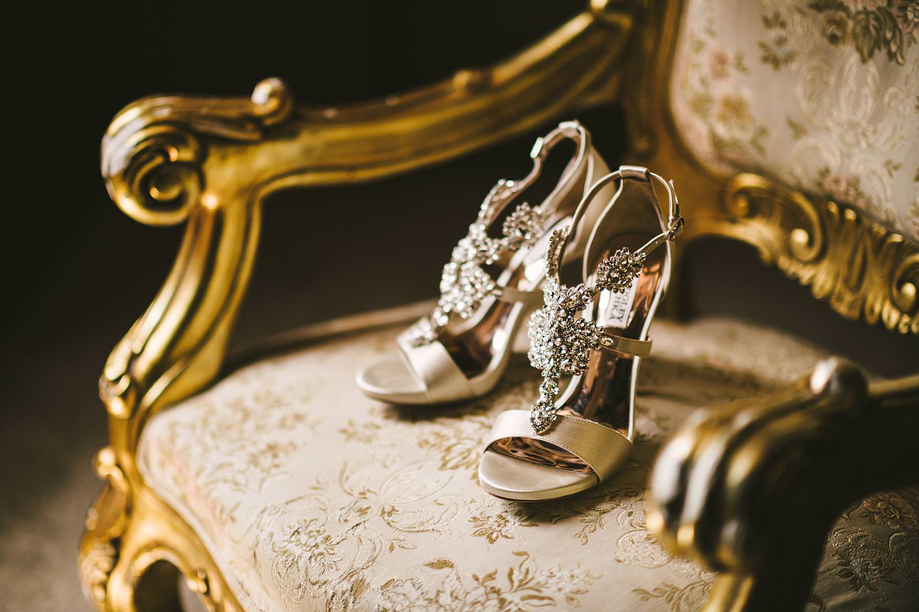Elegant bride wedding shoes in a gorgeous light at Valenzano Castle near Arezzo. Destination wedding in Tuscany. Photo by the Italian elegant modern wedding photographer in Tuscany based Florence Gabriele Fani