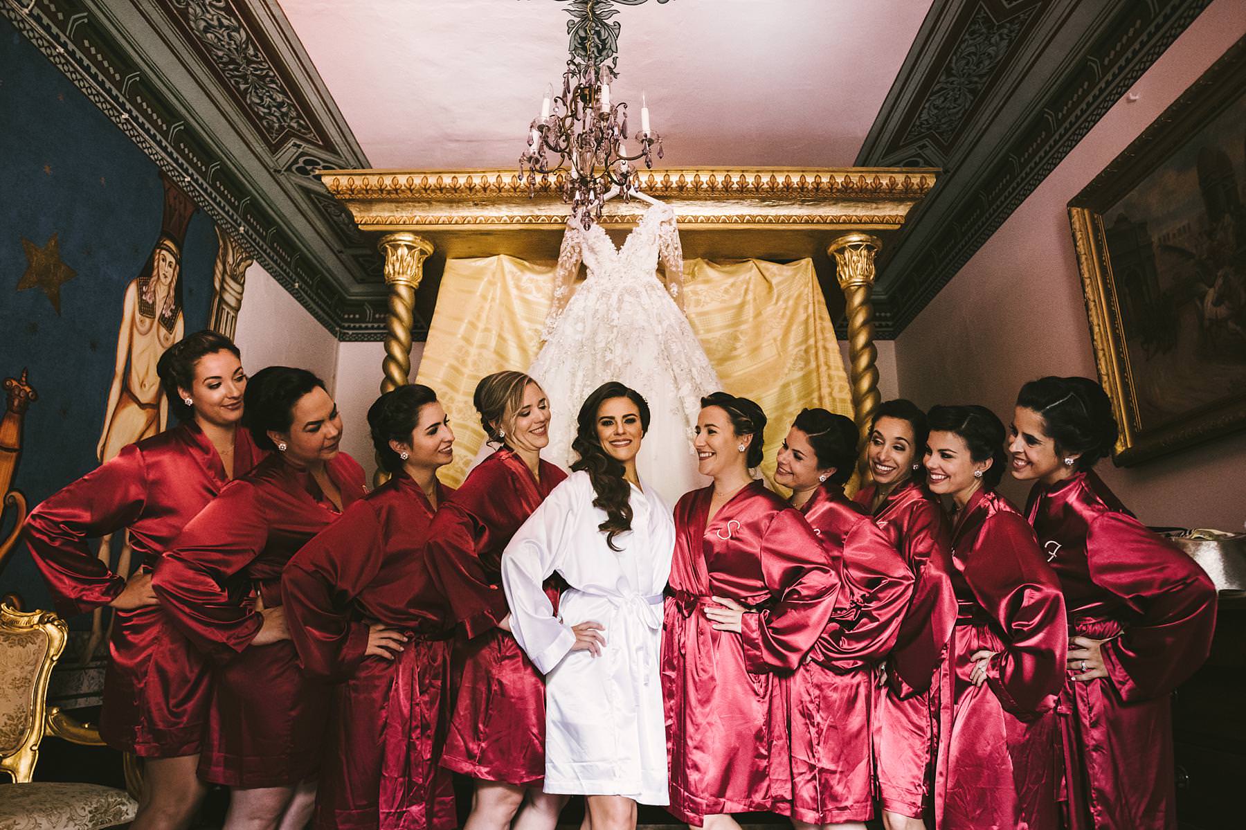 Beautiful bride Ilyssa with lovely bridesmaids at Valenzano Castle near Arezzo. Destination wedding in Tuscany. Photo by the Italian elegant modern wedding photographer in Tuscany based Florence Gabriele Fani