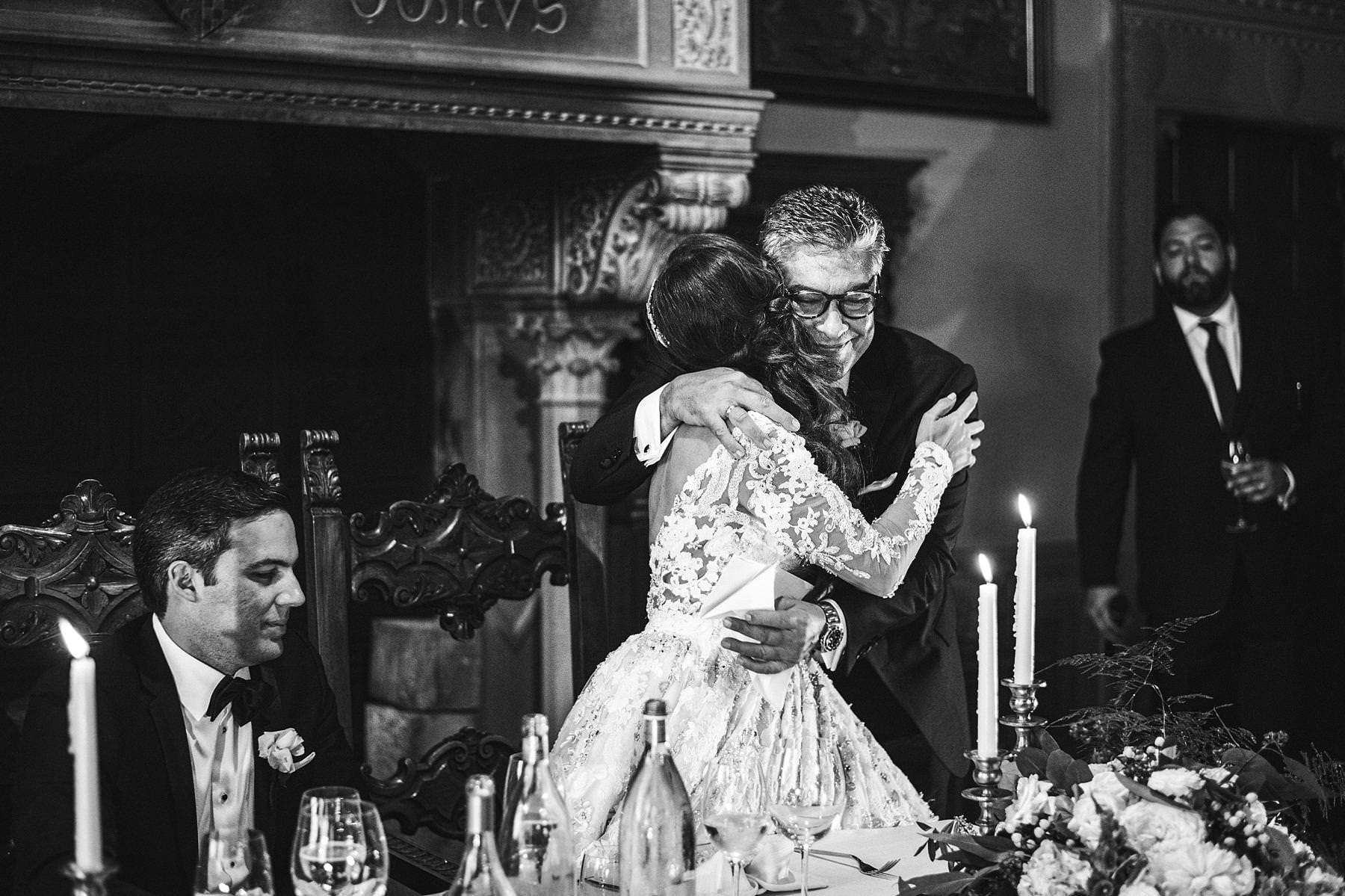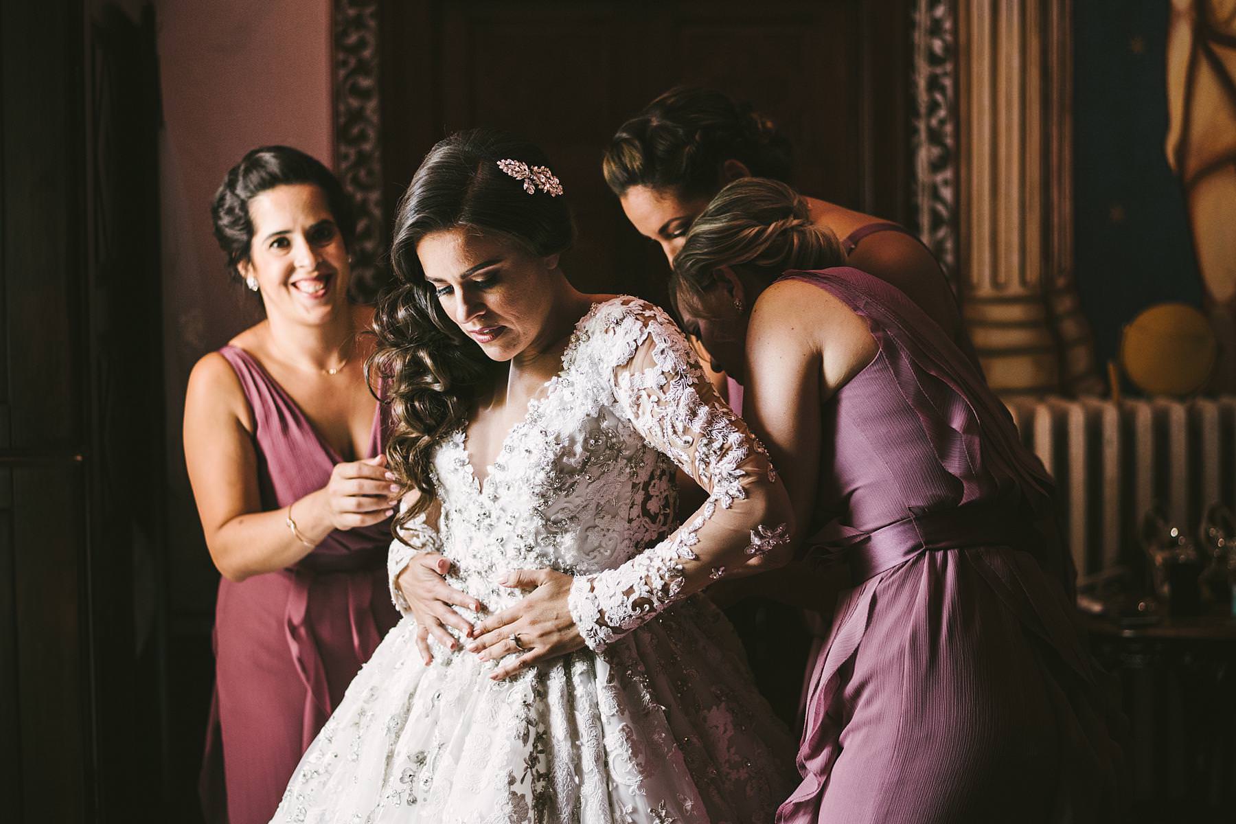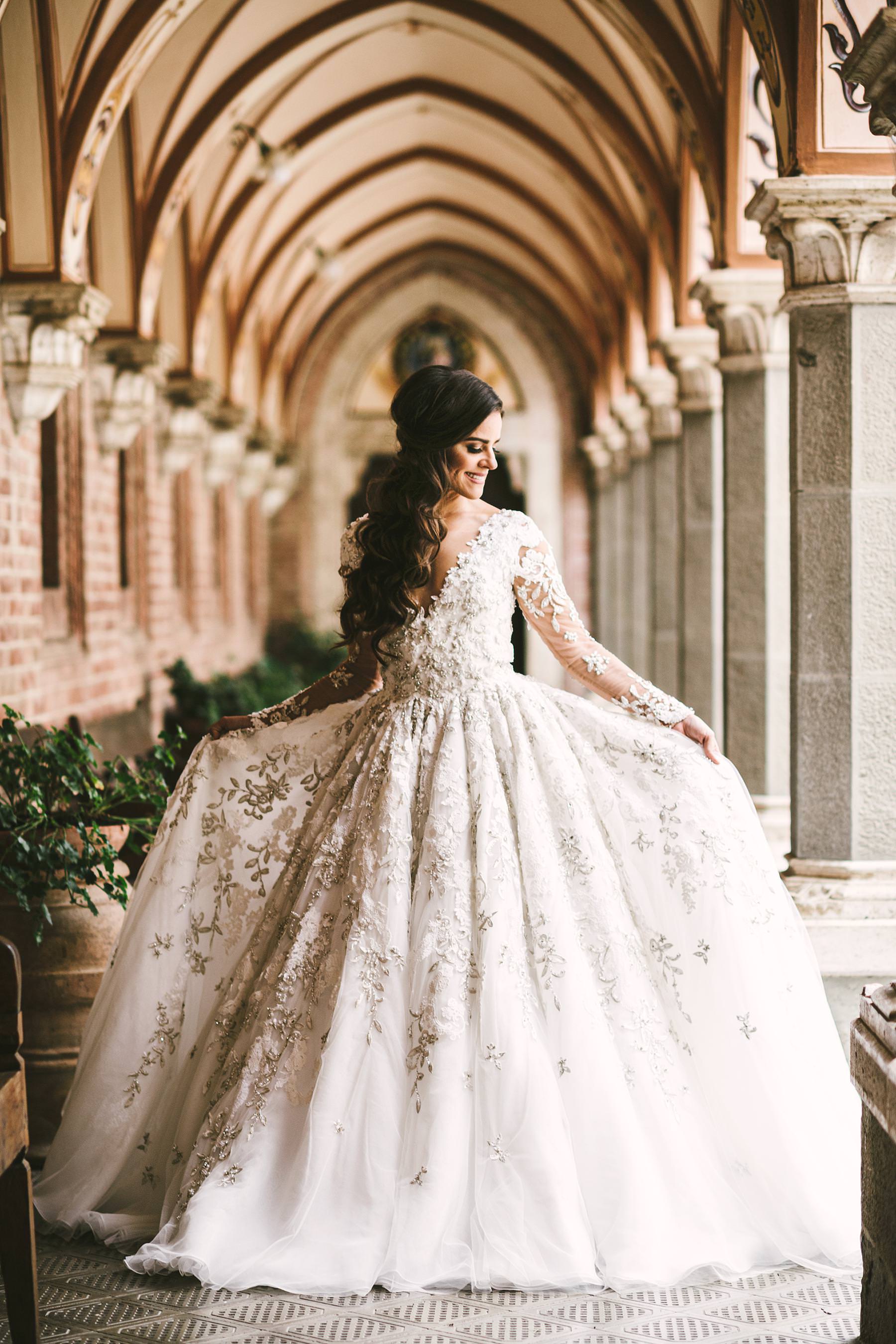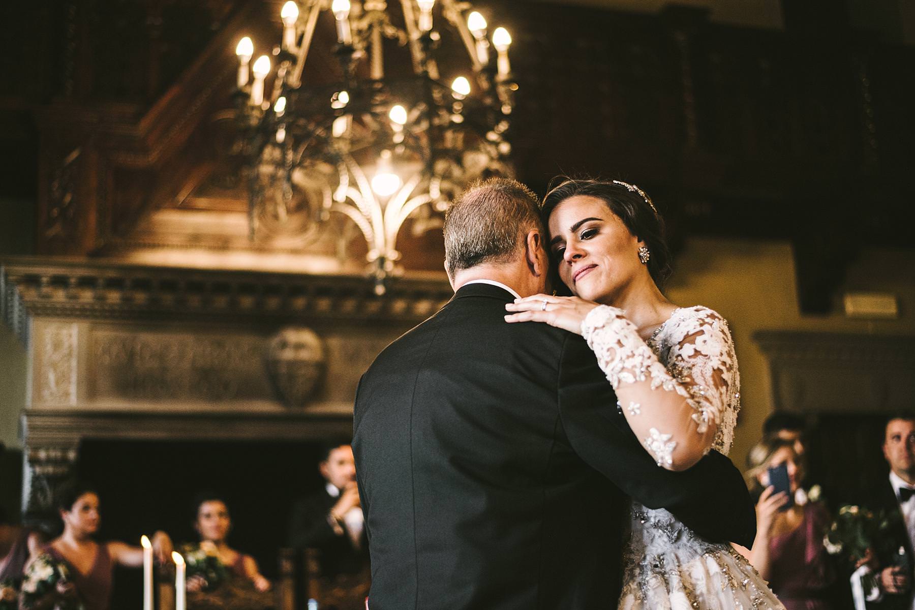 The bride and groom got ready for their big day in the rooms of the Castle, which really seems to come from a different era. Ilyssa was extremely beautiful in her richly decorated dress and her dad’s tears testified it. I couldn’t help shooting photos of her under the arches of the Castle’s hallway: she really looked like a princess.