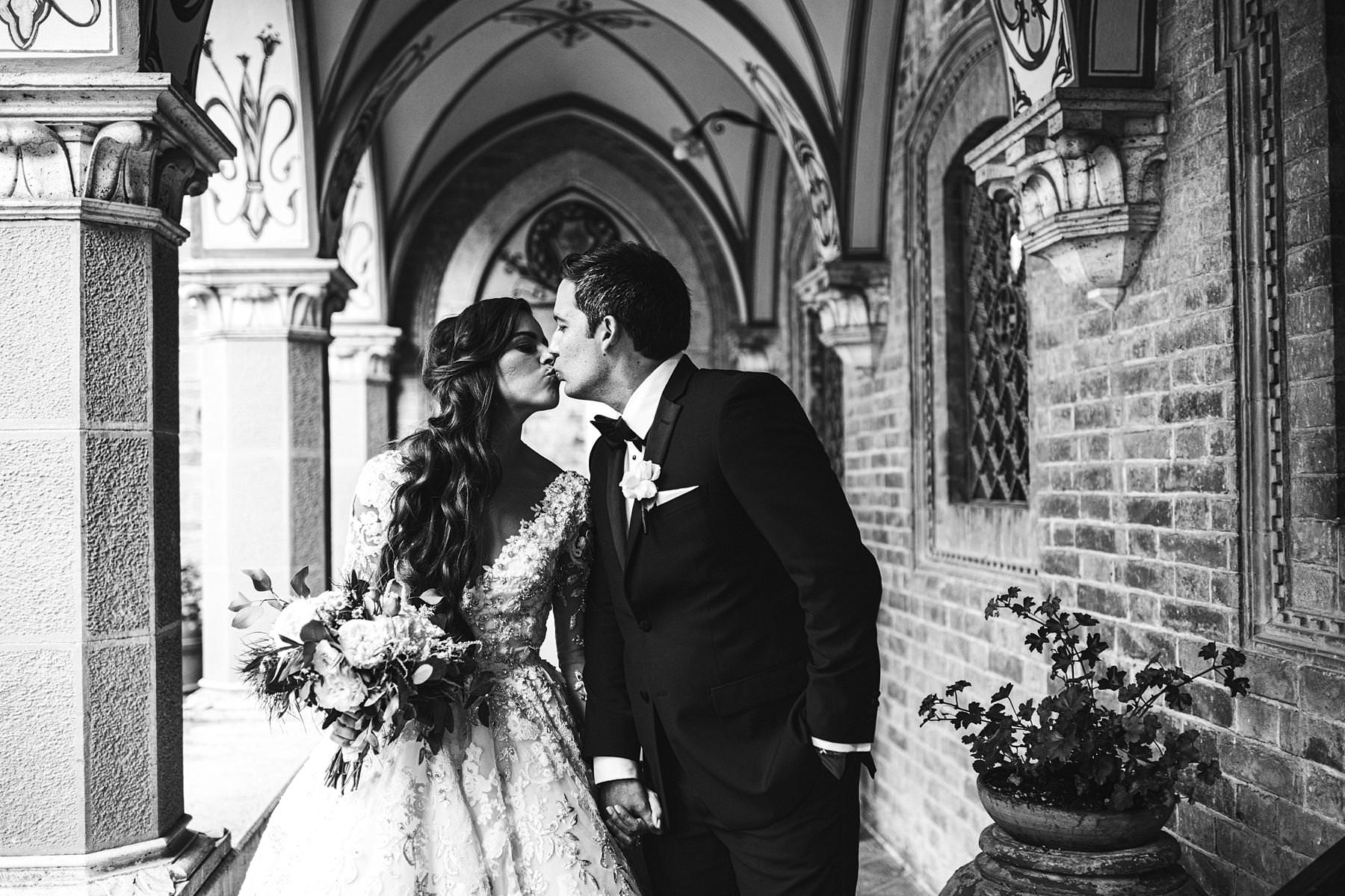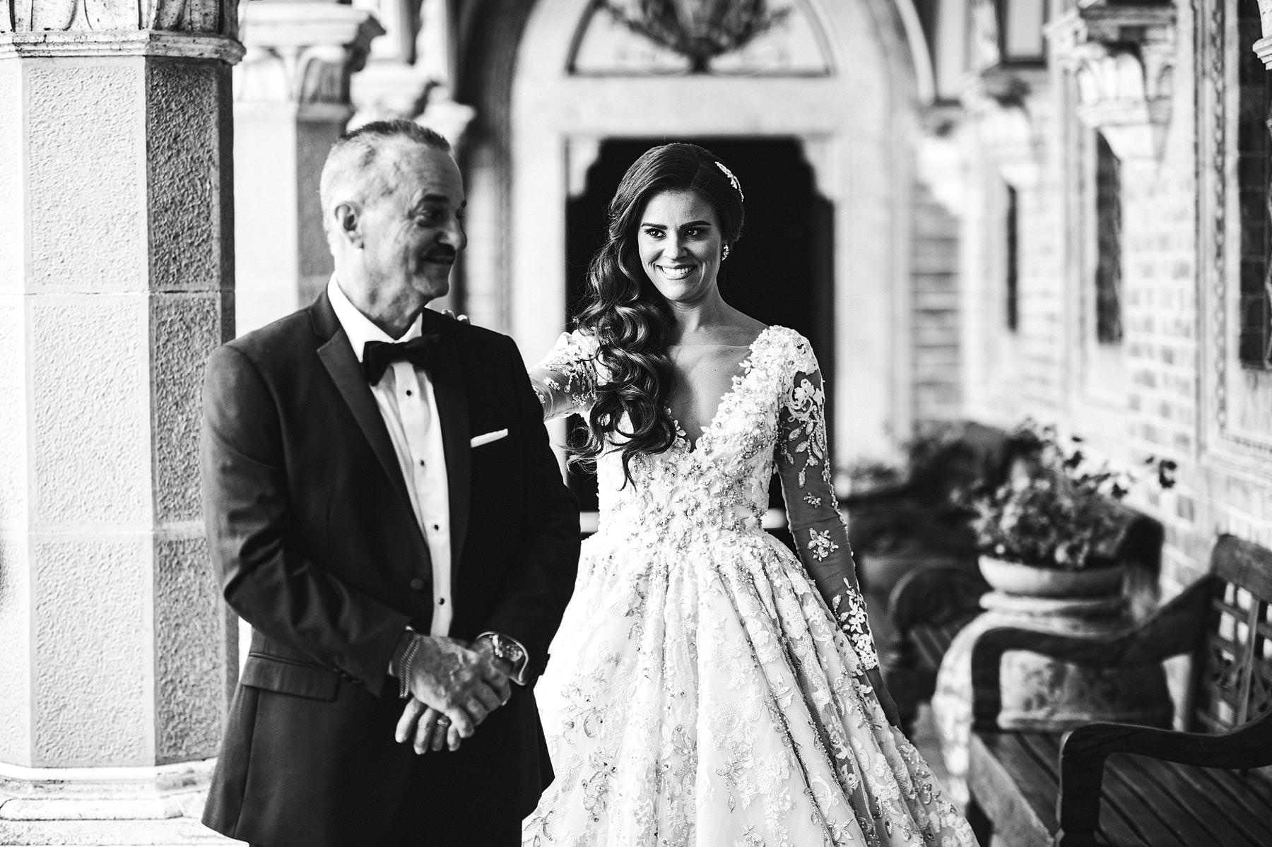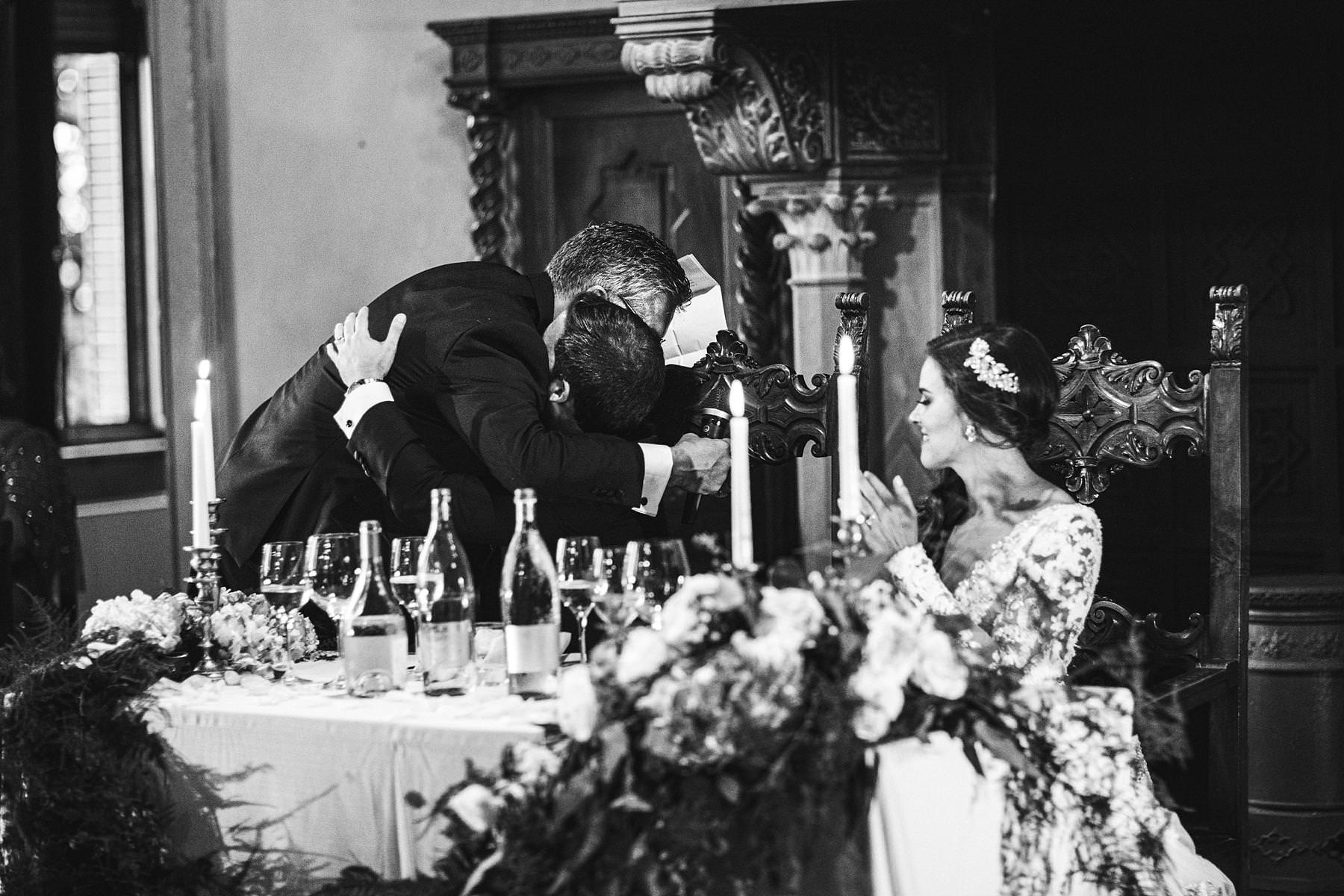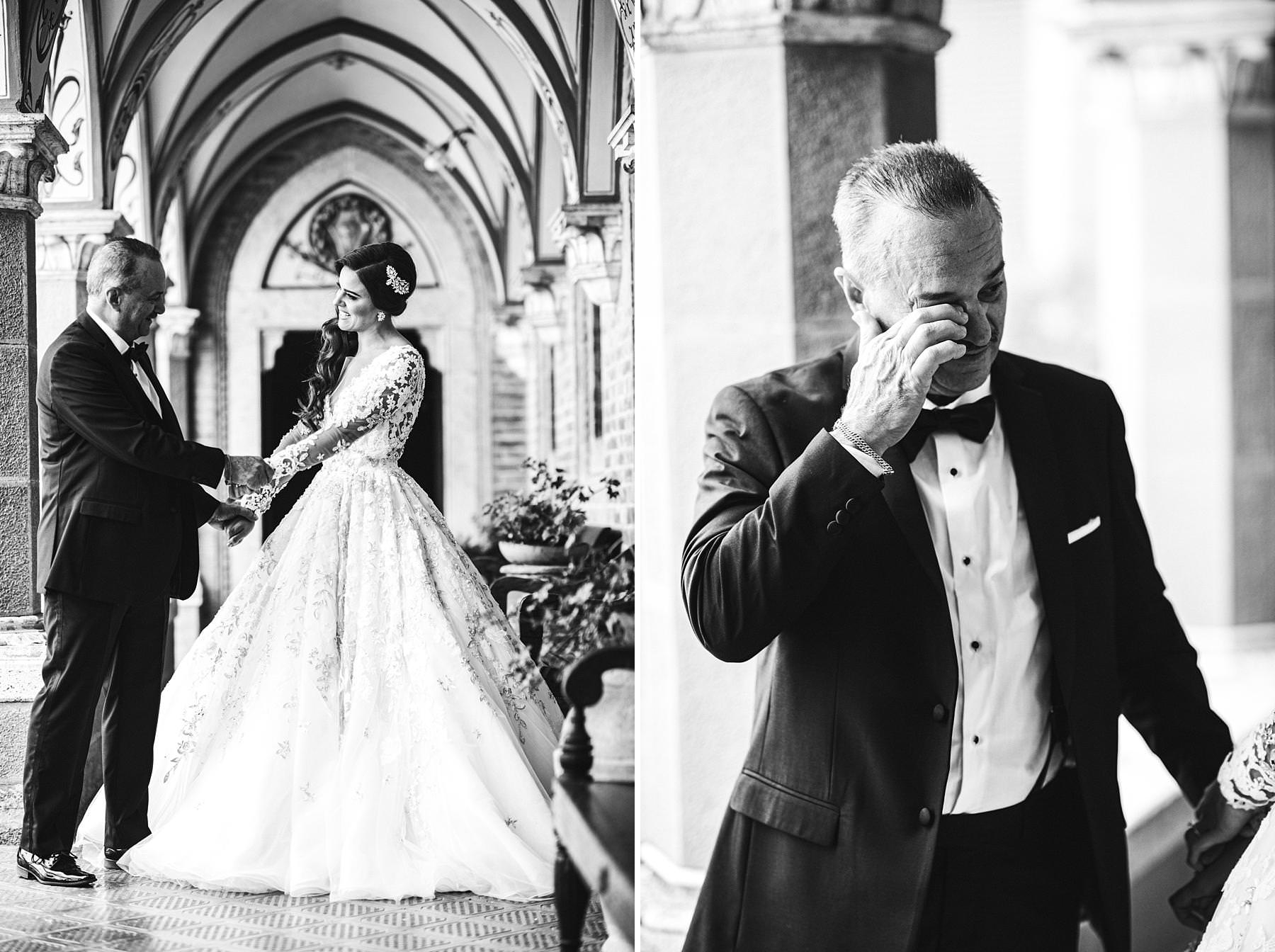 The bride and groom got ready for their big day in the rooms of the Castle, which really seems to come from a different era. Ilyssa was extremely beautiful in her richly decorated dress and her dad’s tears testified it. I couldn’t help shooting photos of her under the arches of the Castle’s hallway: she really looked like a princess.