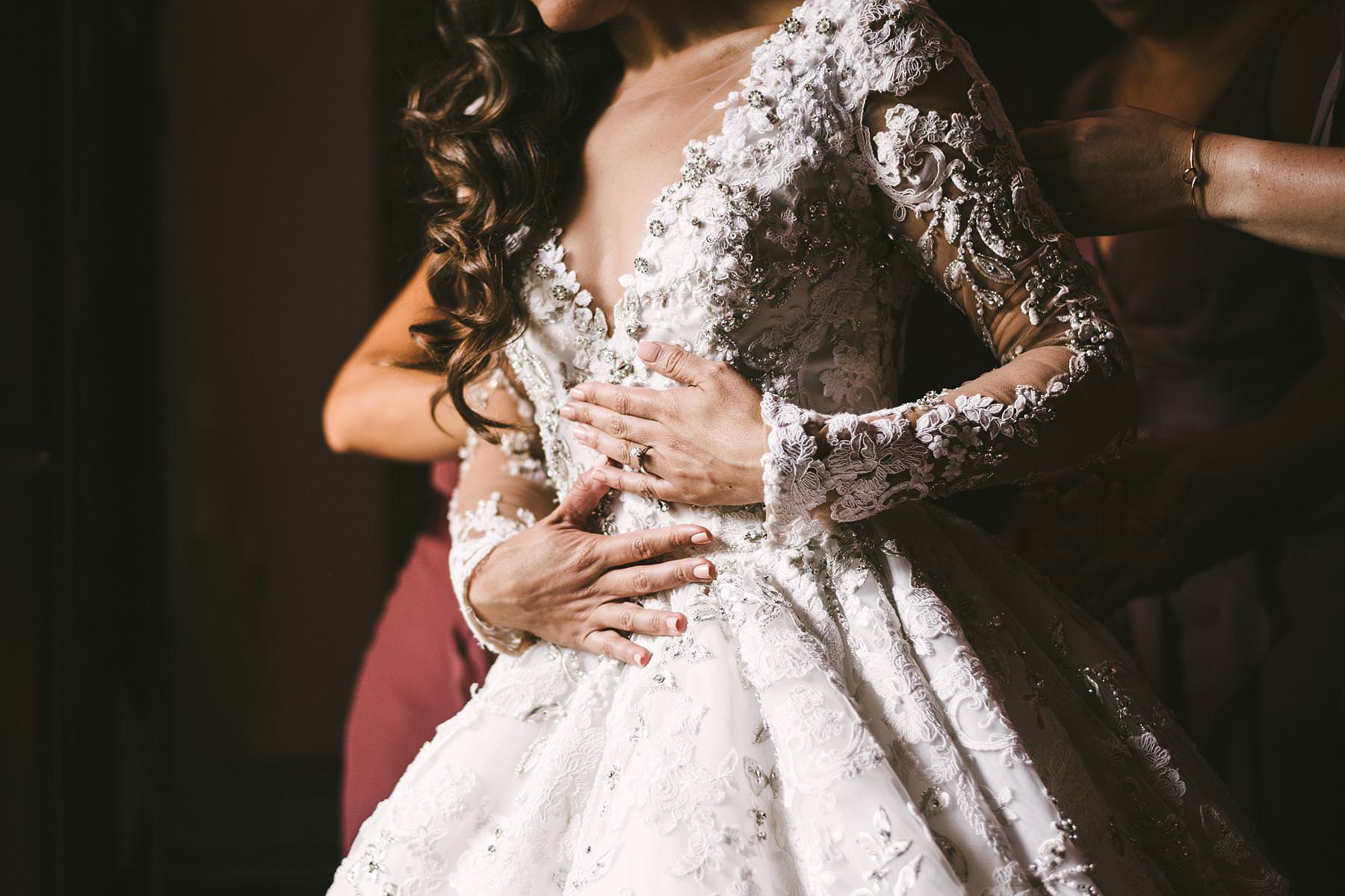Elegant bride wedding details at Valenzano Castle near Arezzo. Destination wedding in Tuscany. Photo by the Italian elegant modern wedding photographer in Tuscany based Florence Gabriele Fani