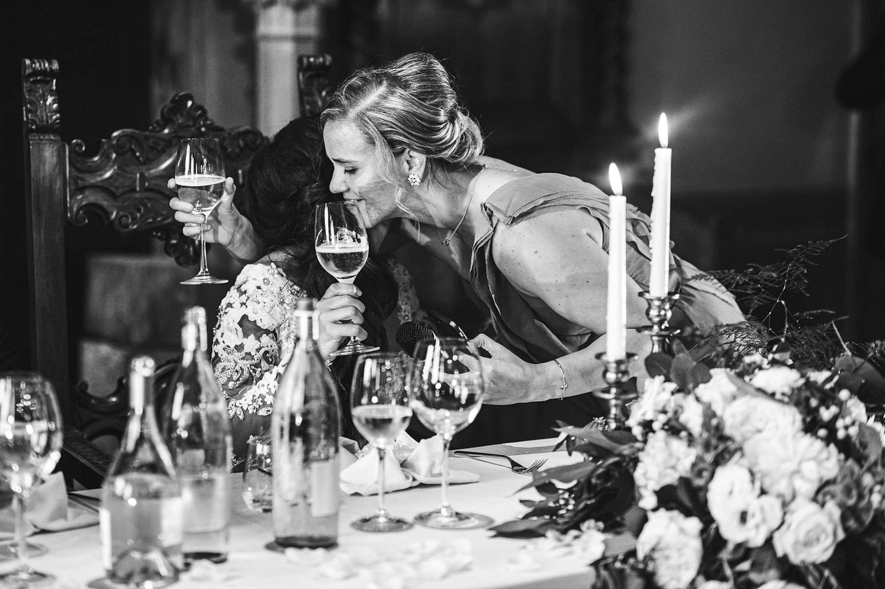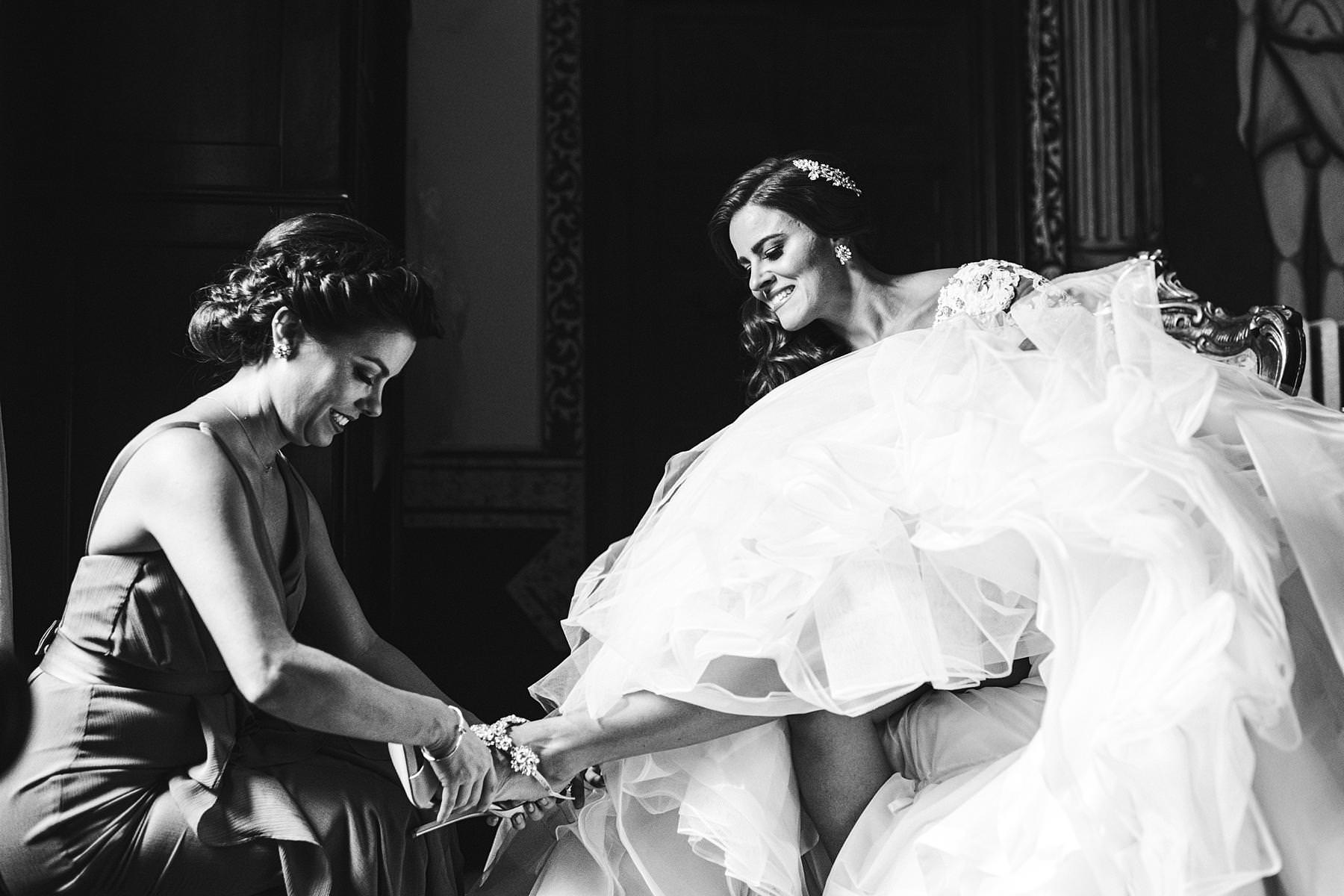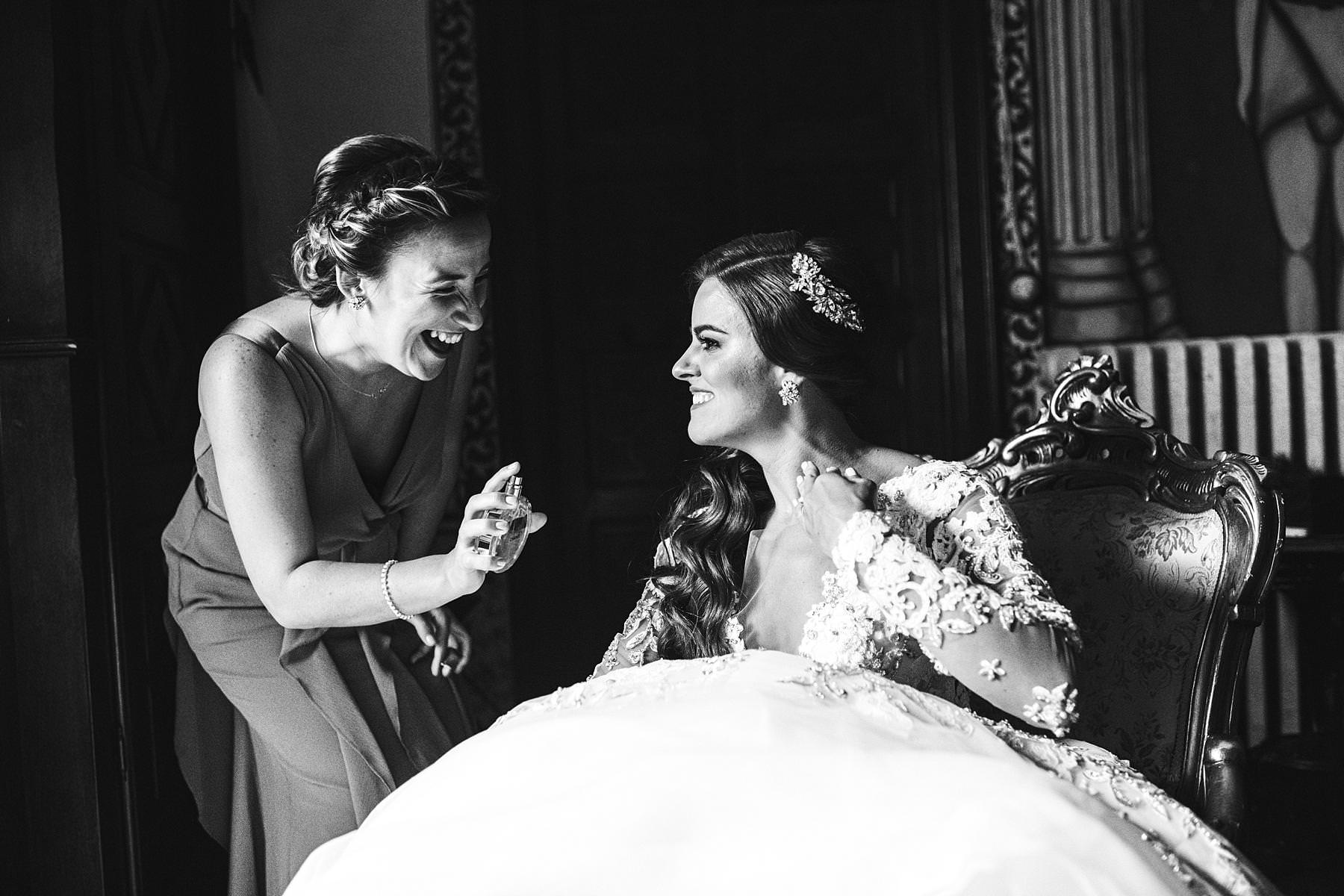 Lovely candid moment with bride Ilyssa and bridesmaid during getting ready at Valenzano Castle near Arezzo. Destination wedding in Tuscany. Photo by the Italian elegant modern wedding photographer in Tuscany based Florence Gabriele Fani