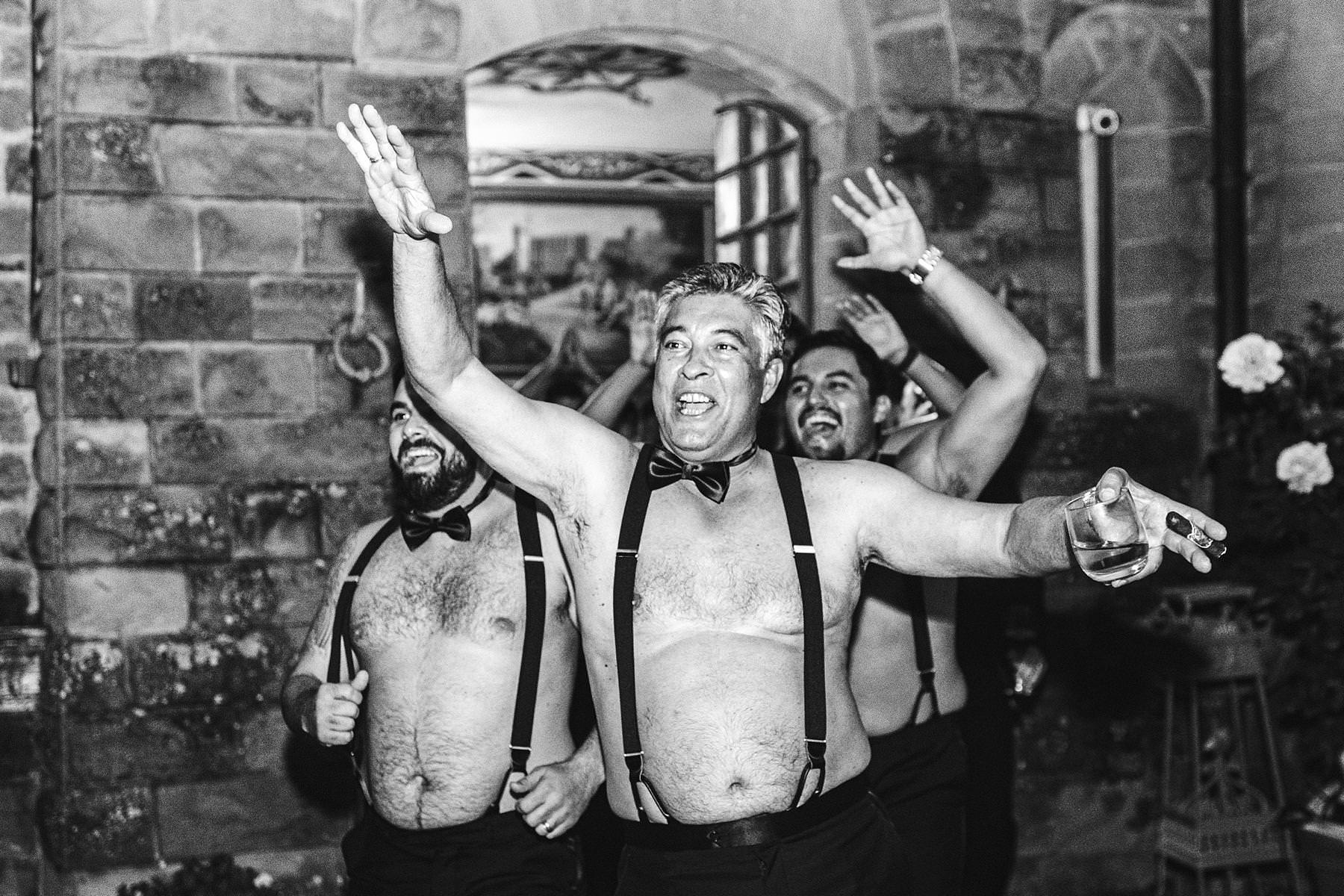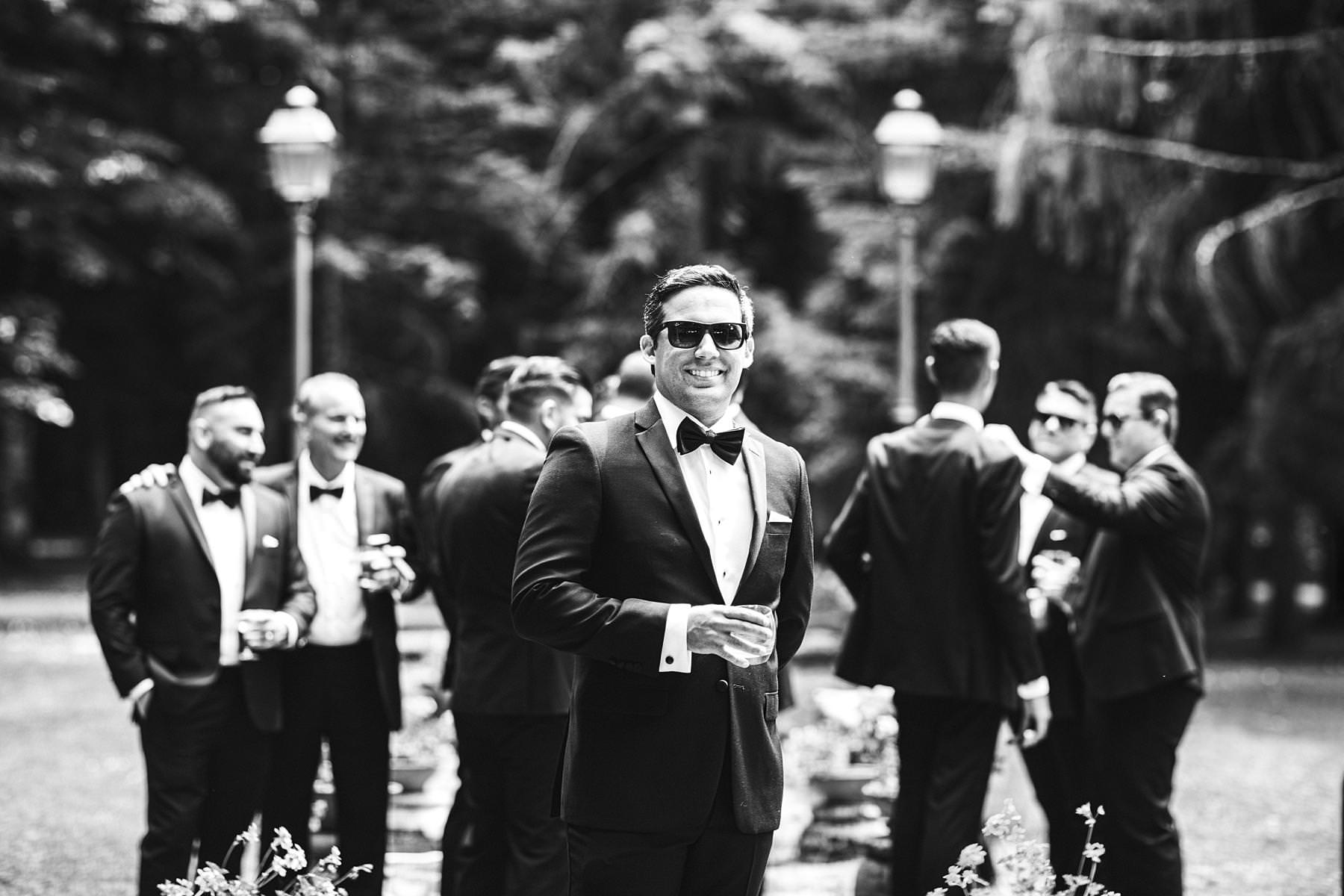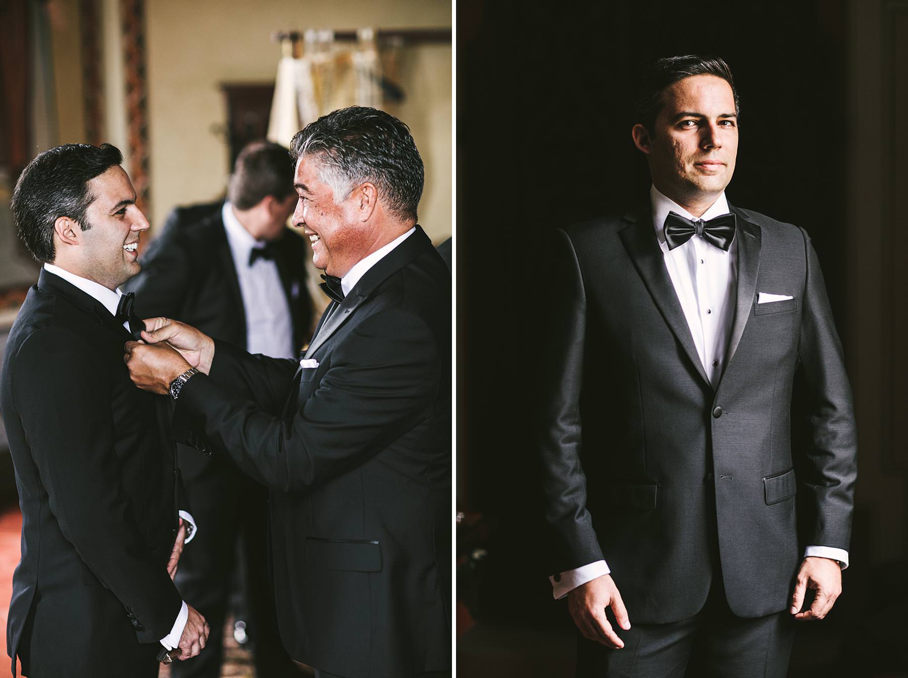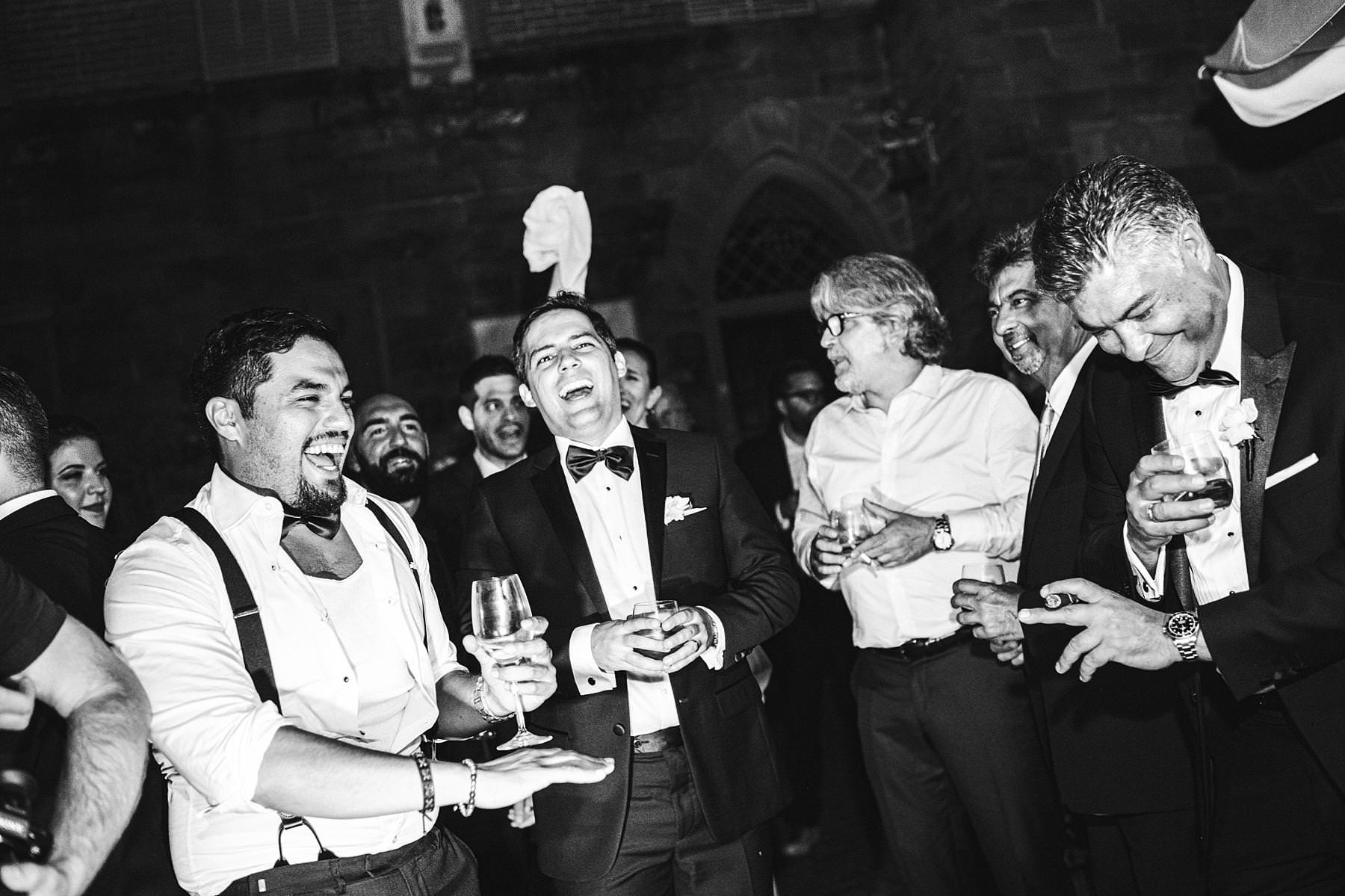 Groom getting ready at Valenzano Castle with groomsmen. Elegant destination wedding in Tuscany. Photo by the Italian elegant modern wedding photographer in Tuscany based Florence Gabriele Fani