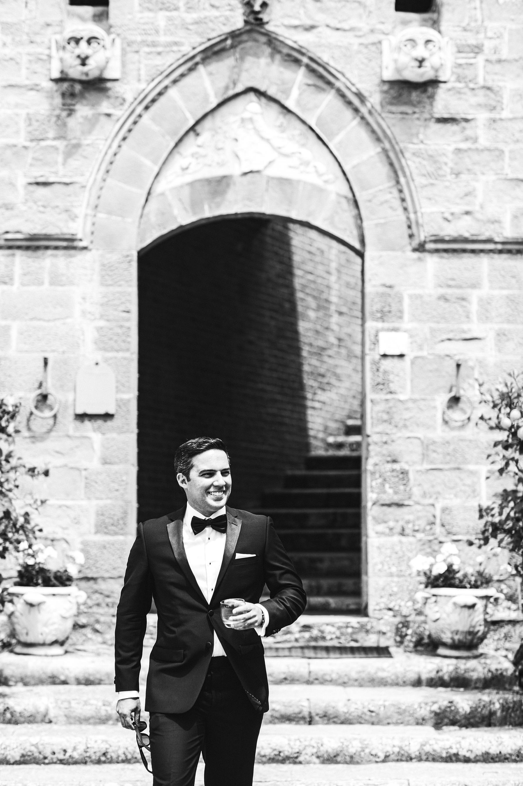 Rippling and sumptuous Tuscany wedding in the elegant Castle of Valenzano. Elegant groom Alex just ready to the wedding ceremony. Photo by the Italian elegant modern wedding photographer in Tuscany based Florence Gabriele Fani