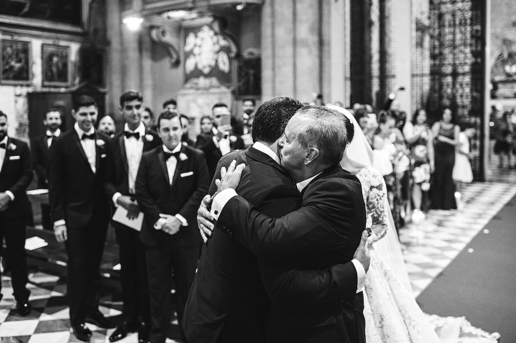 Emotional moment during wedding ceremony in the Arezzo Cathedral. Photo by the Italian elegant modern wedding photographer in Tuscany based Florence Gabriele Fani