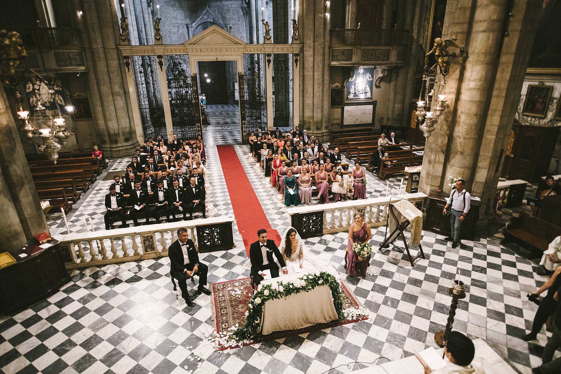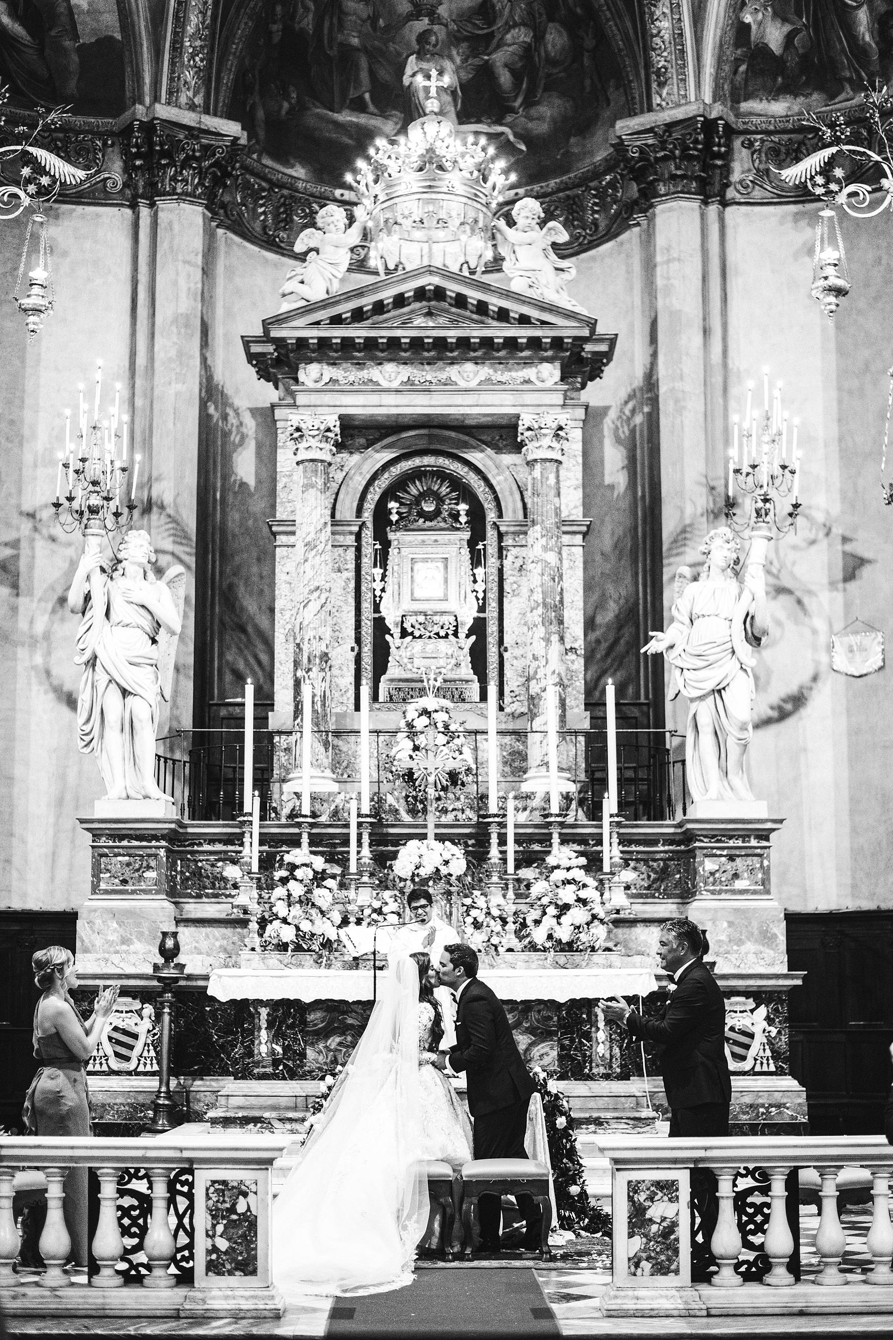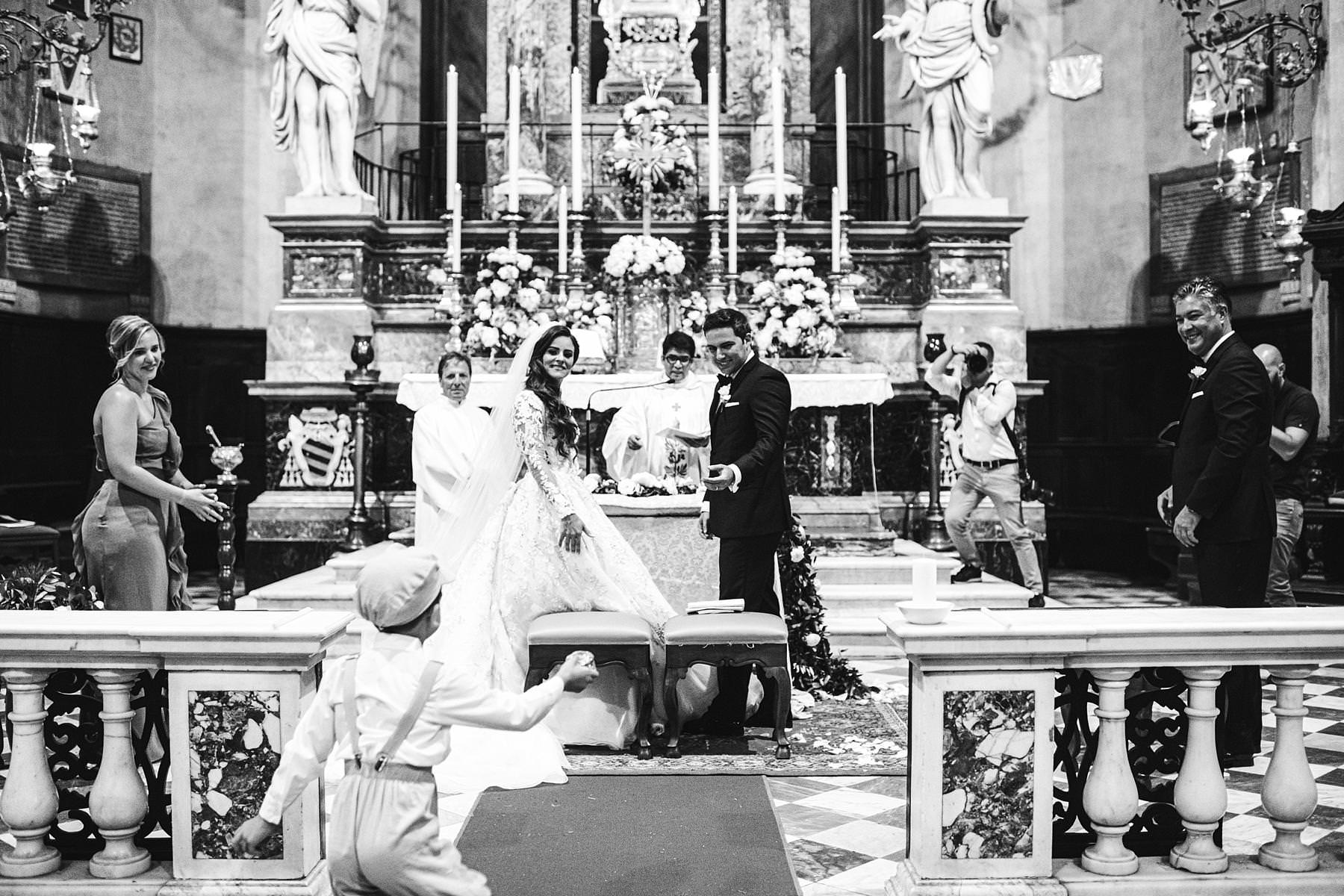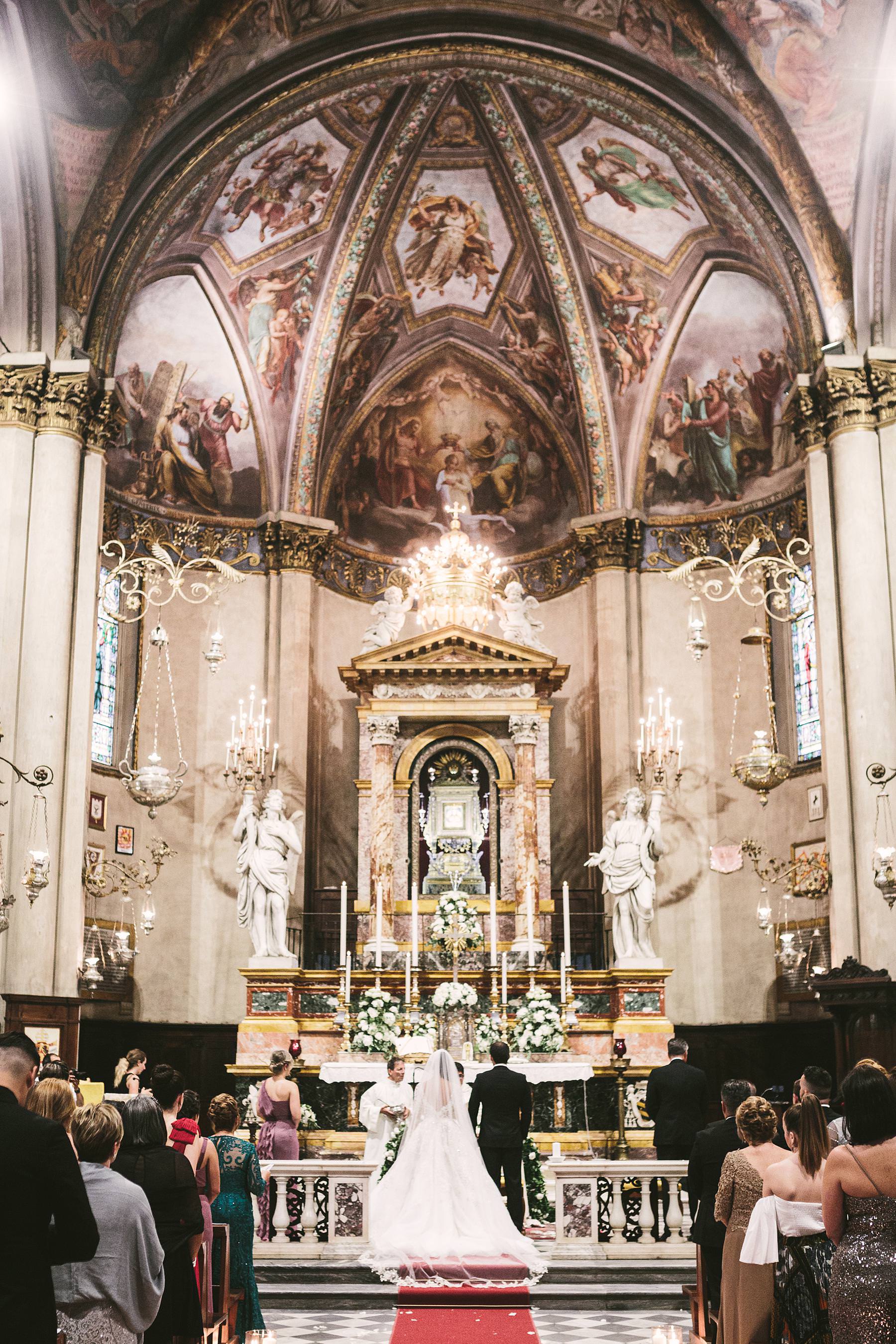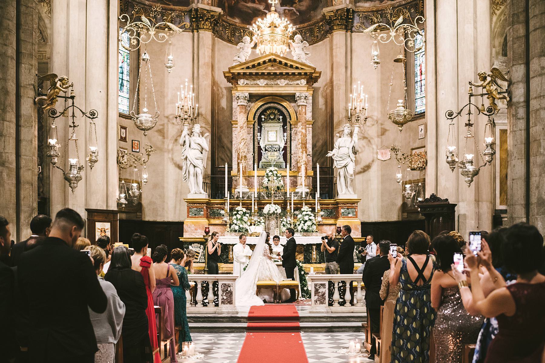 Beautiful destination wedding catholic ceremony in Tuscany in Arezzo Cathedral. Photo by the Italian elegant modern wedding photographer in Tuscany based Florence Gabriele Fani