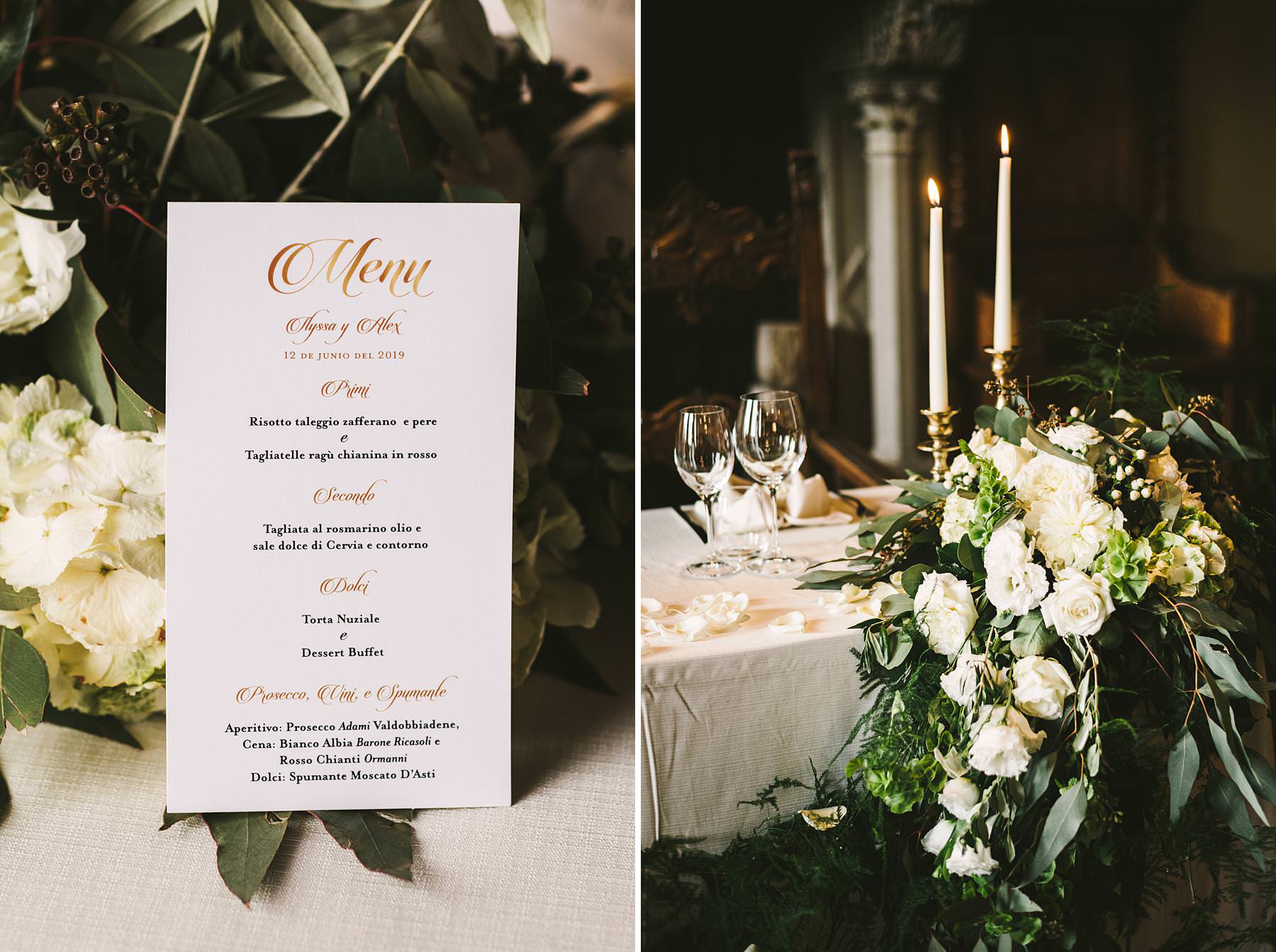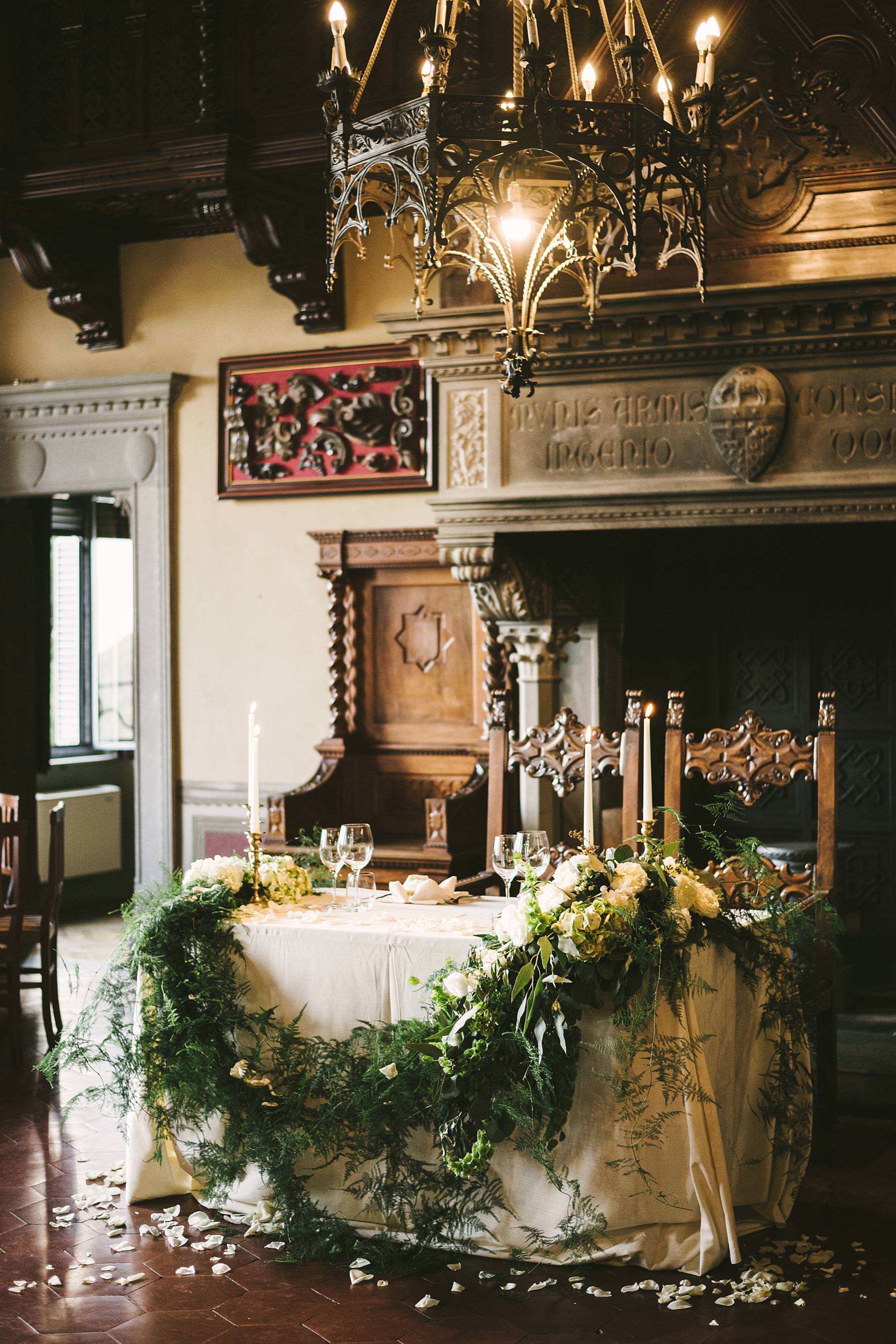 Elegant and beautiful flower decor at Valenzano Castle for a destination wedding in Tuscany near Arezzo. Photo by the Italian elegant modern wedding photographer in Tuscany based Florence Gabriele Fani