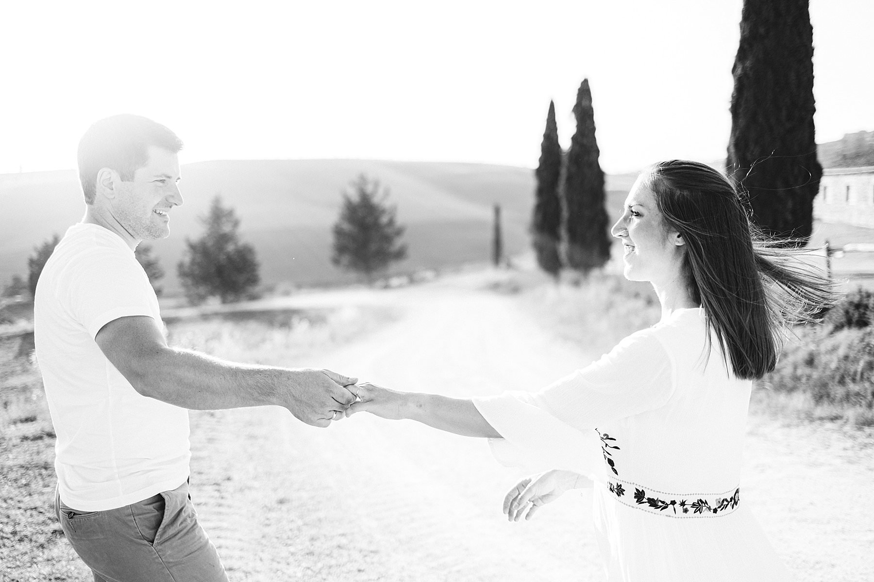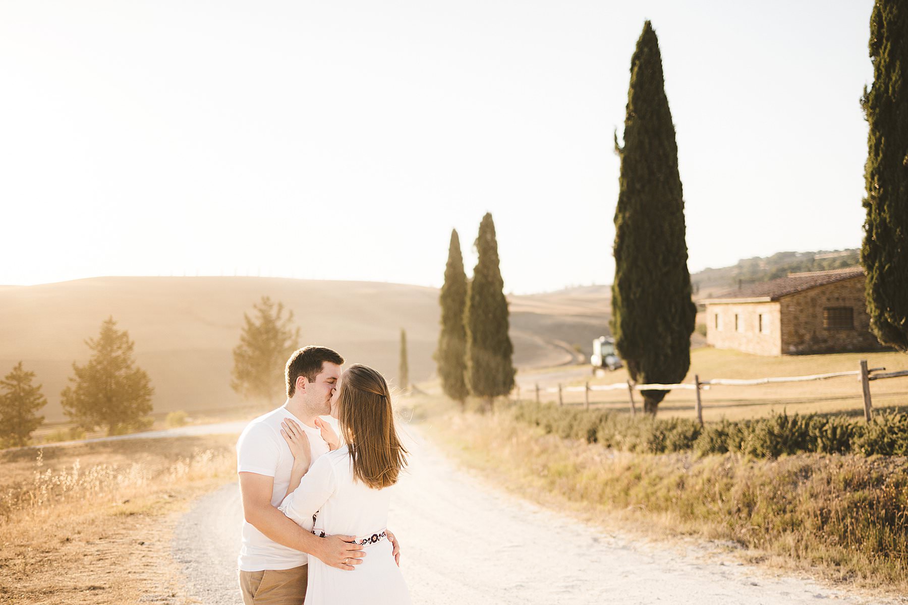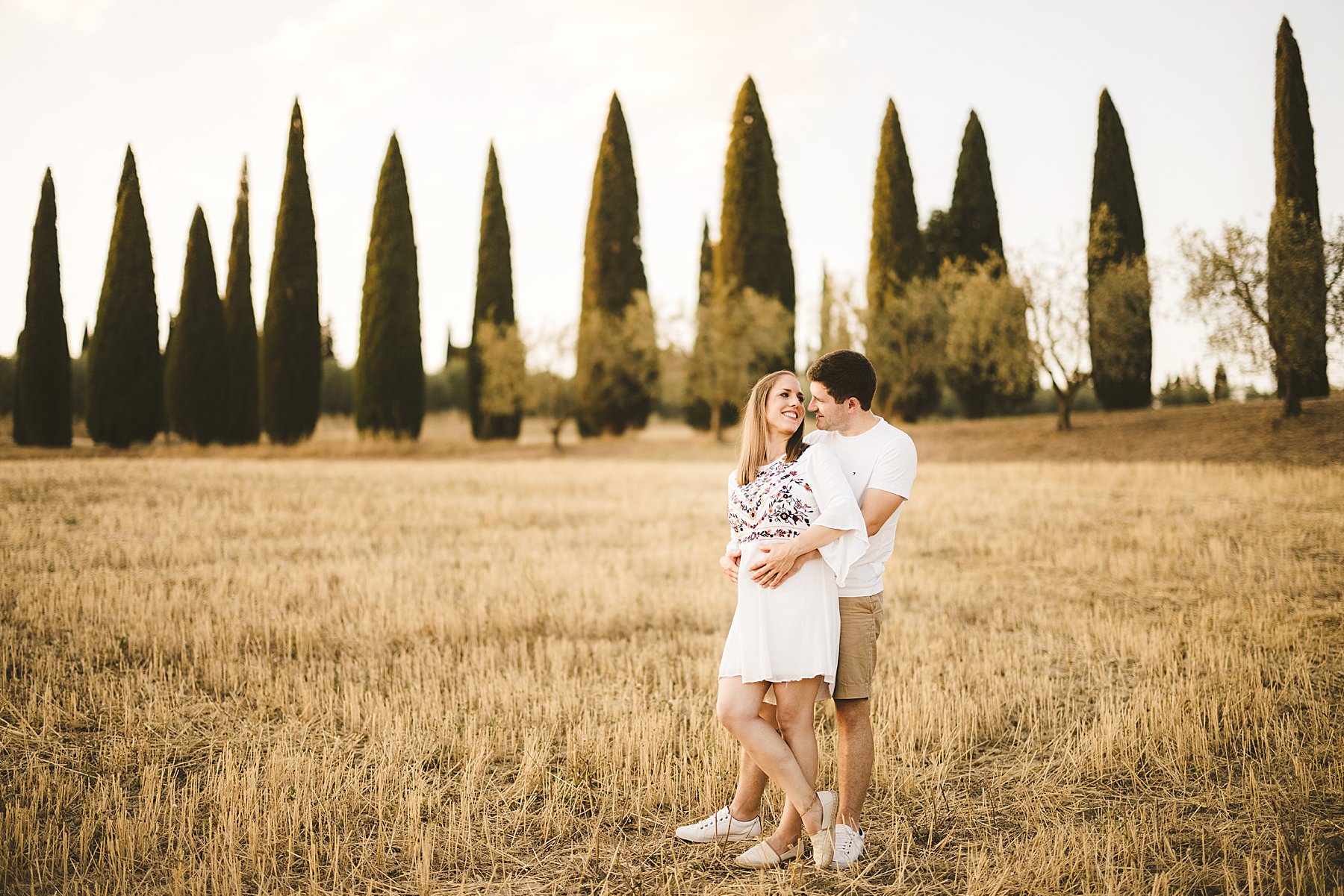 After that, it was time for the Tuscan countryside. We wandered around, following avenues of cypresses, white paths in between fields, and playing with the lines of the hills. That’s when the light became absolutely perfect, allowing us to shoot some truly memorable photos that they will cherish forever – and show to their baby one day.