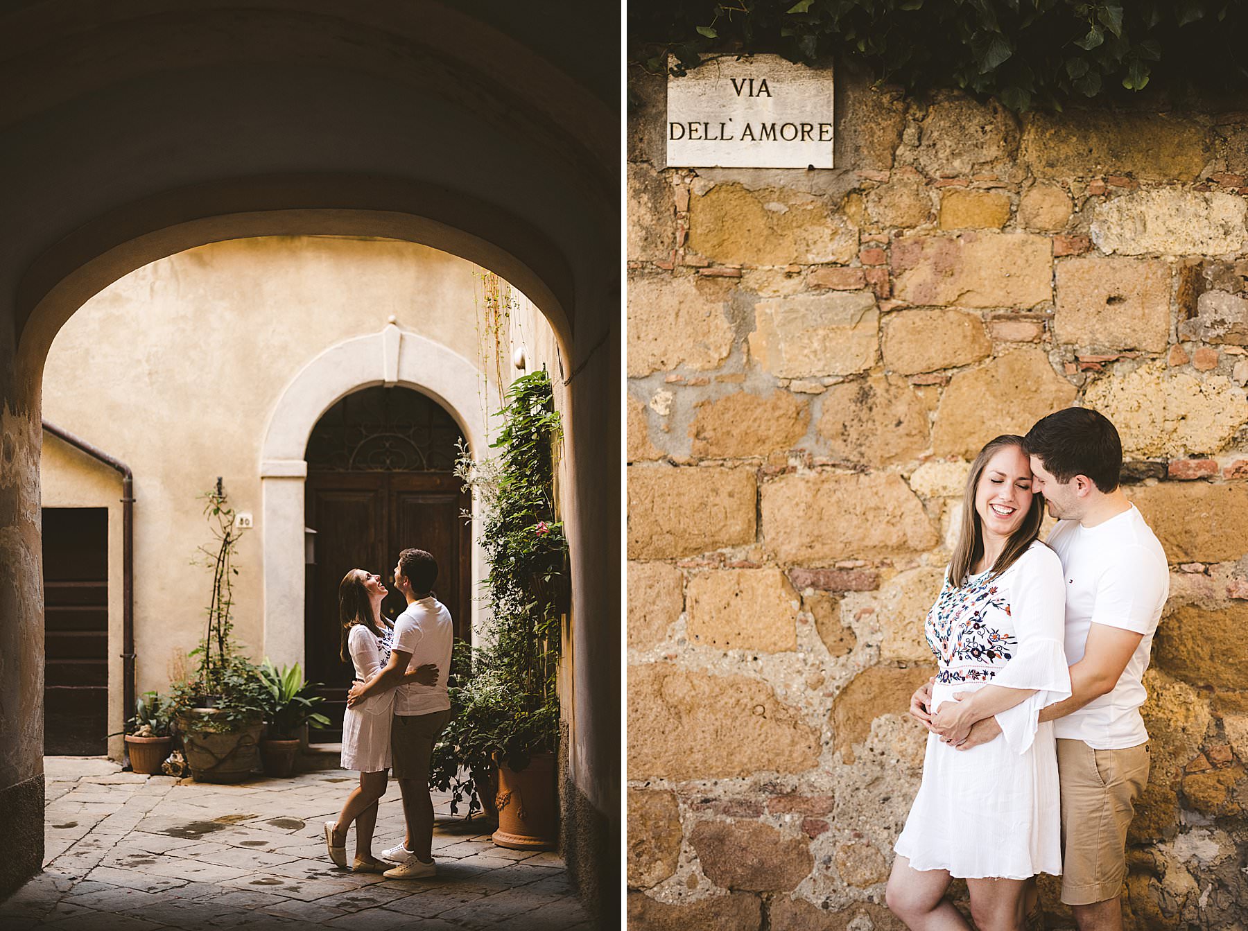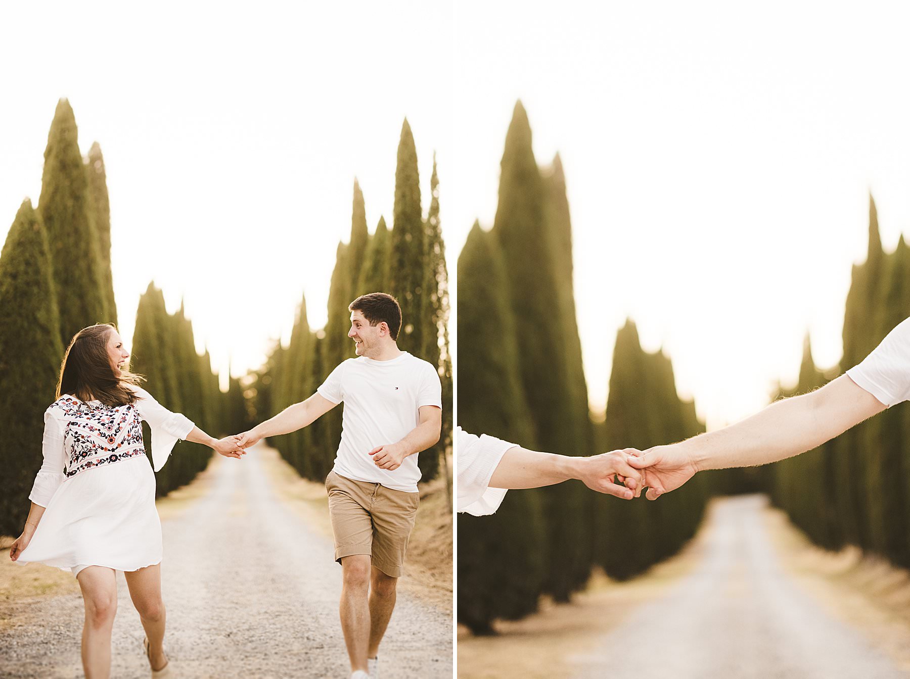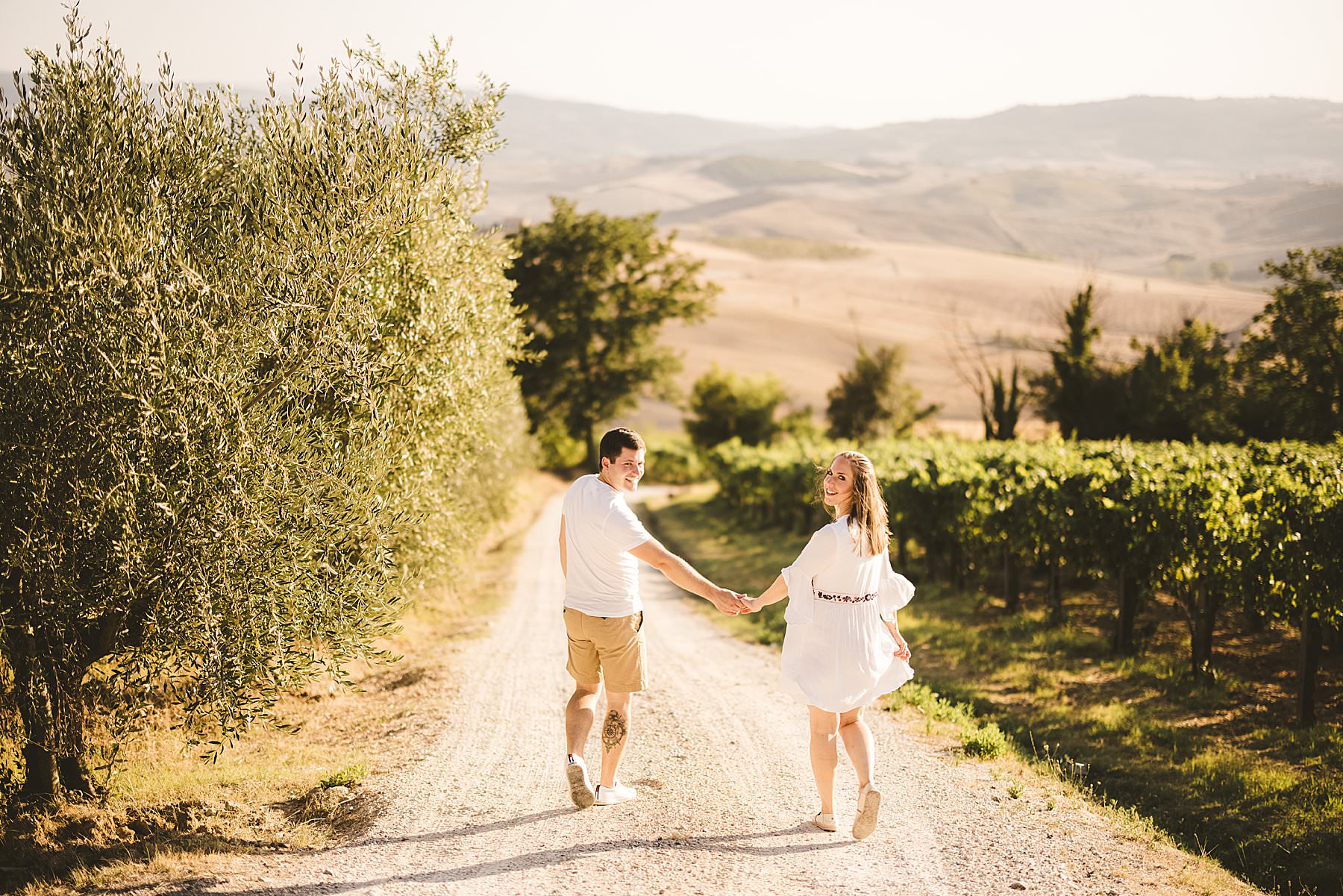 After that, it was time for the Tuscan countryside. We wandered around, following avenues of cypresses, white paths in between fields, and playing with the lines of the hills. That’s when the light became absolutely perfect, allowing us to shoot some truly memorable photos that they will cherish forever – and show to their baby one day.