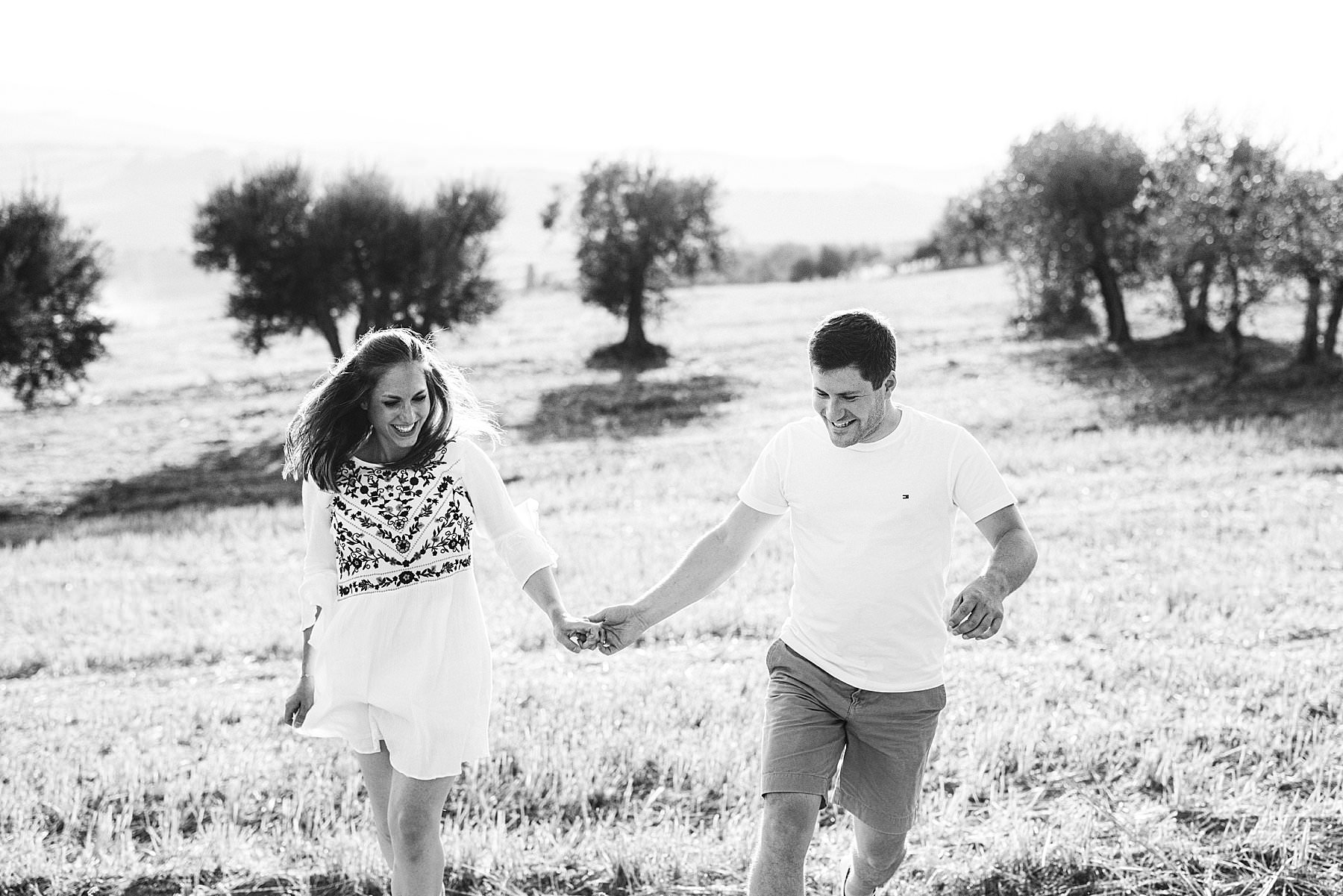 Exciting and funny couple photo session in the scenic countryside of Tuscany near Pienza. Beautiful walk tour in the olive groves of the Val D’Orcia. Photo by the Italian creative, elegant and modern engagement photographer in Tuscany Gabriele Fani.
