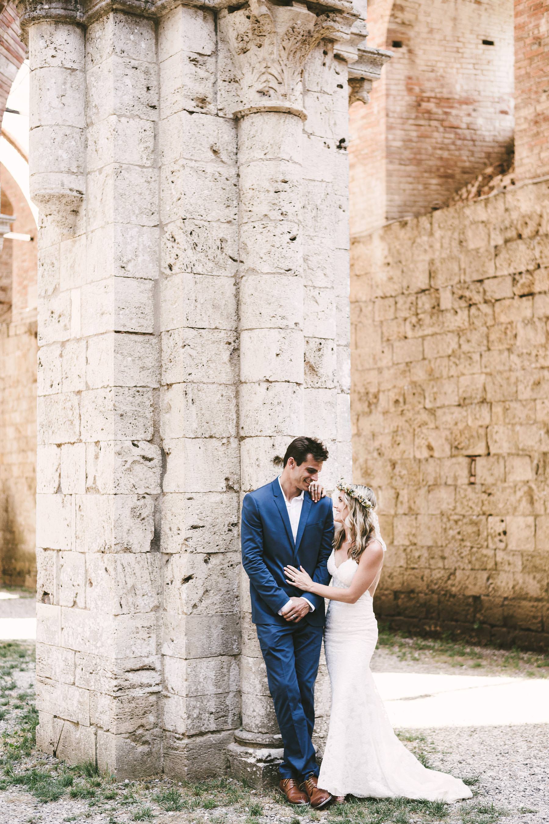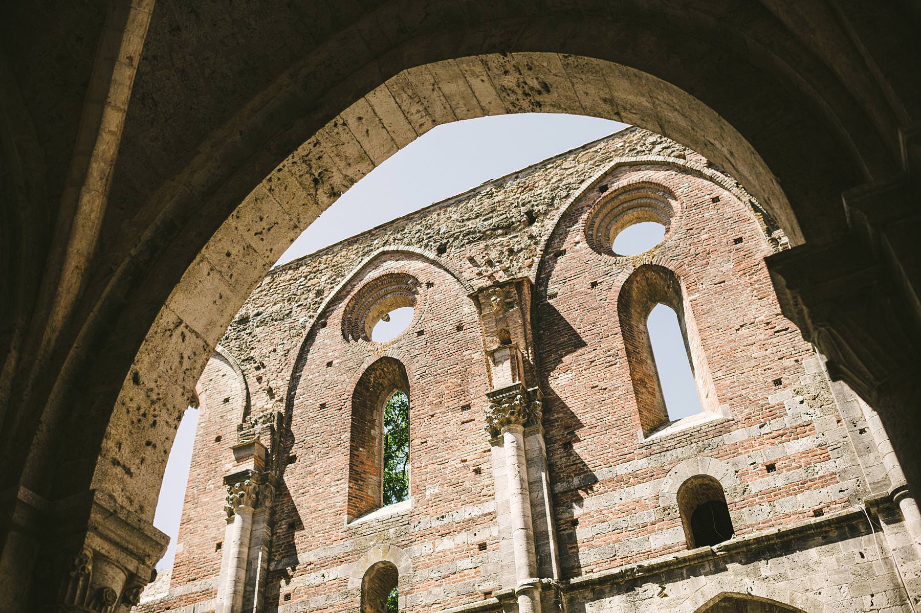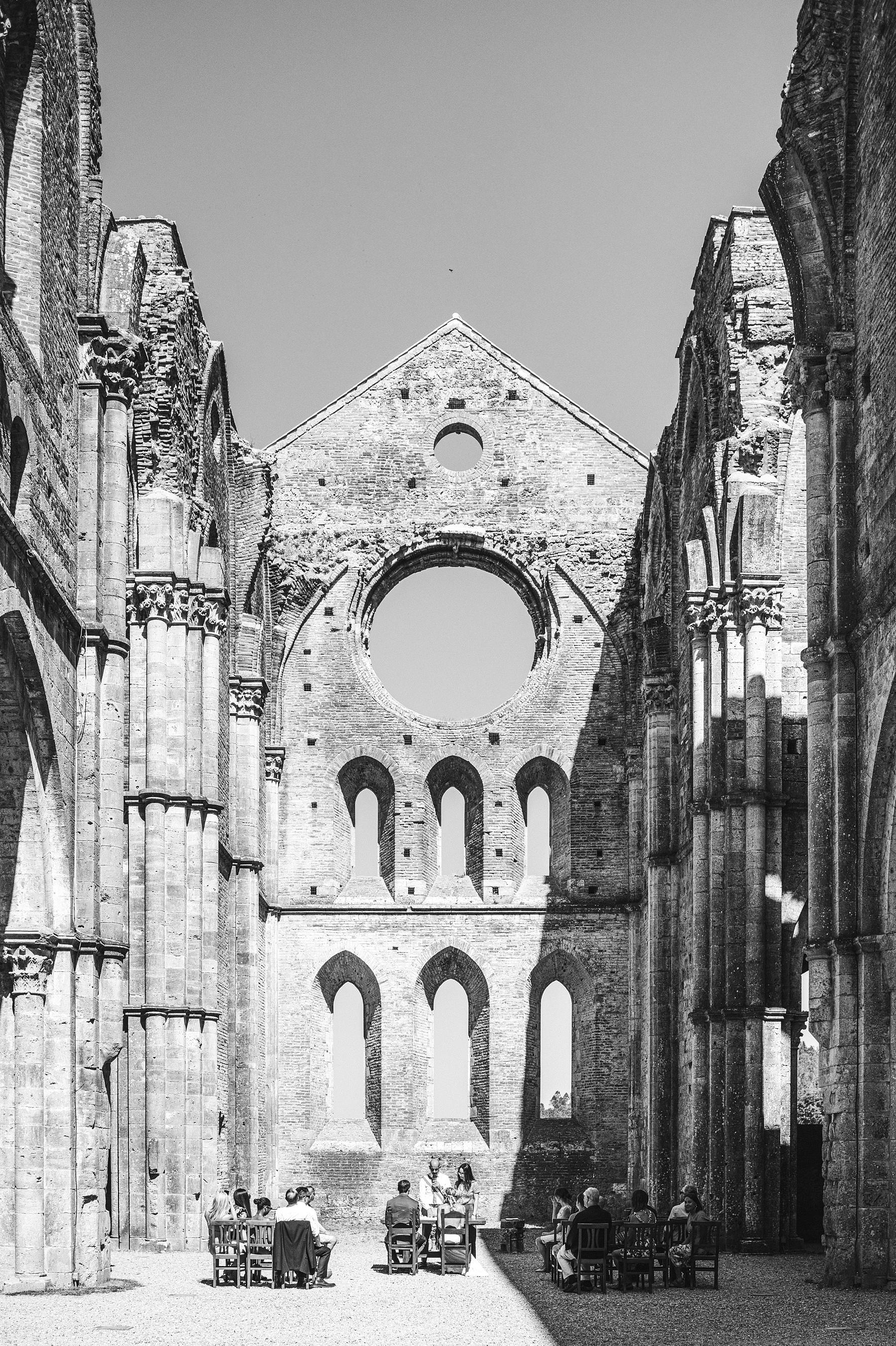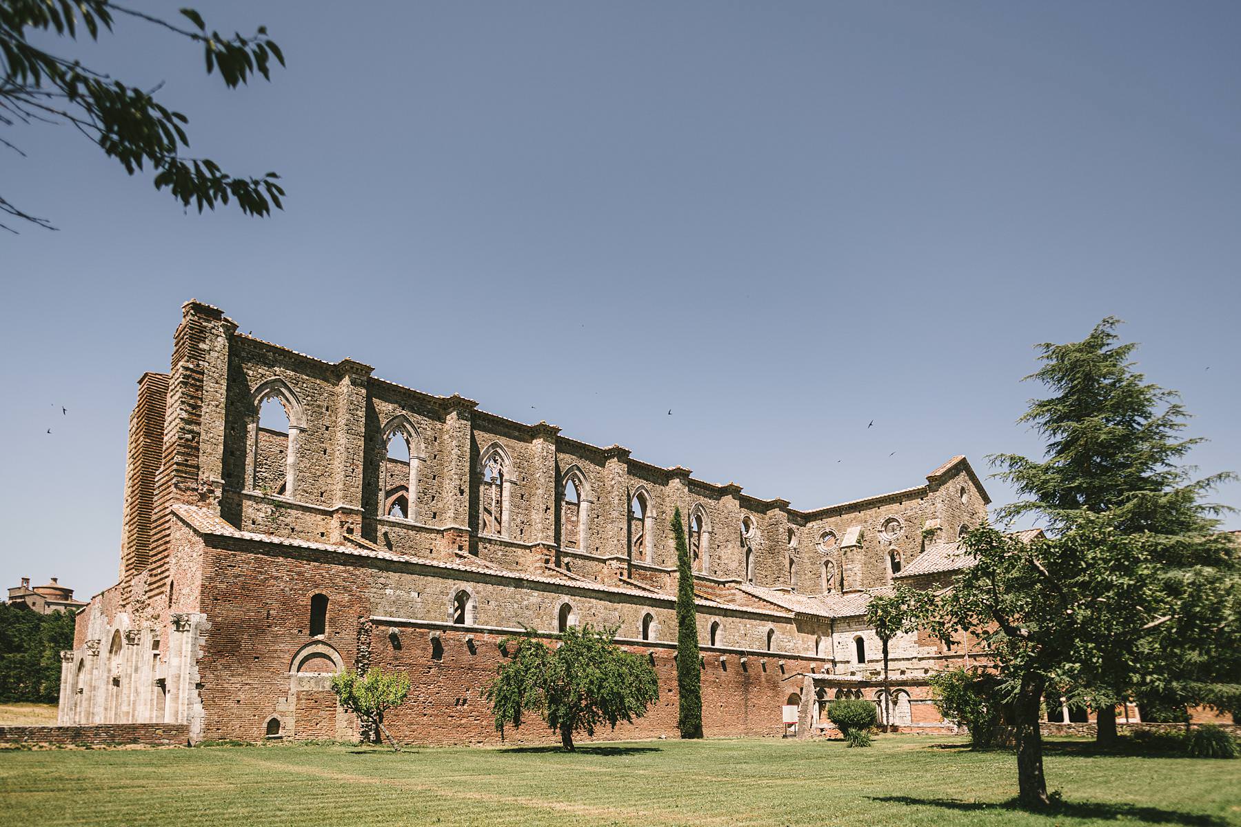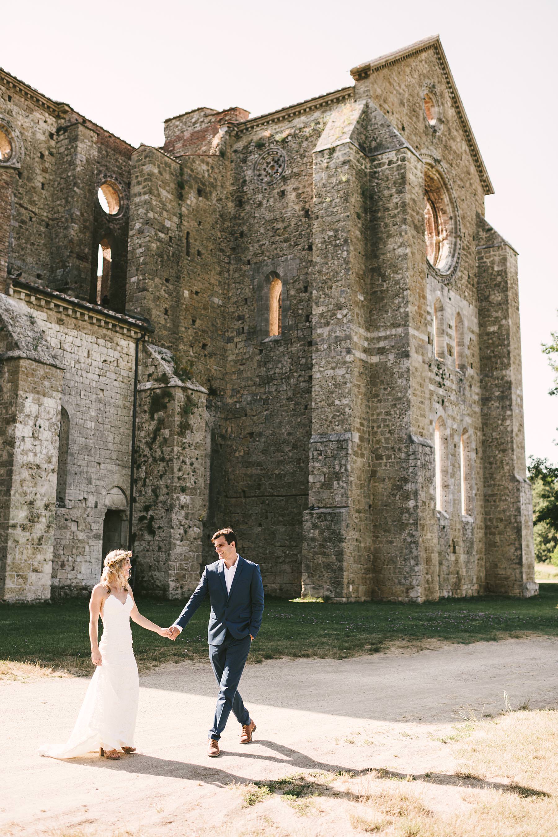 Well, that and the location where they would promise to love one another for eternity. They chose San Galgano, a roofless abbey tucked among the rolling hills of Siena that would leave anyone breathless.