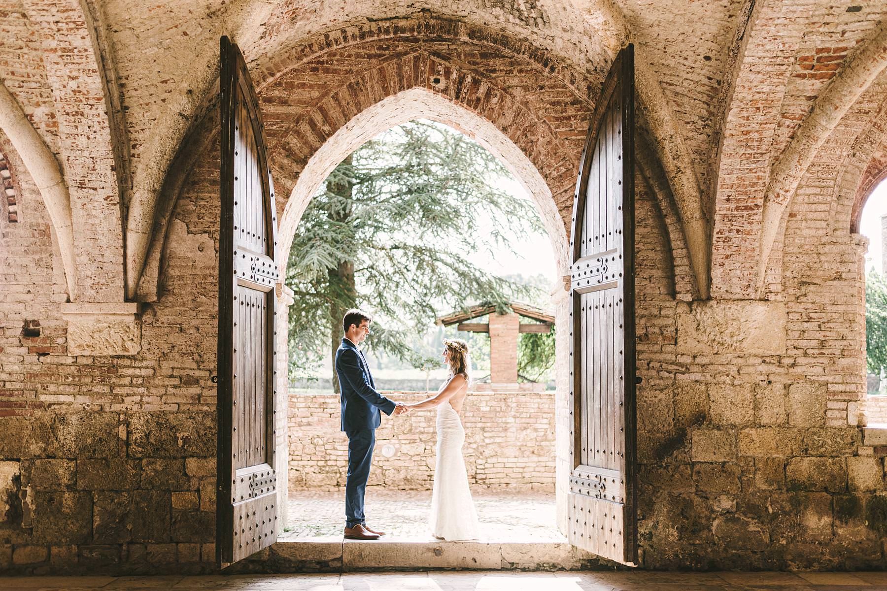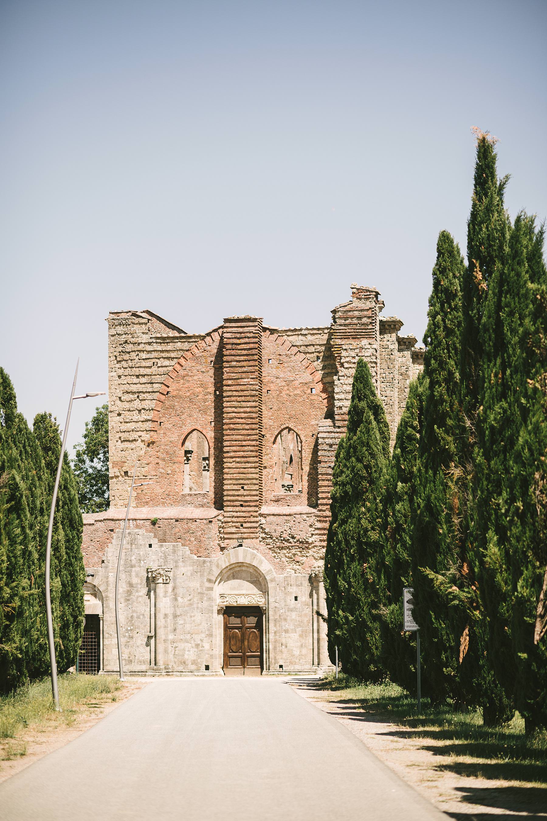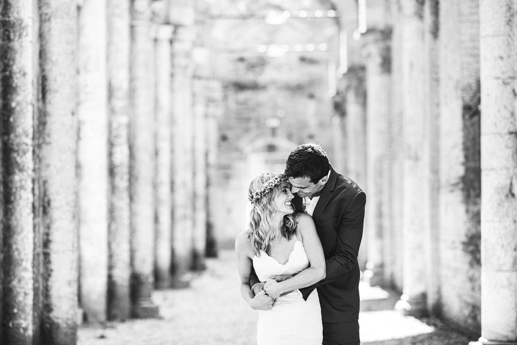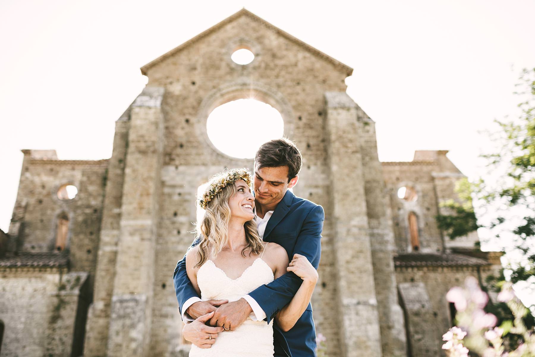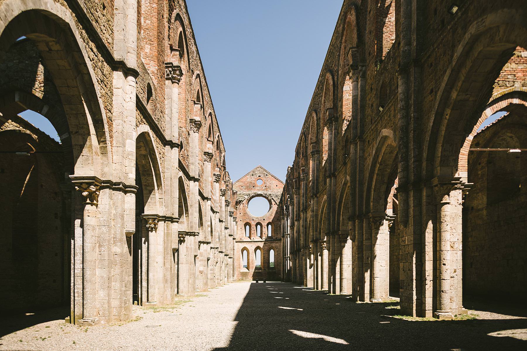 Well, that and the location where they would promise to love one another for eternity. They chose San Galgano, a roofless abbey tucked among the rolling hills of Siena that would leave anyone breathless.