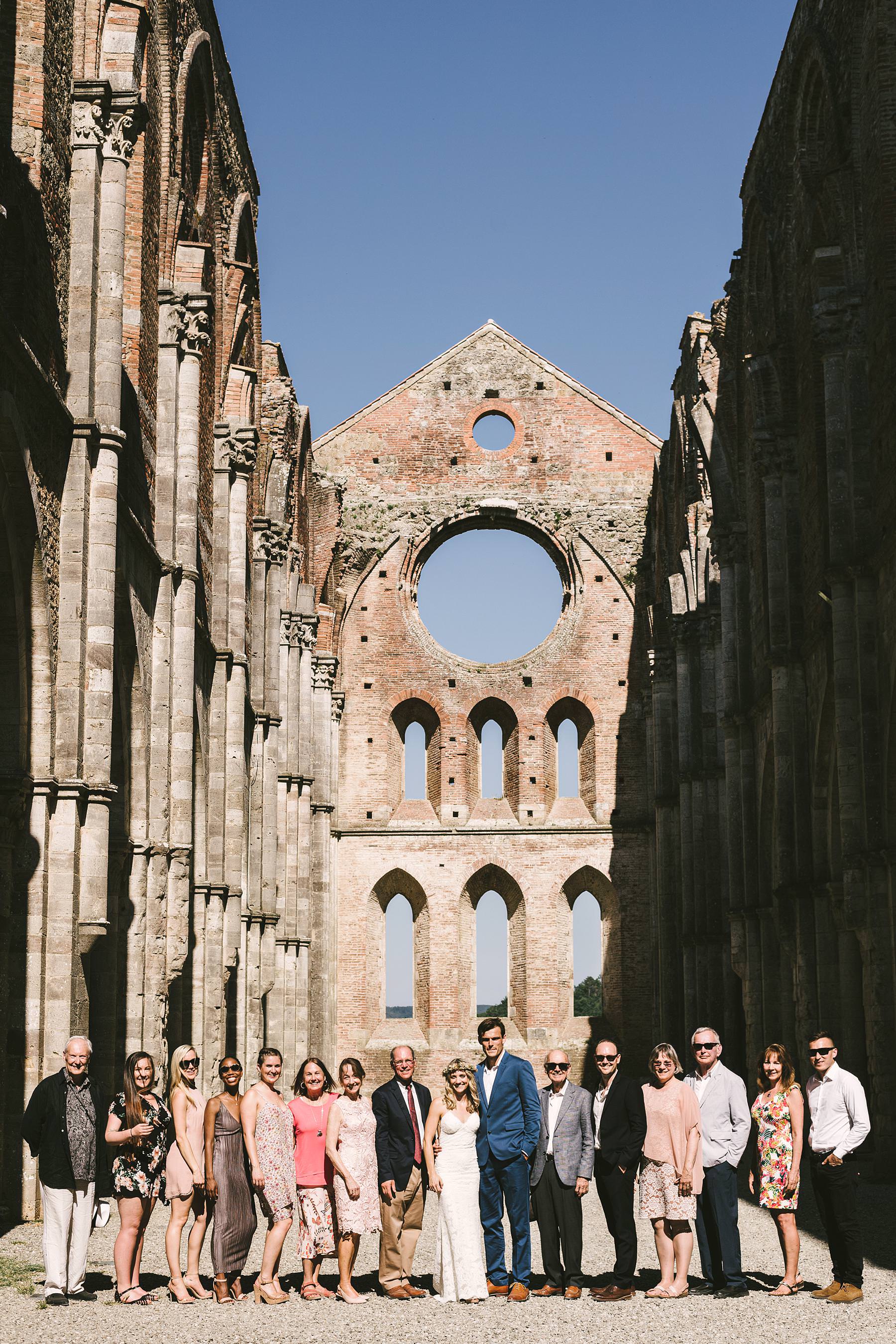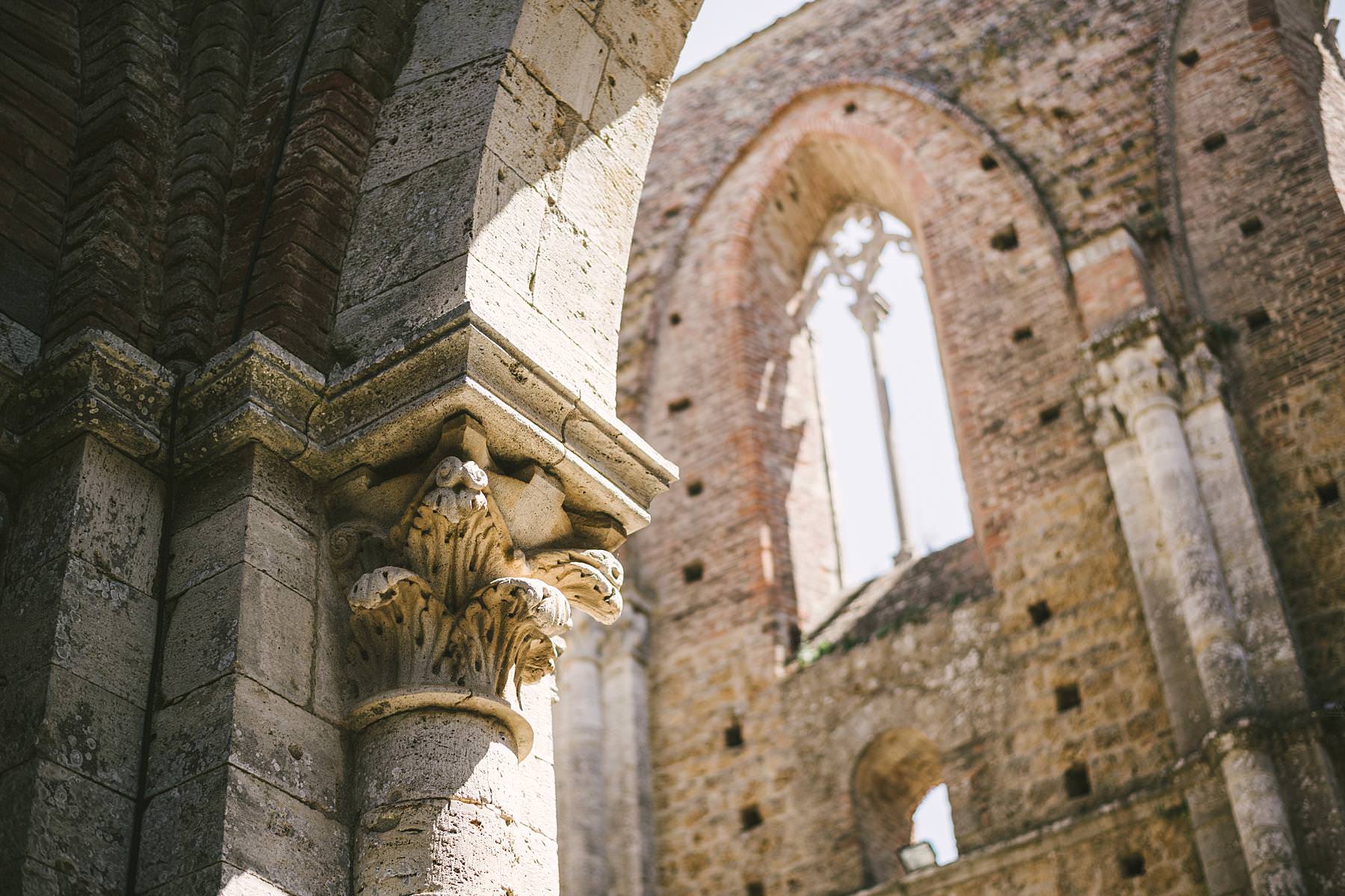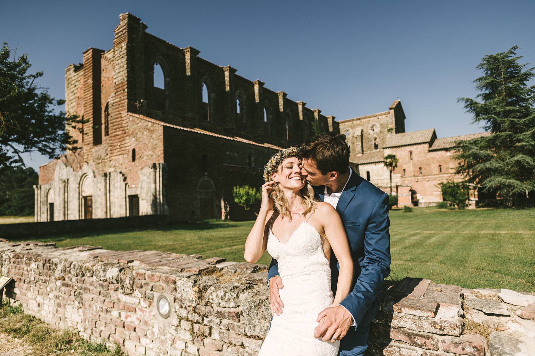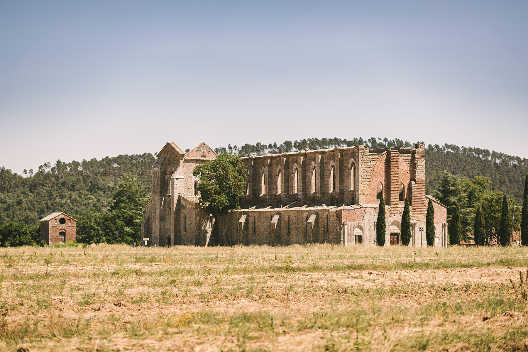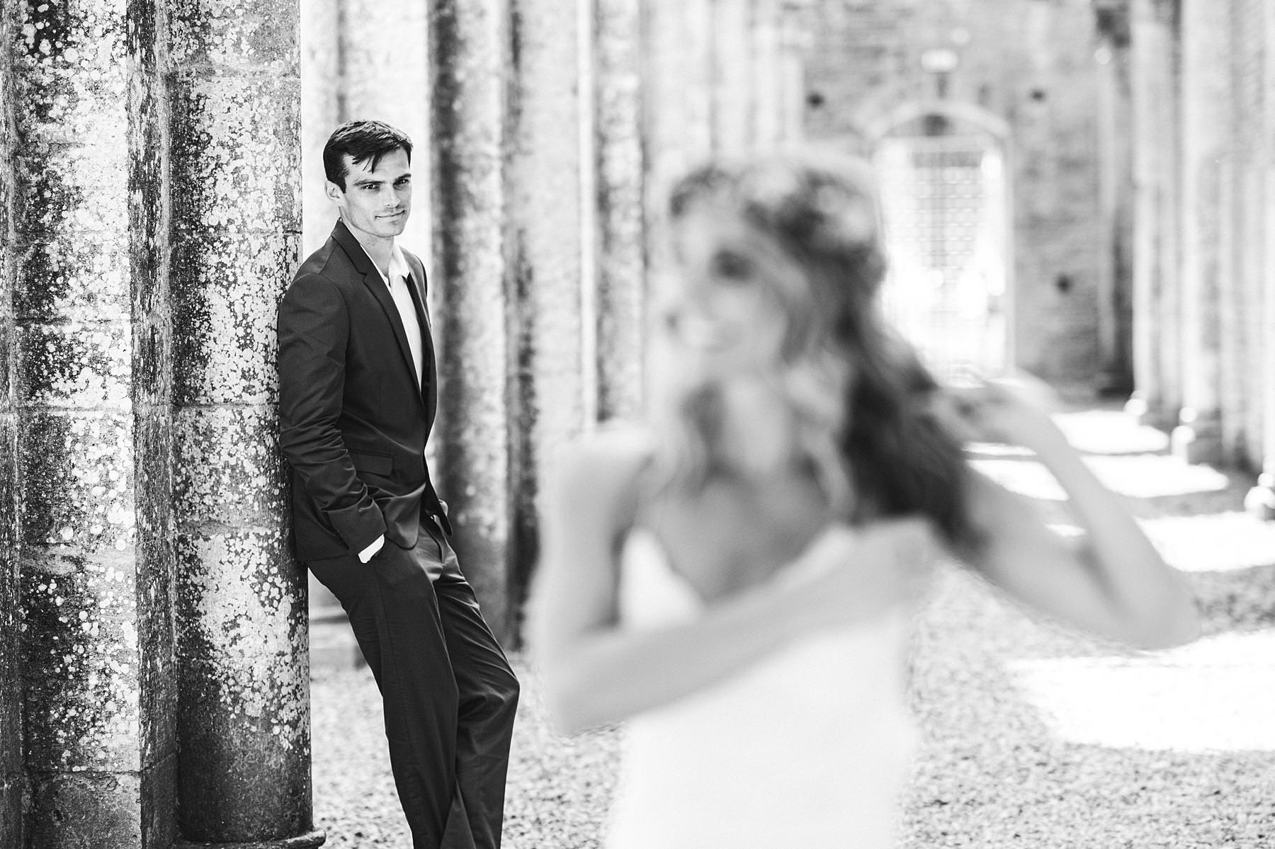 Well, that and the location where they would promise to love one another for eternity. They chose San Galgano, a roofless abbey tucked among the rolling hills of Siena that would leave anyone breathless.