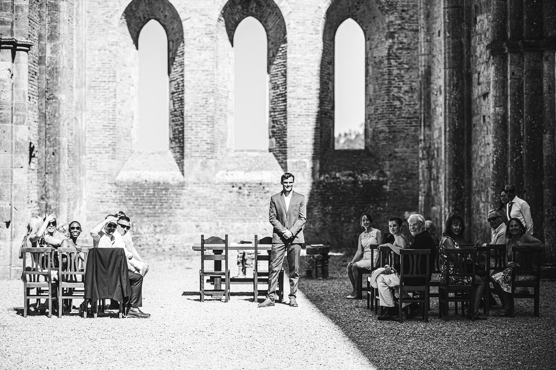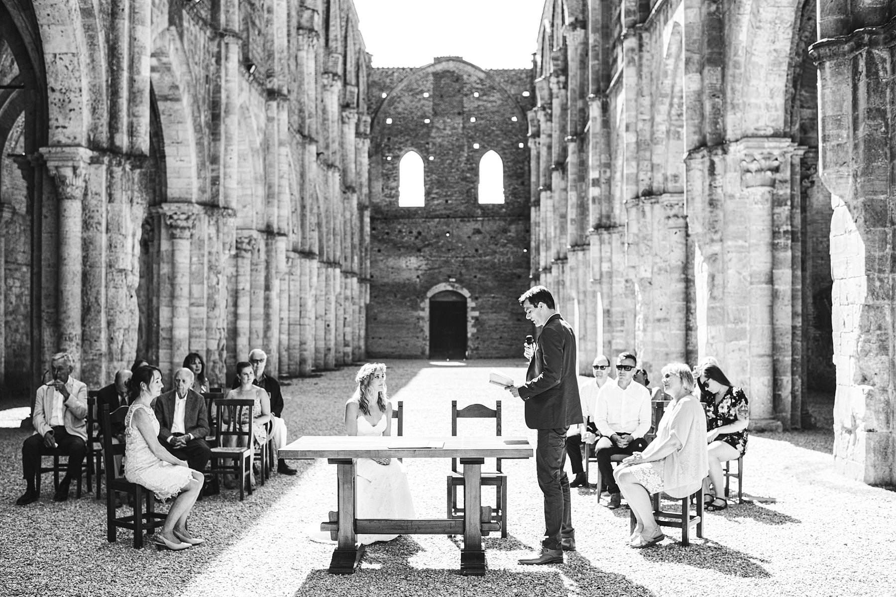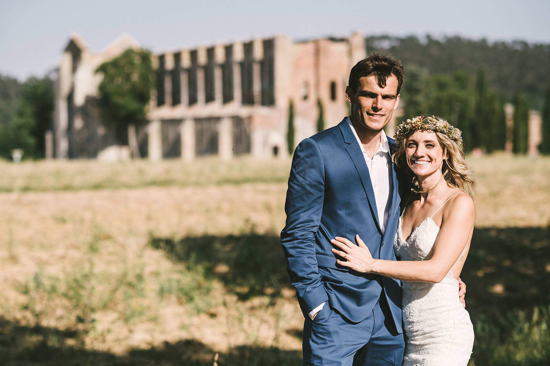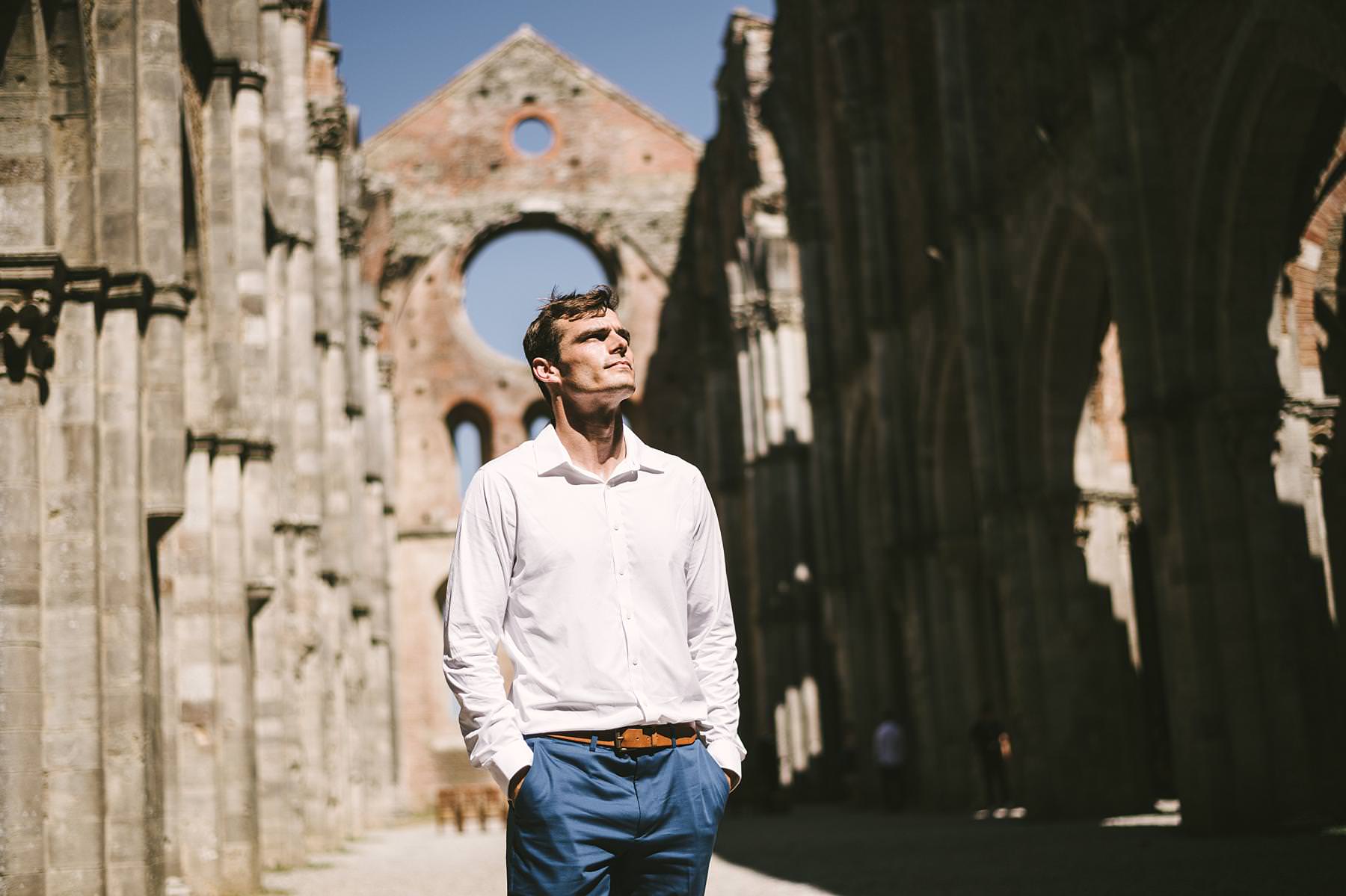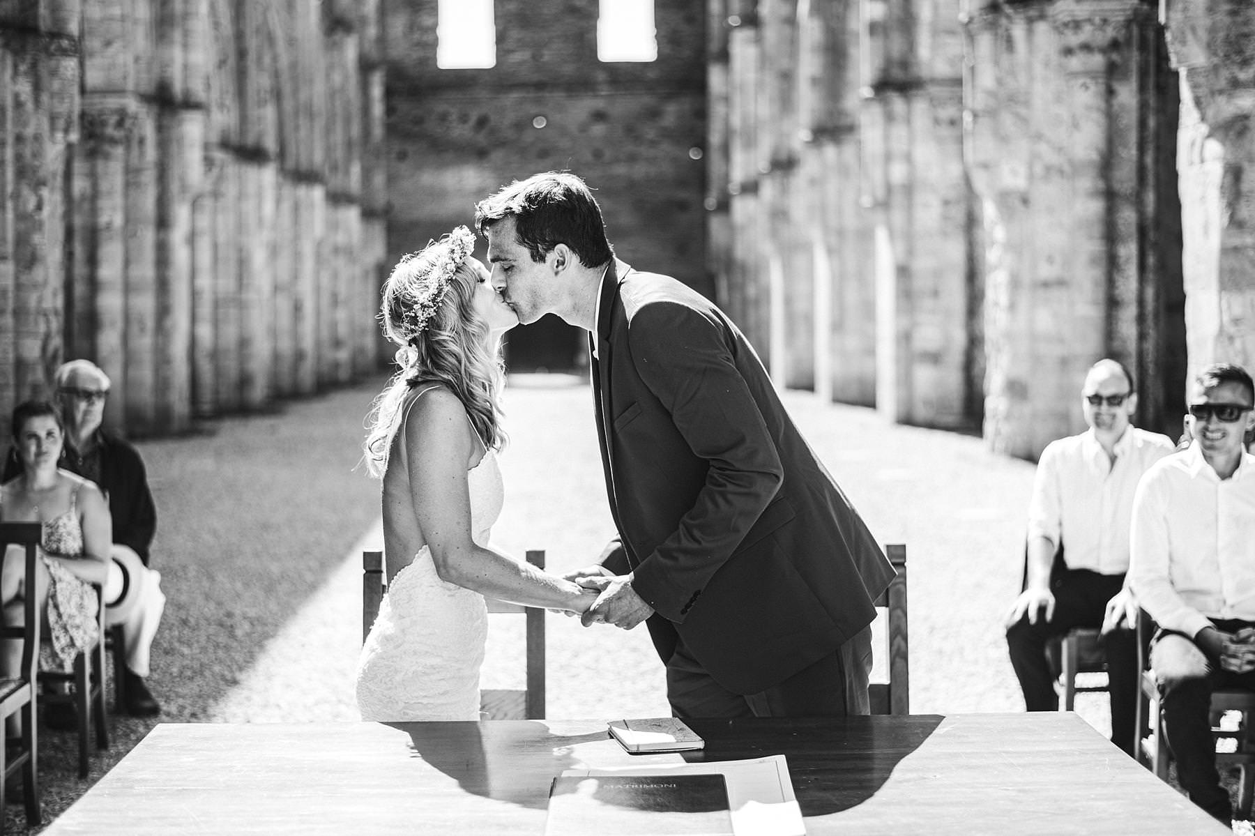 Well, that and the location where they would promise to love one another for eternity. They chose San Galgano, a roofless abbey tucked among the rolling hills of Siena that would leave anyone breathless.
