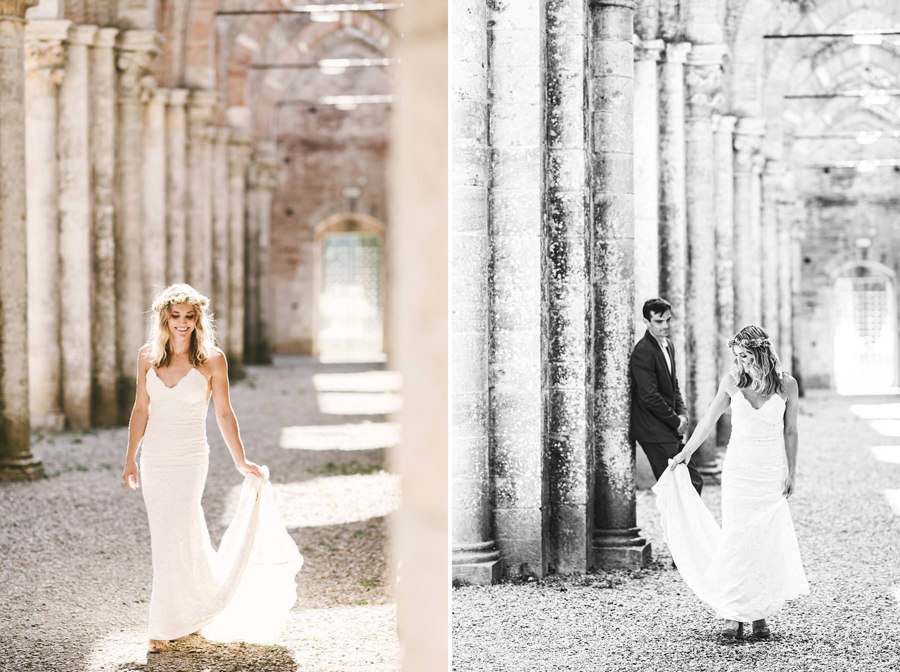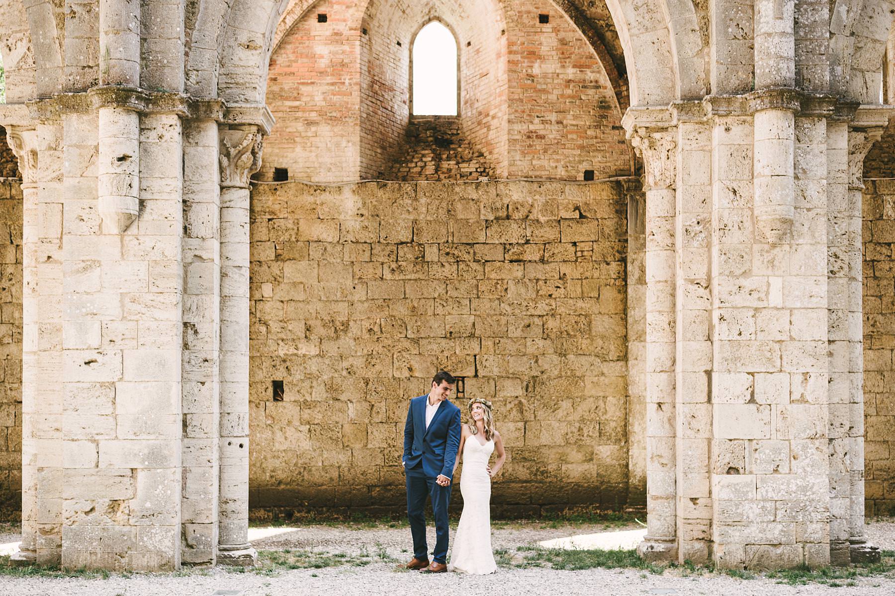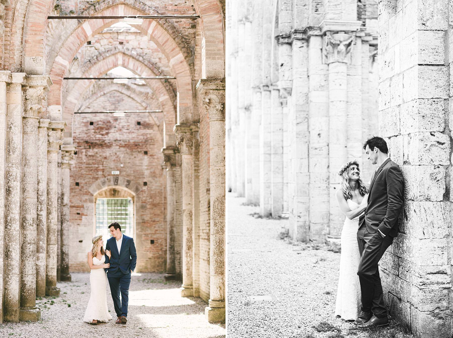 San Galgano abbey doesn’t have a roof anymore, which makes it even more fascinating, and its history and appearance turn it into a one-of-a-kind venue for your big or small wedding in Italy. Amelia and Casey’s photographs are a perfect proof of this: get inspired by their charm and don’t hesitate to contact me if you’re also daydreaming about the same kind of marriage celebration.