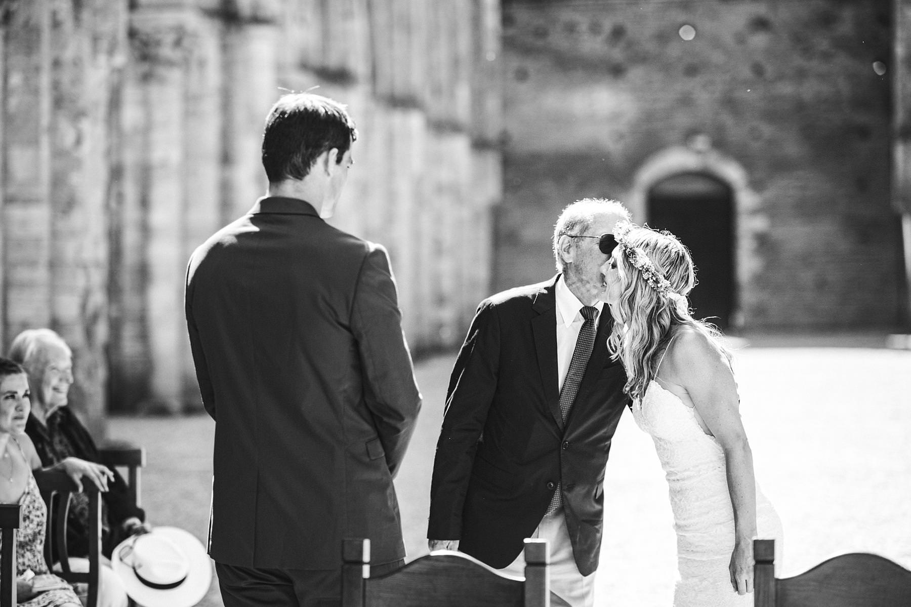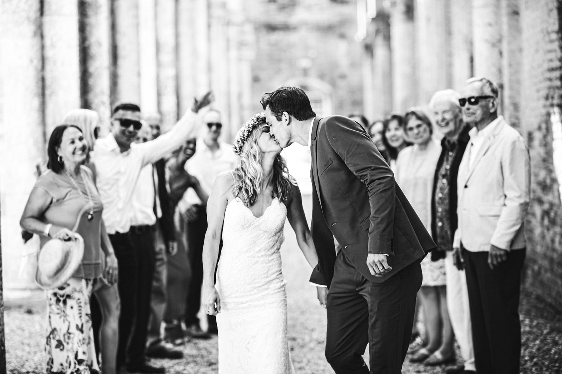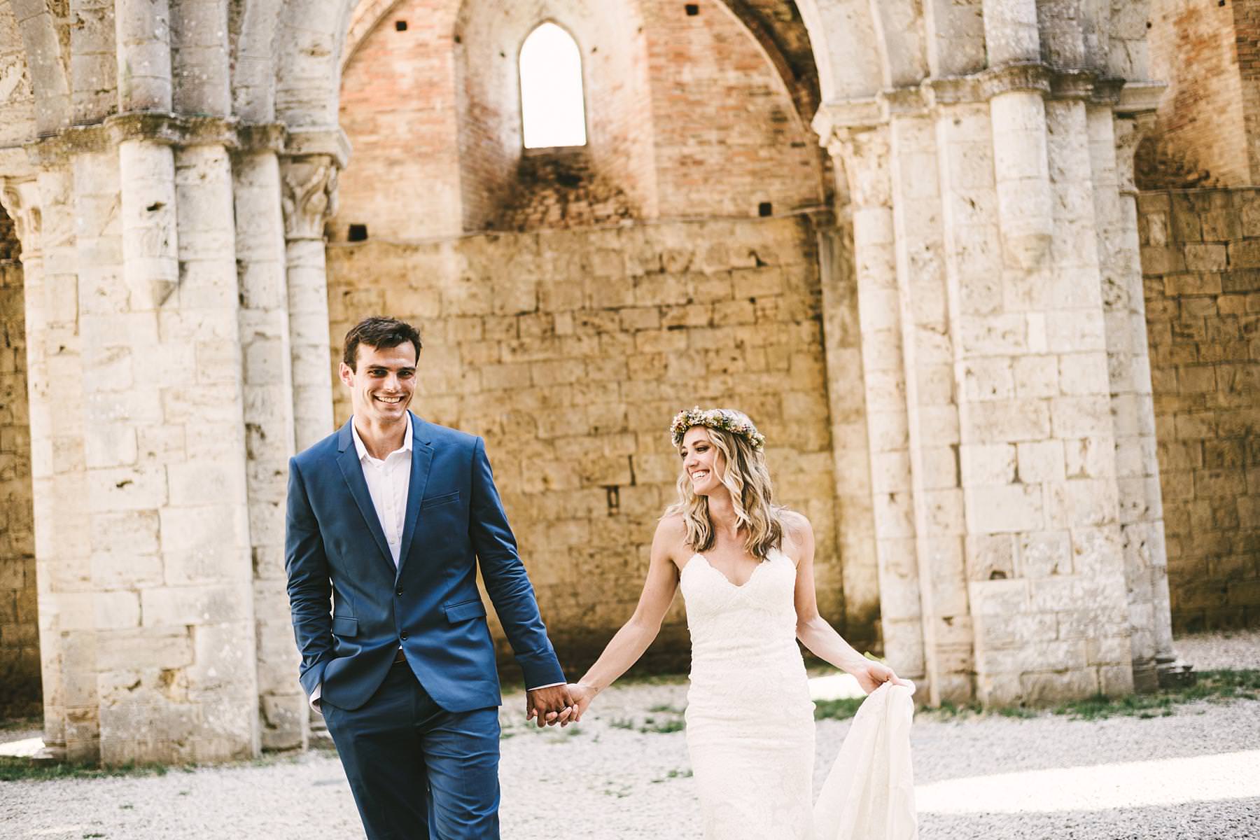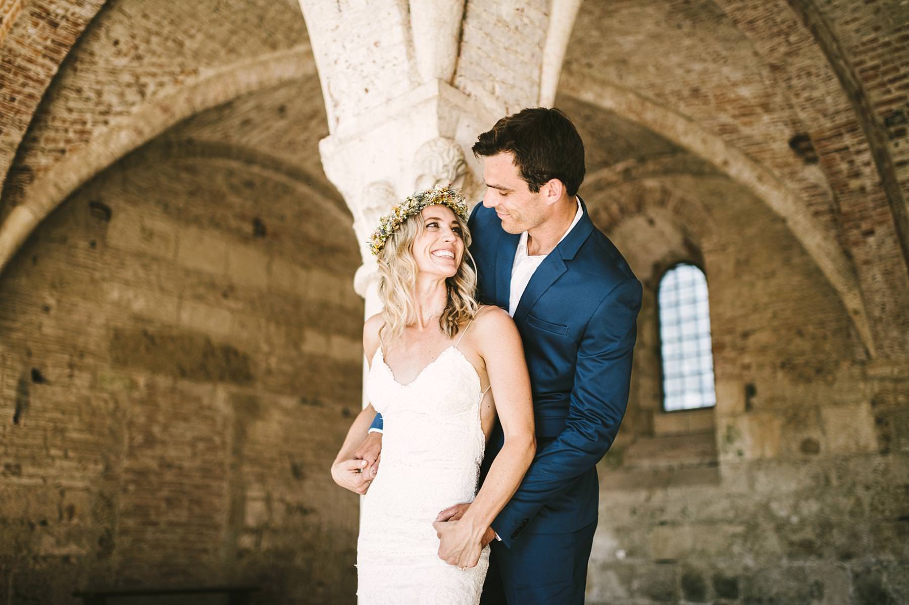 San Galgano abbey doesn’t have a roof anymore, which makes it even more fascinating, and its history and appearance turn it into a one-of-a-kind venue for your big or small wedding in Italy. Amelia and Casey’s photographs are a perfect proof of this: get inspired by their charm and don’t hesitate to contact me if you’re also daydreaming about the same kind of marriage celebration.