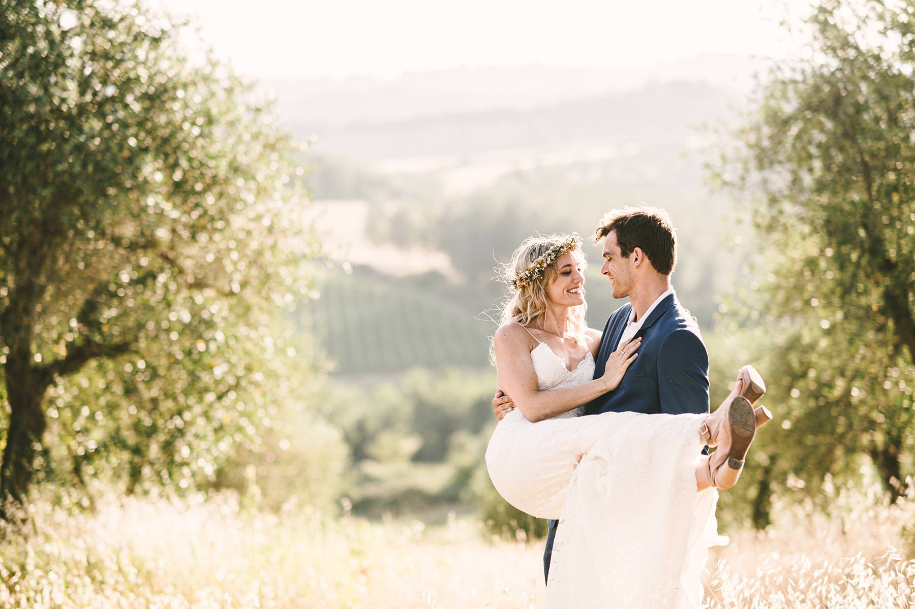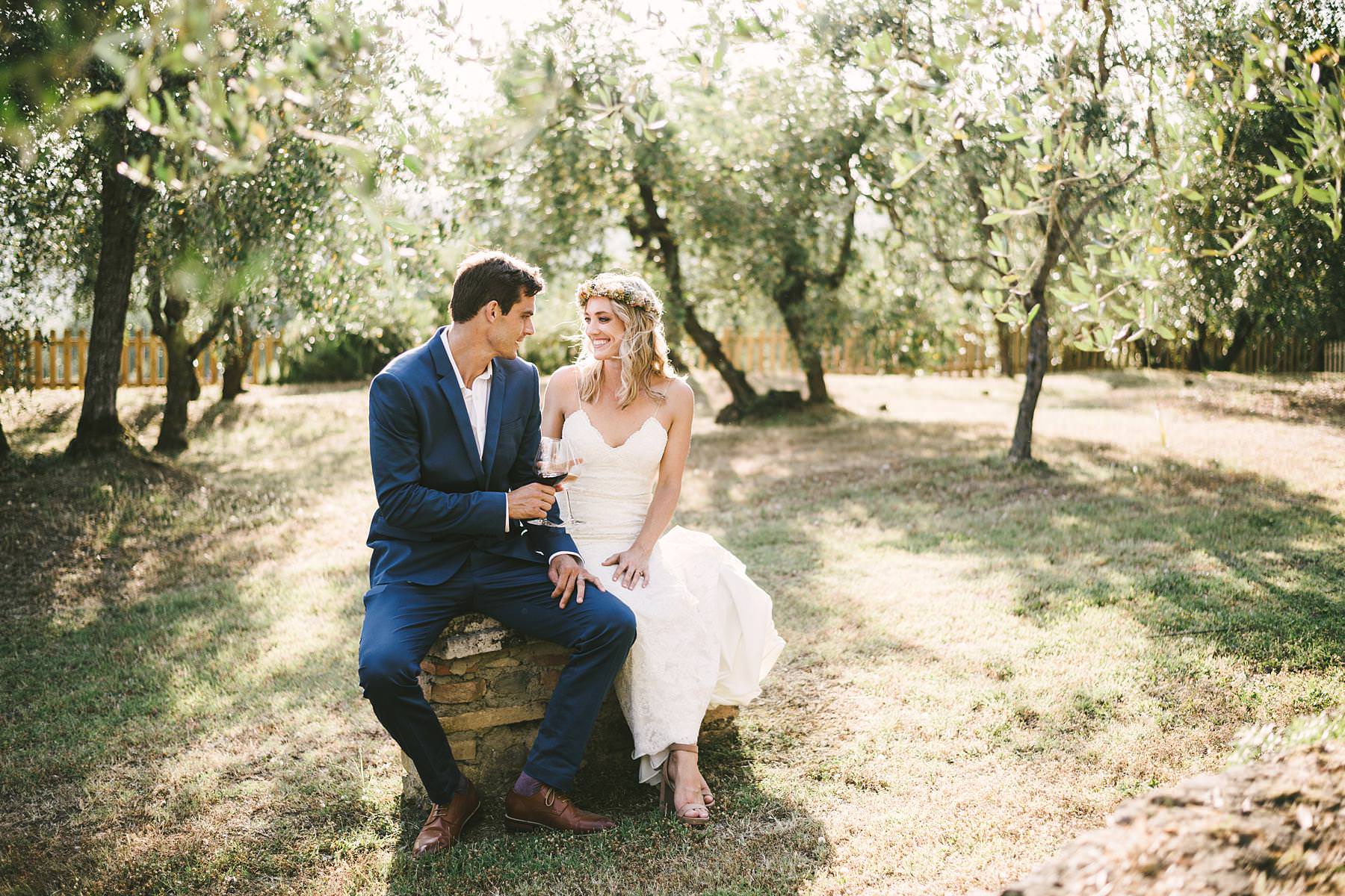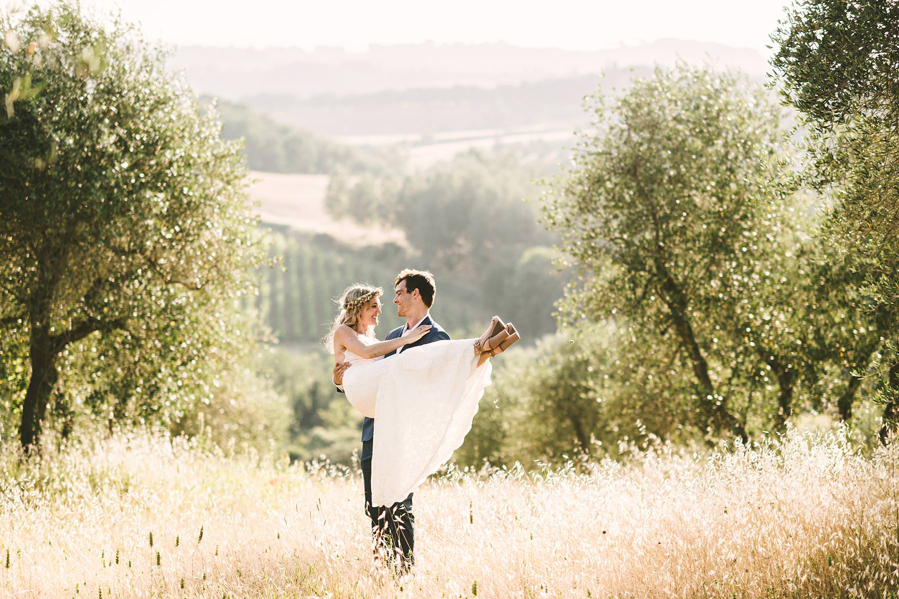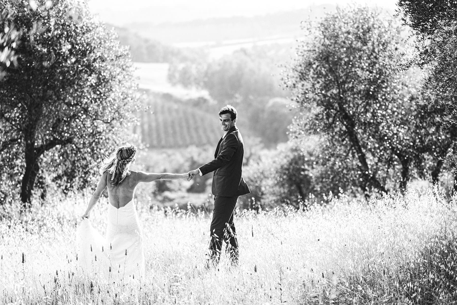 Lovely bride and groom wedding photo in olive groves of Tuscany at Villa La Torre in the comune of Montechiaro. Intimate destination wedding in Tuscany with Italian civil marriage at Roofless Abbey of San Galgano. Photo by the Italian elegant and modern wedding photographer in Tuscany based Florence Gabriele Fani