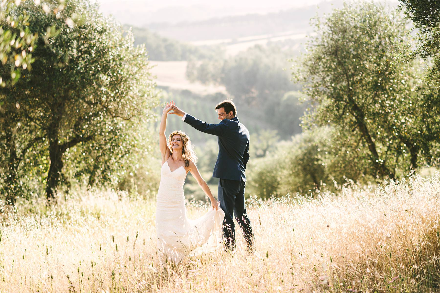 Then we moved to Villa la Torre, a country house in Montechiaro where the reception took place. We had the chance to catch the warm, golden light of sunset and capture it in absolutely romantic shots with the newlyweds embraced by nature.