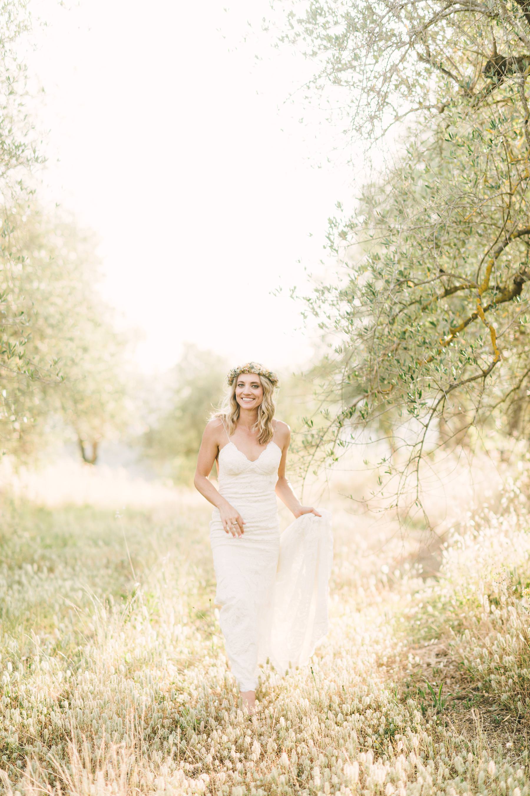 Lovely bridal Amelia portrait in the middle of the tuscan countryside olive groves field at Villa La Torre in the Montechiaro area. Photo by the Italian elegant and modern wedding photographer in Tuscany based Florence Gabriele Fani
