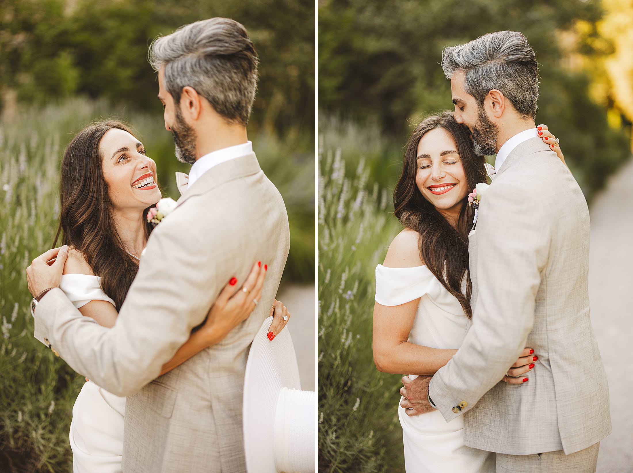 Emotional bride and groom elopement portrait during golden hour at Borgo Pignano. Photo by the Italian elegant and creative elopement photographer in Tuscany Gabriele Fani