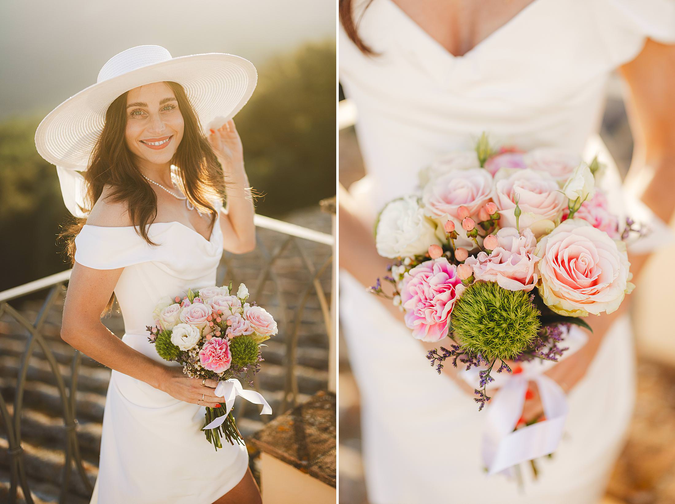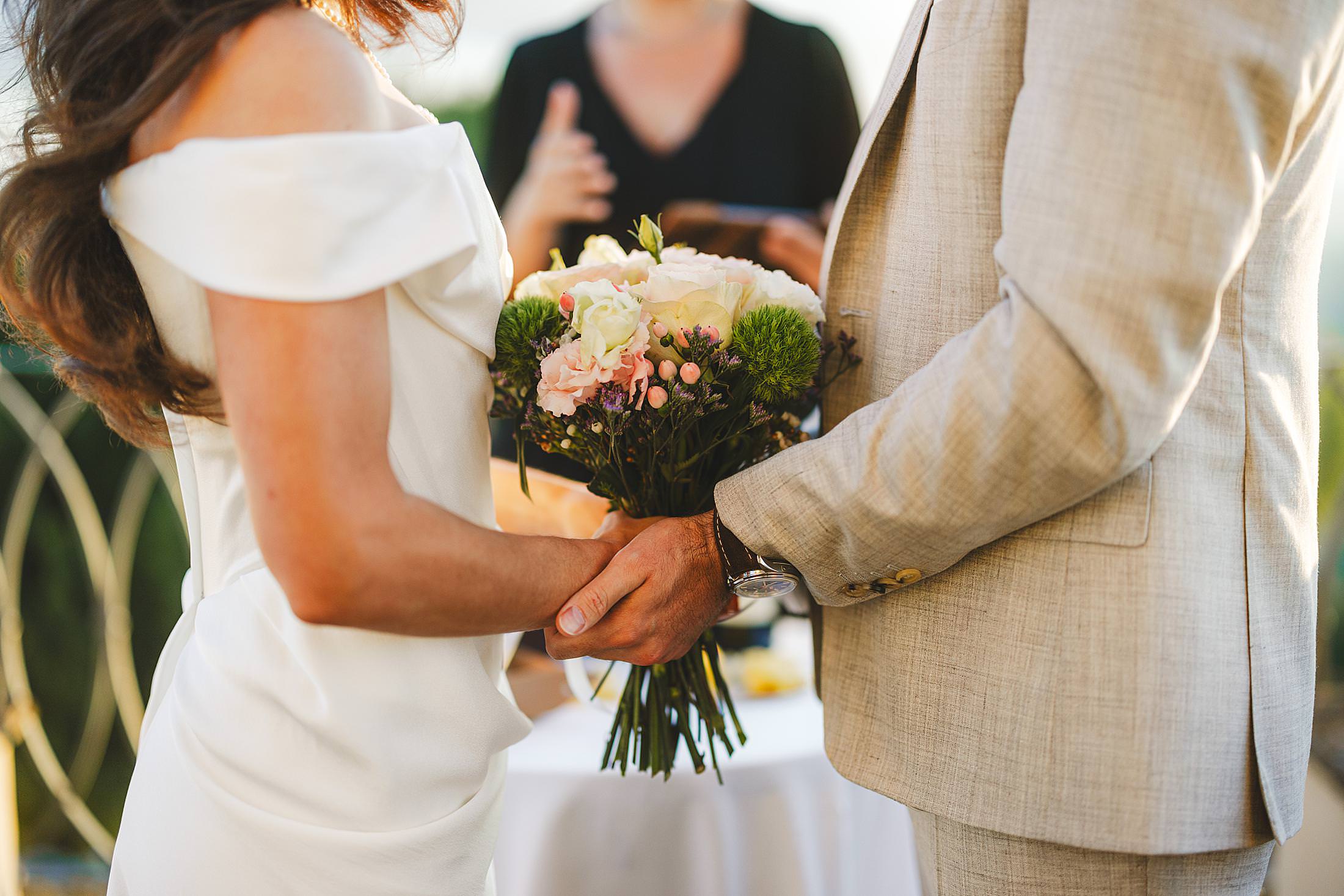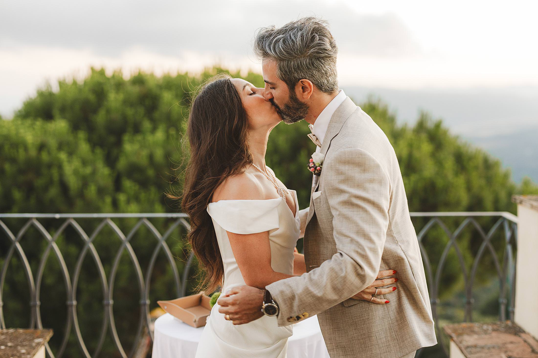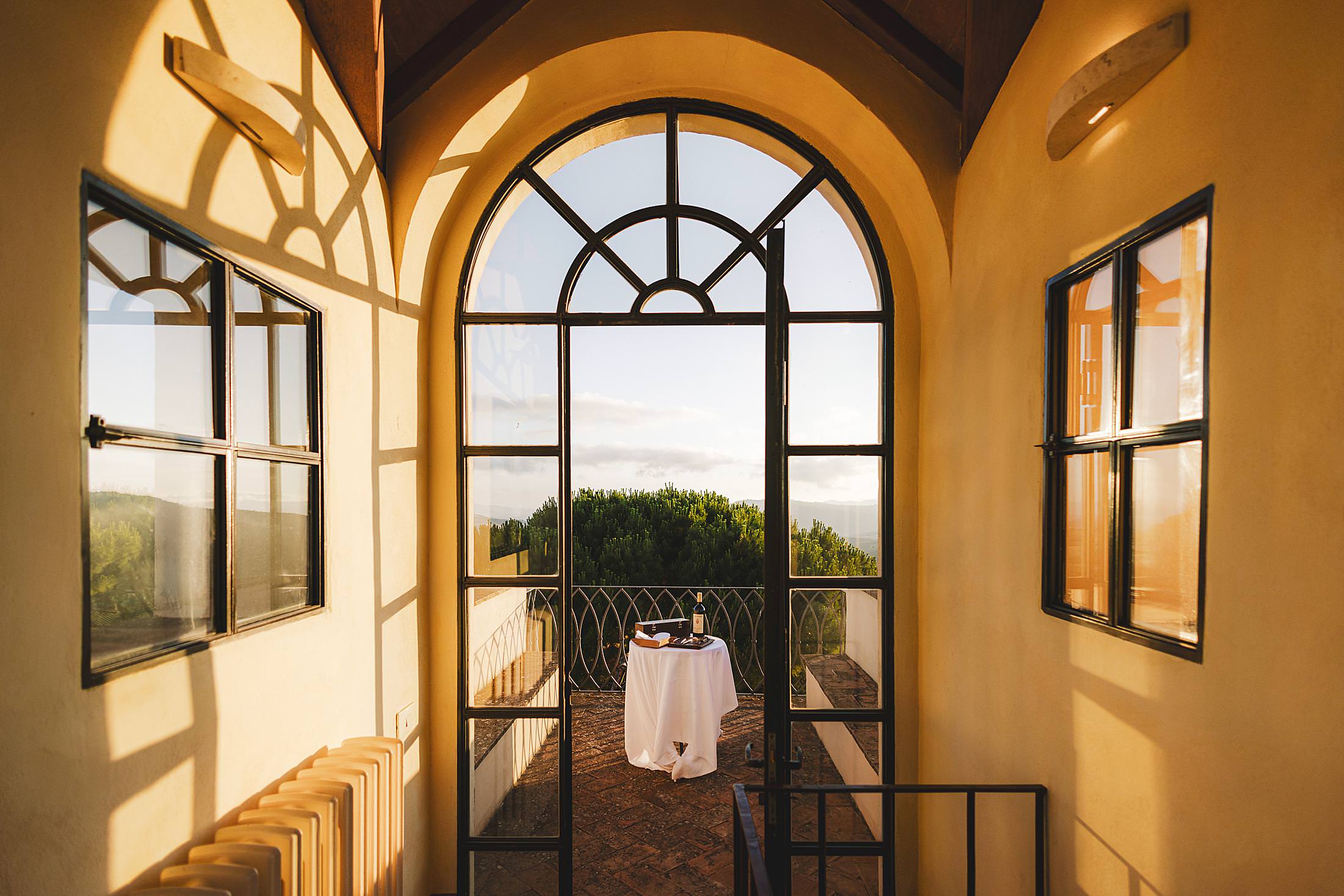 As the sun dipped toward the horizon, painting the sky in warm hues, it was time for the symbolic ceremony. The couple stood on the panoramic terrace, with the endless countryside stretching before them. The intimate exchange of vows, set against this breathtaking scenery, made for some of the most powerful and emotional elopement wedding photos of the day.