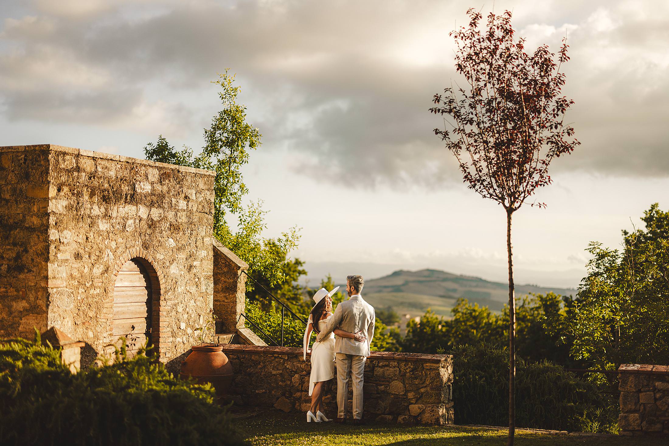 Brittany and Behzad’s elopement wedding was a testament to the beauty of simplicity, elegance and authentic emotion. Borgo Pignano provided the perfect setting: a luxury relais located on a peaceful hilltop – an exclusive, intimate and utterly unforgettable venue. The golden light wrapped around the couple during this small wedding highlighted every loving glance and tender gesture, as well as the location’s attributes. It was a day of pure beauty, set in an exquisite frame. No need for a grand audience: just the profound presence of two hearts promising forever, surrounded by a picture-perfect Tuscan scenery.