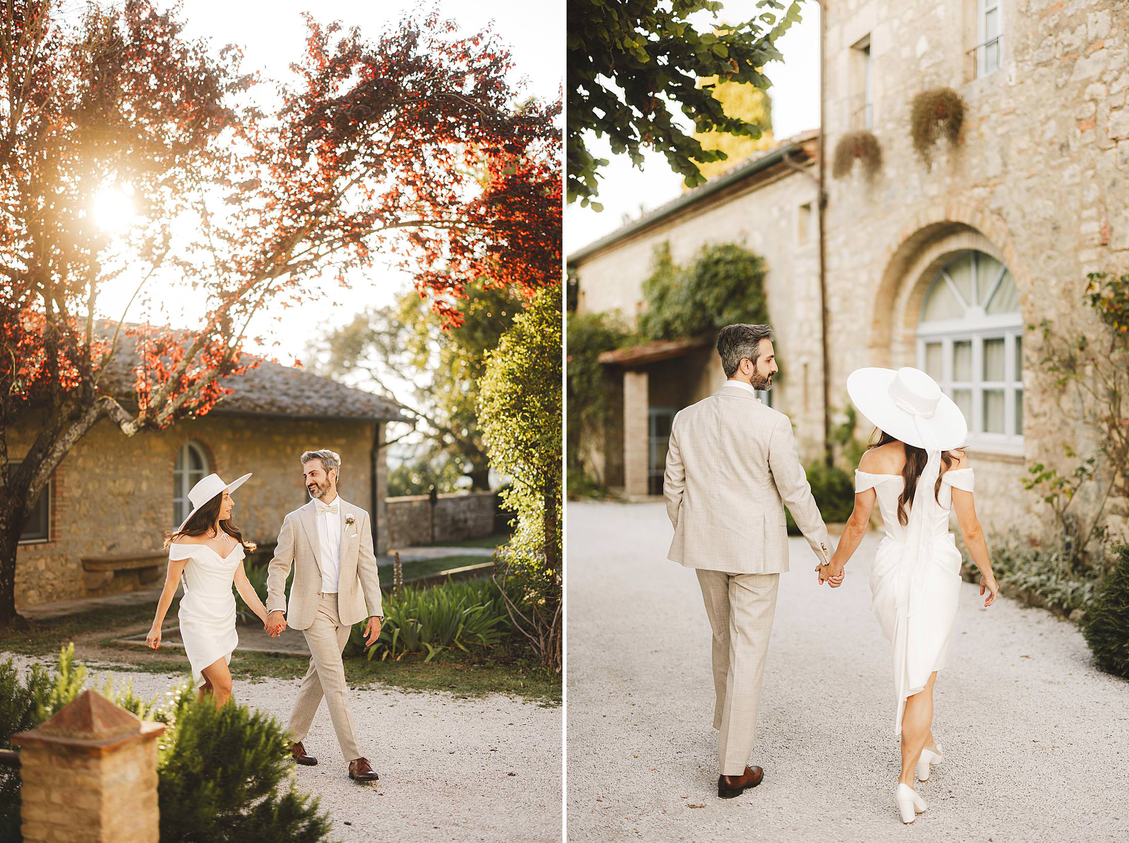 Stylish elopement wedding photos at Borgo Pignano. Photo by the Italian elegant and creative elopement photographer in Tuscany Gabriele Fani