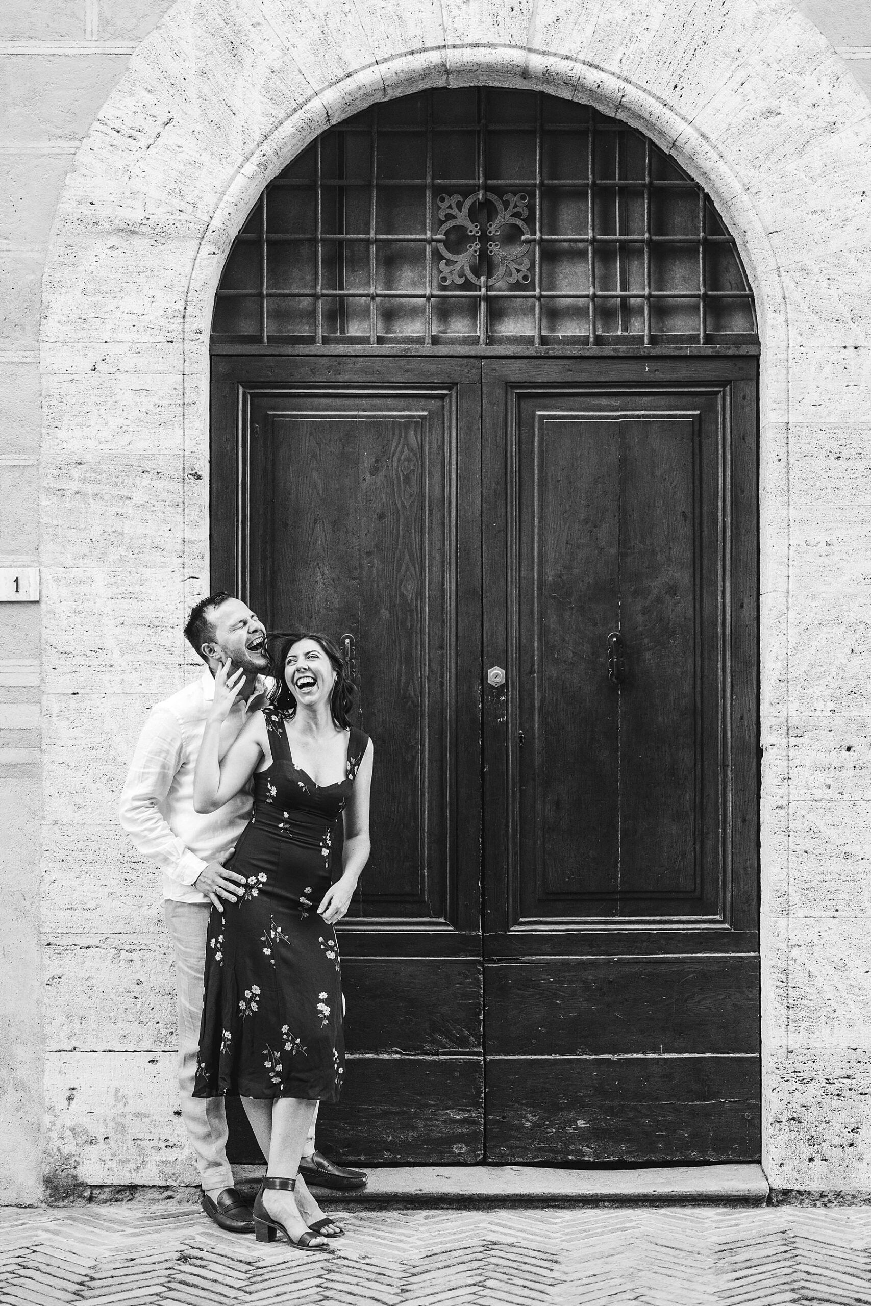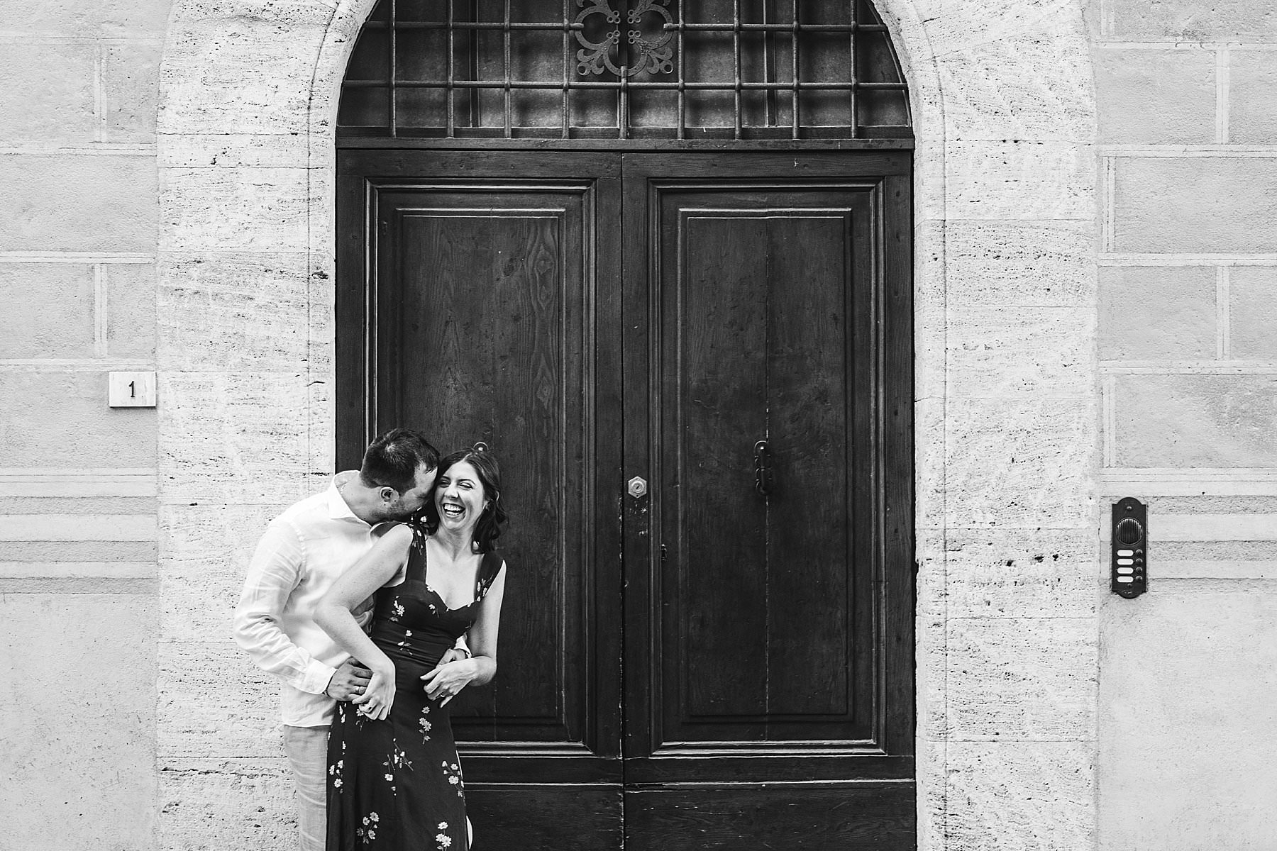 Elegant shots in the heart of Pienza full of smiles and love gestures. Photo by the Italian engagement photographer in Tuscany based Florence Gabriele Fani