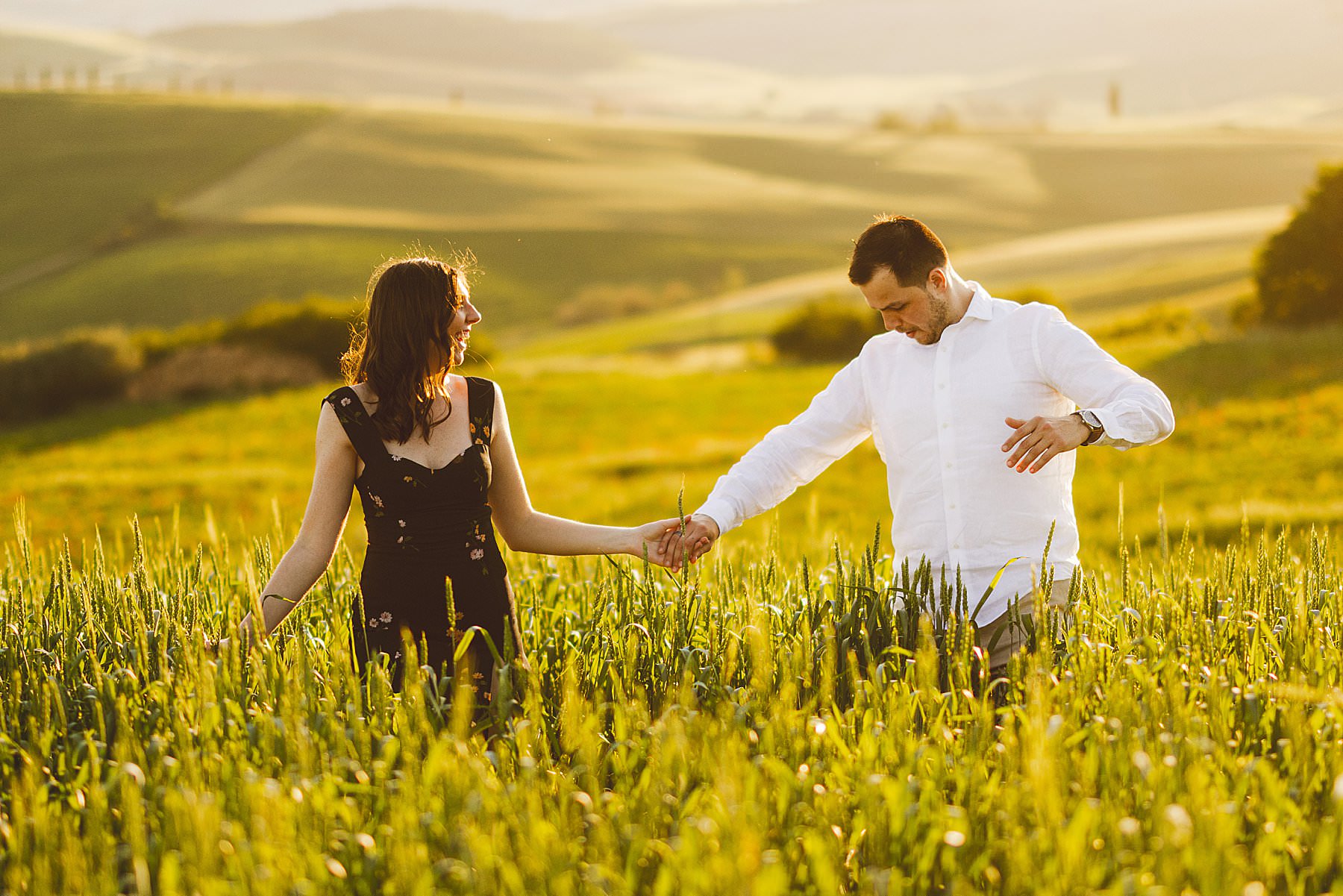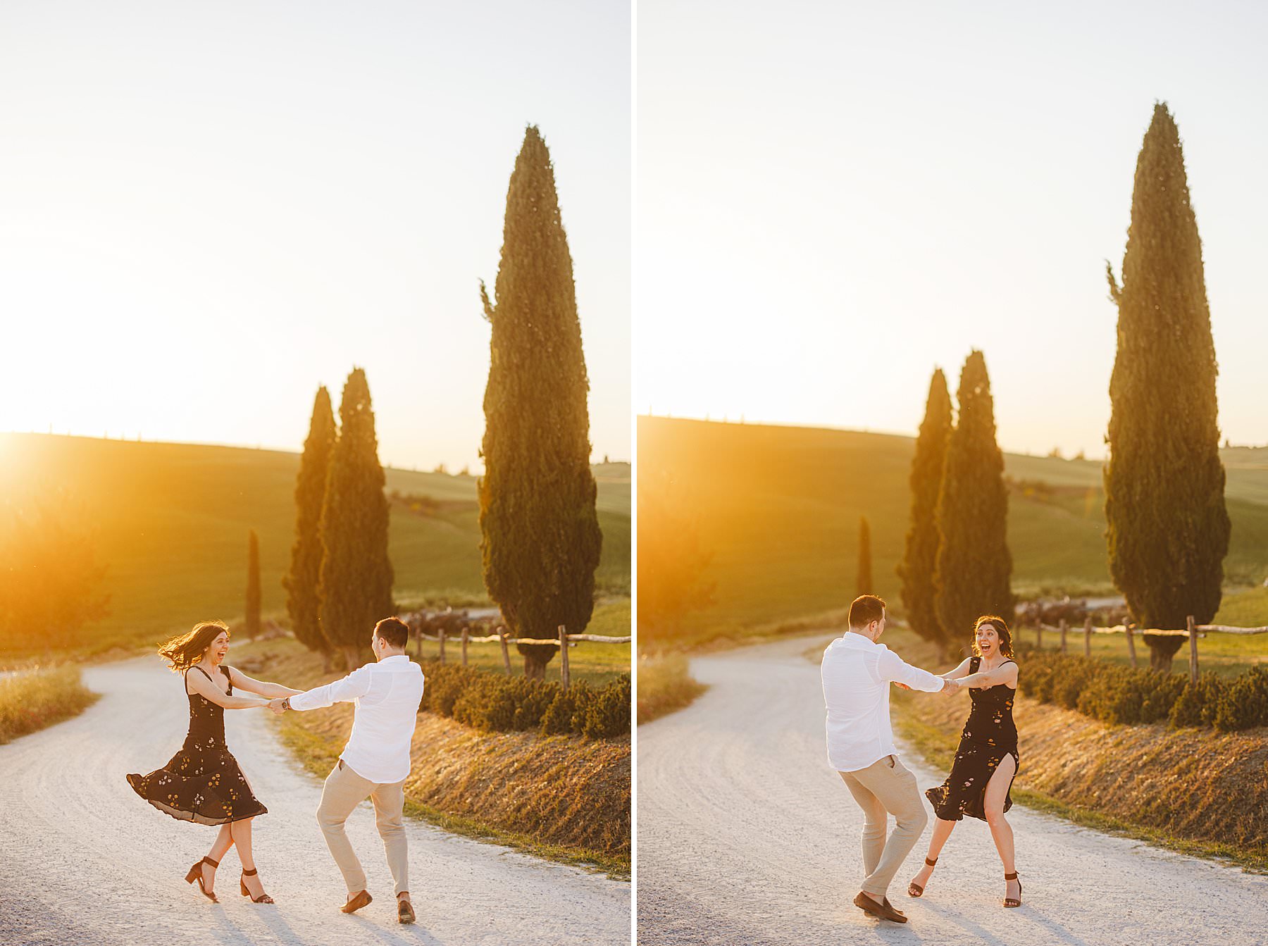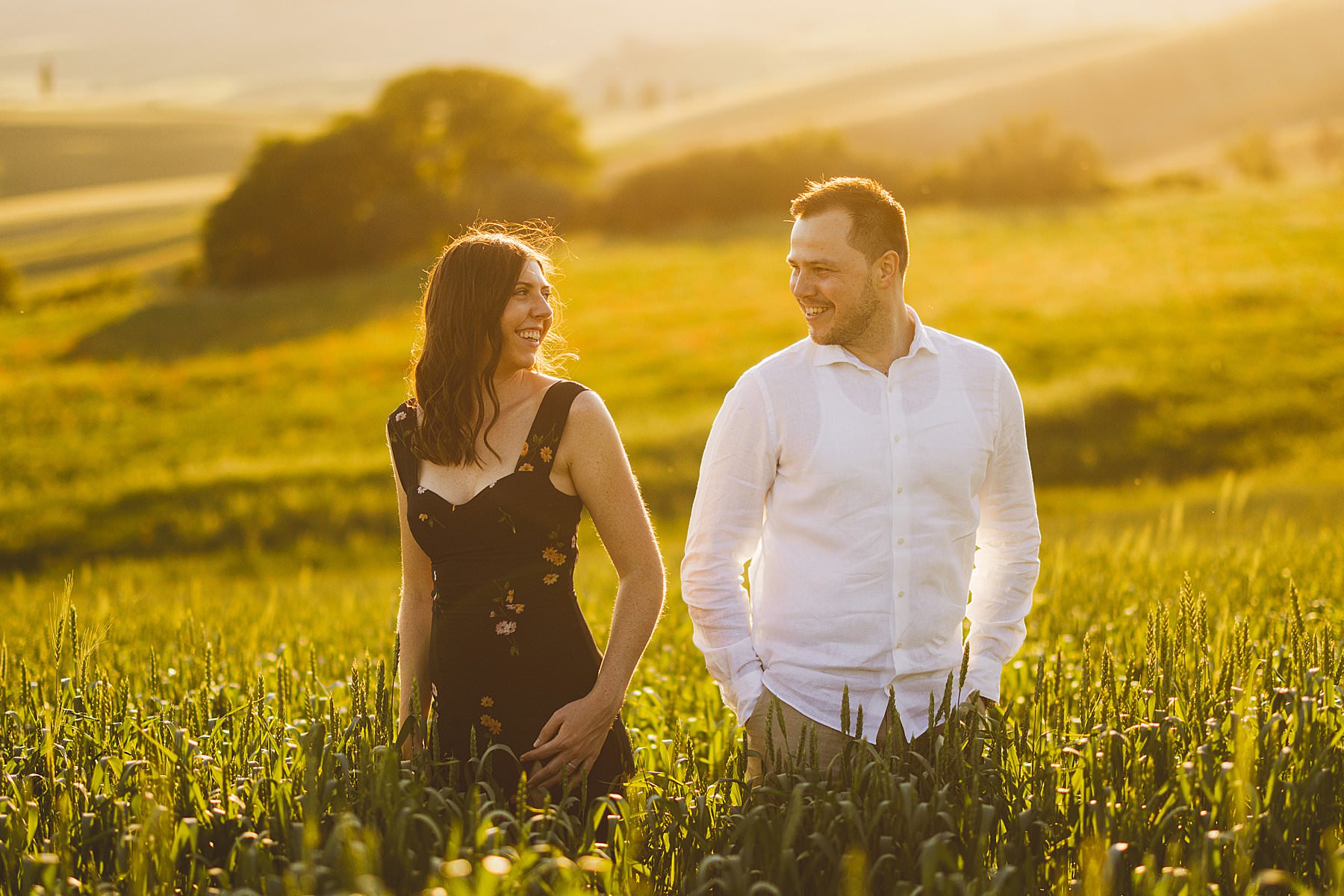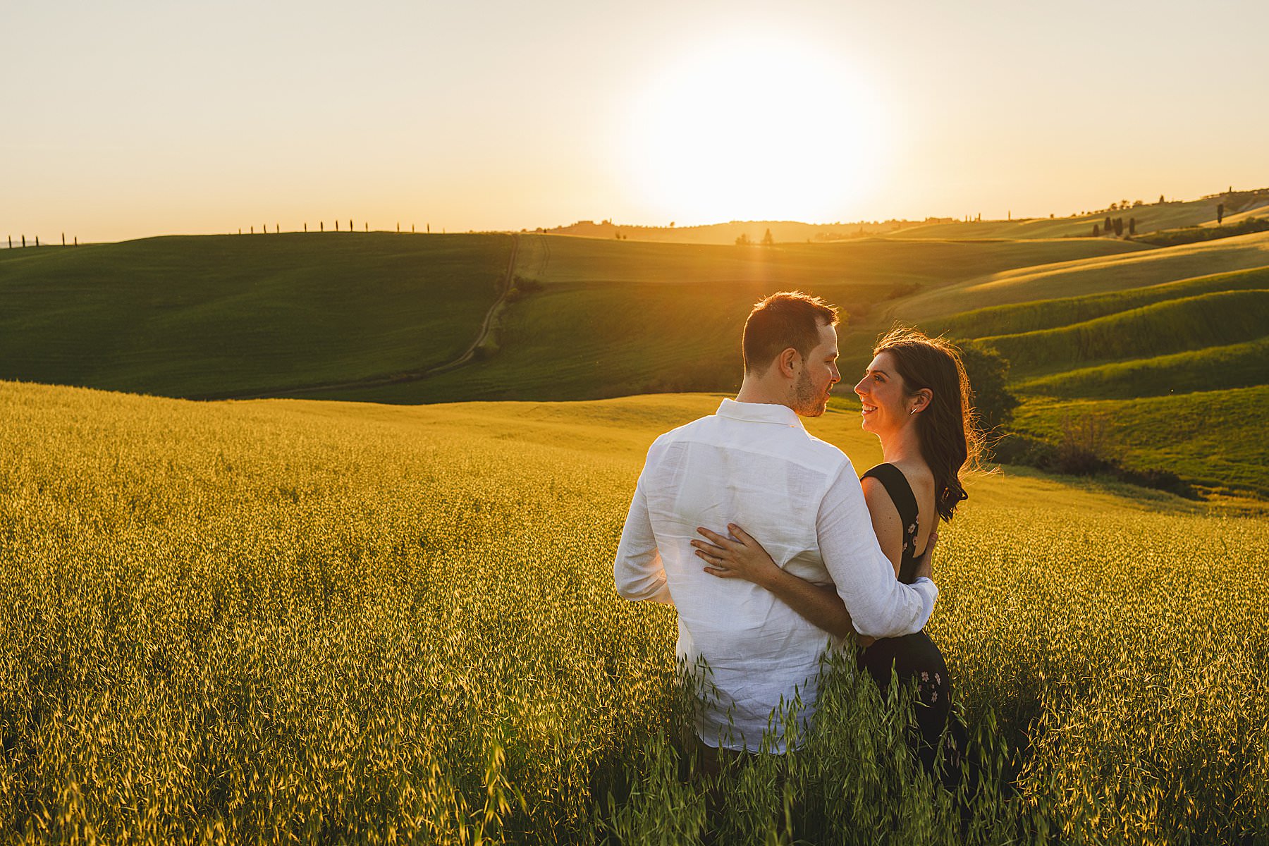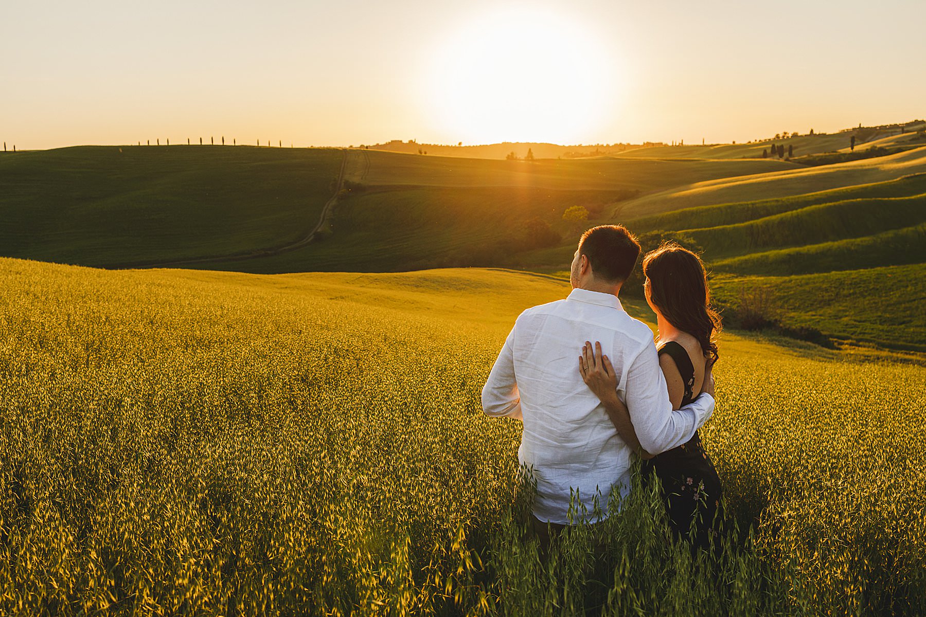Sunset engagement photos in the heavenly Val d’Orcia, Tuscany