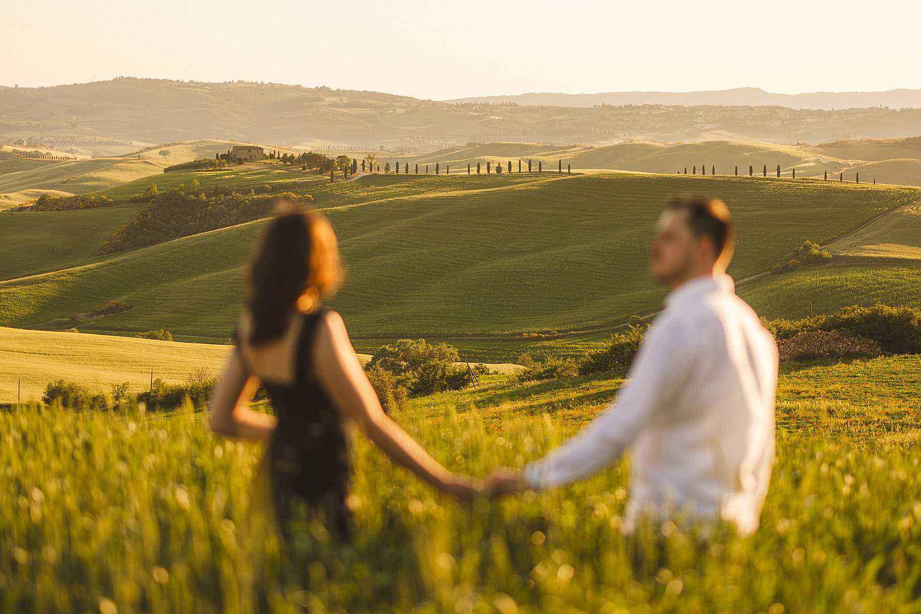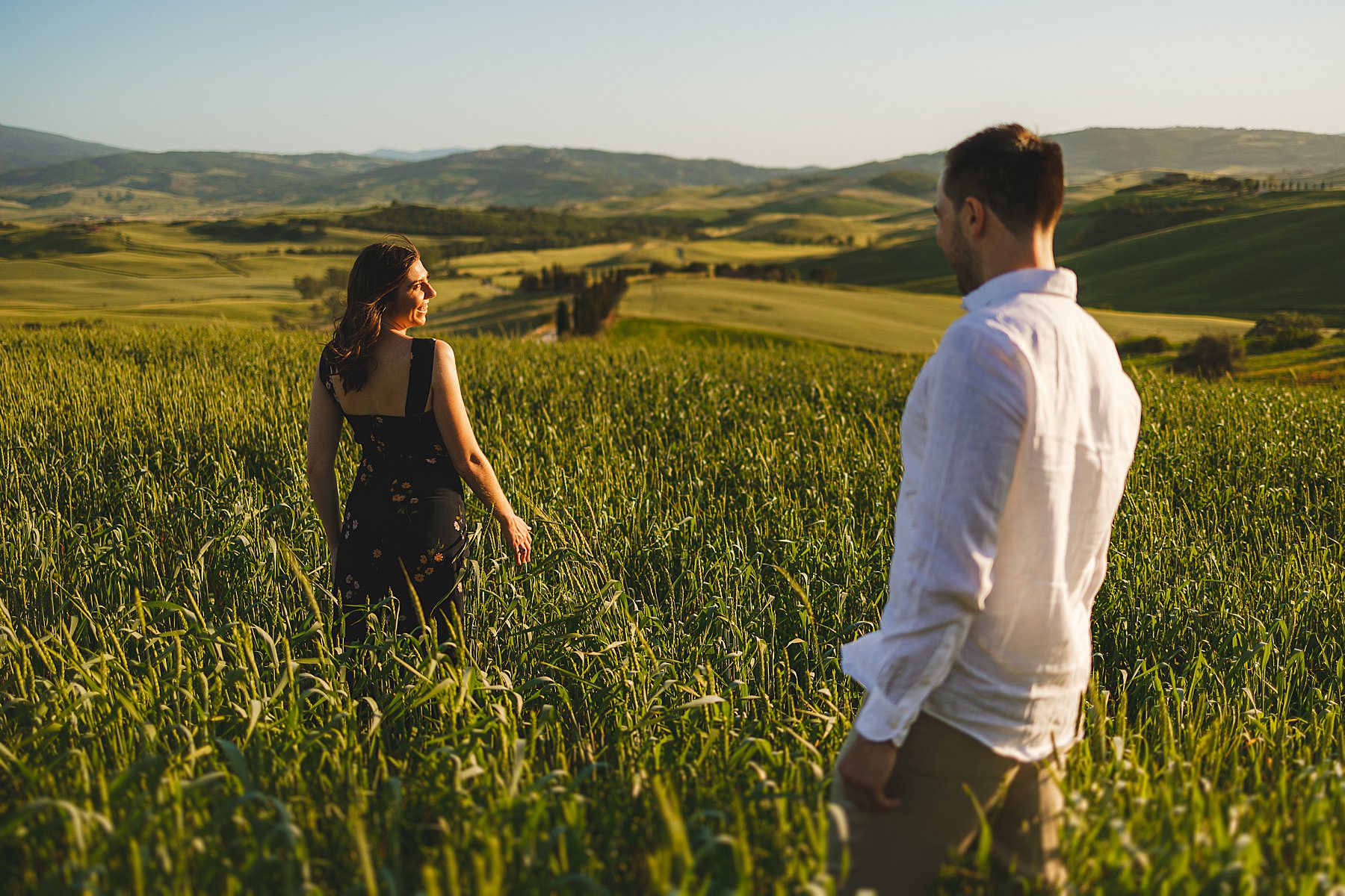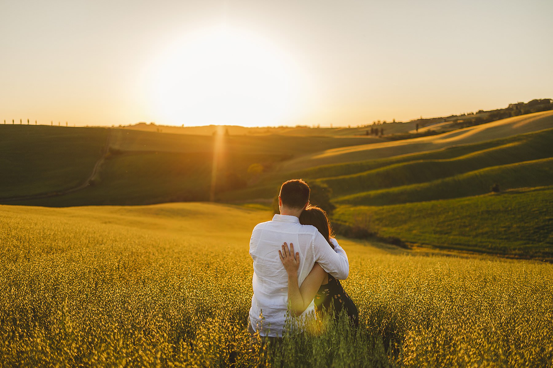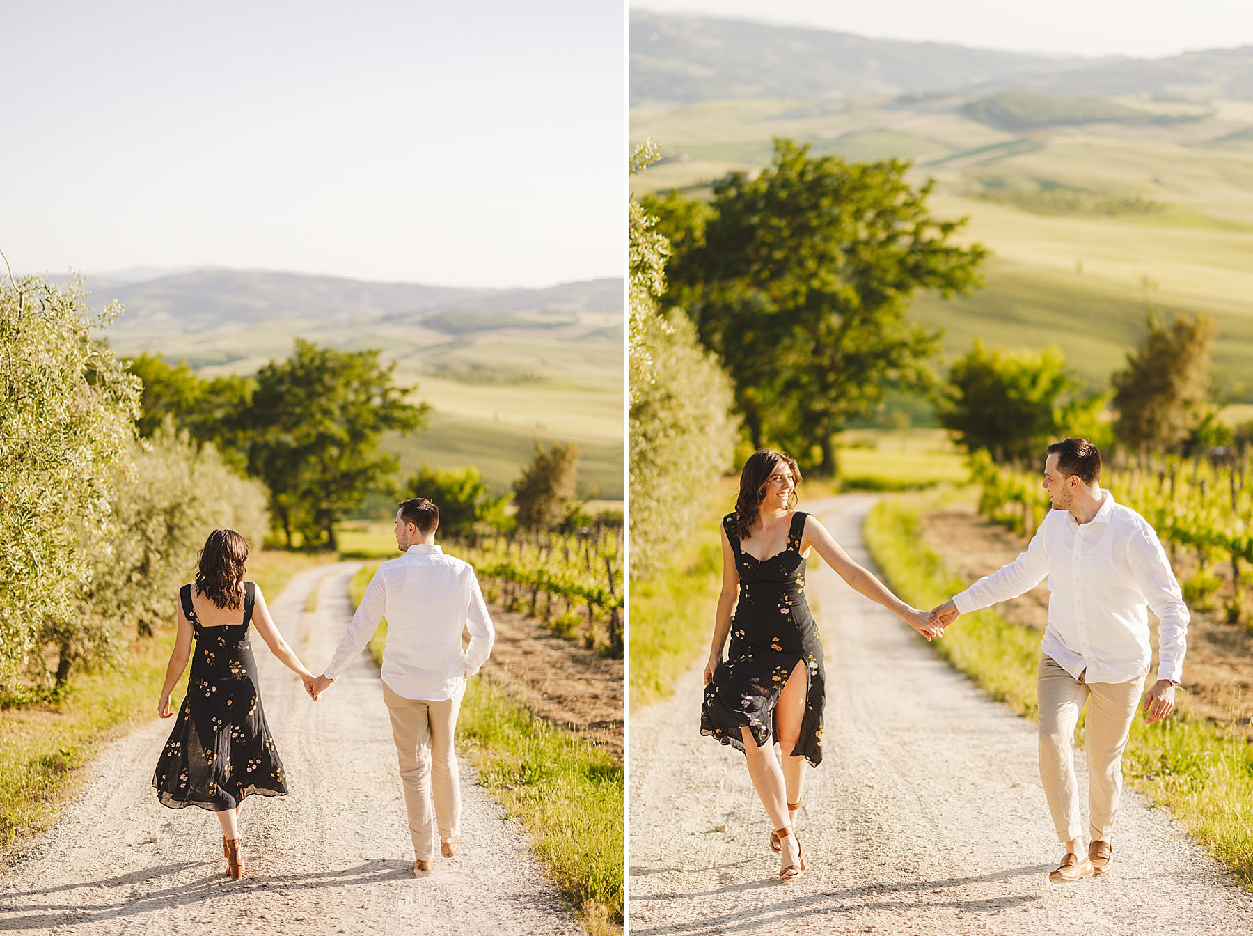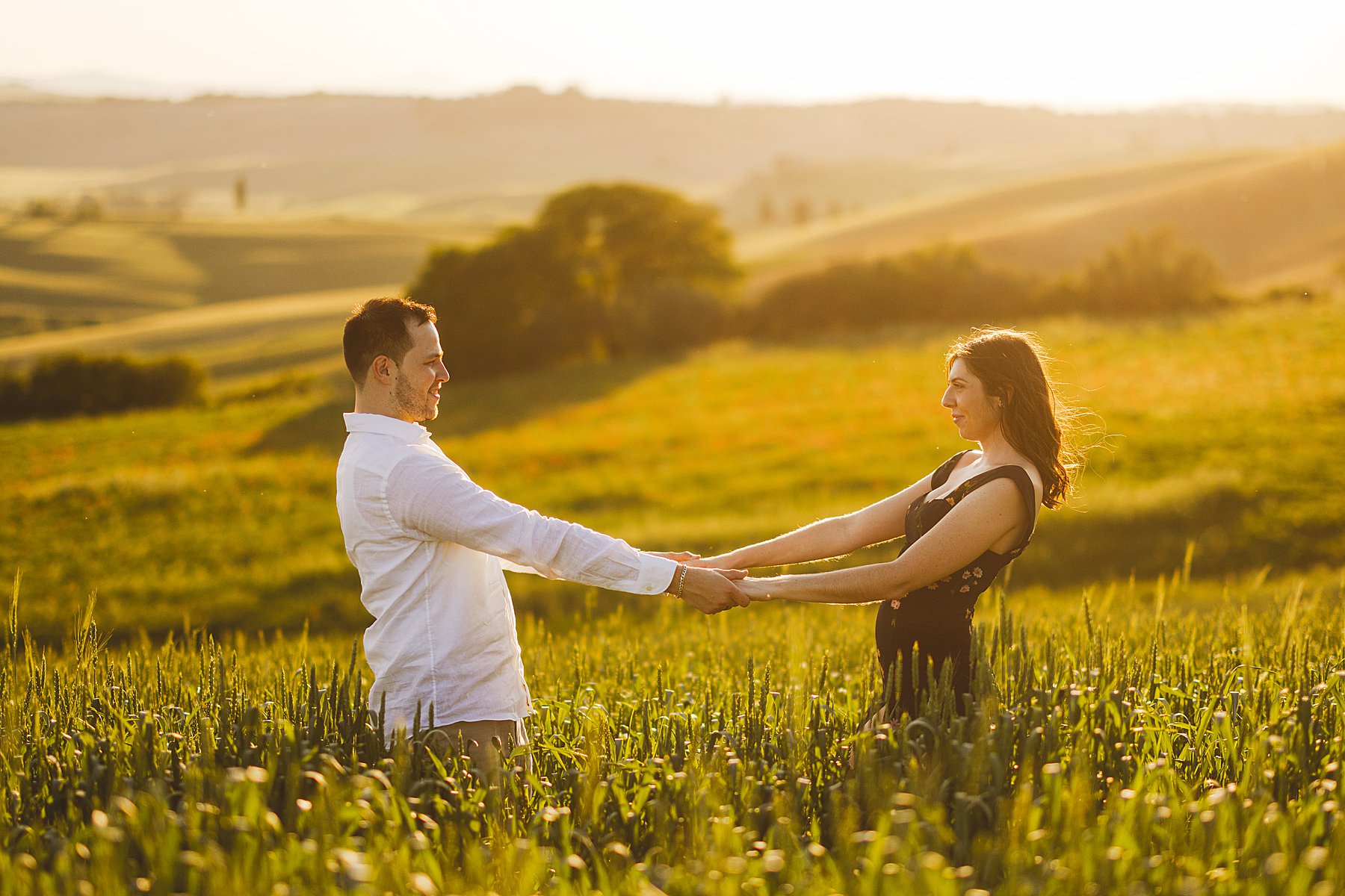 Sunset engagement photos in the heavenly Val d’Orcia, Tuscany