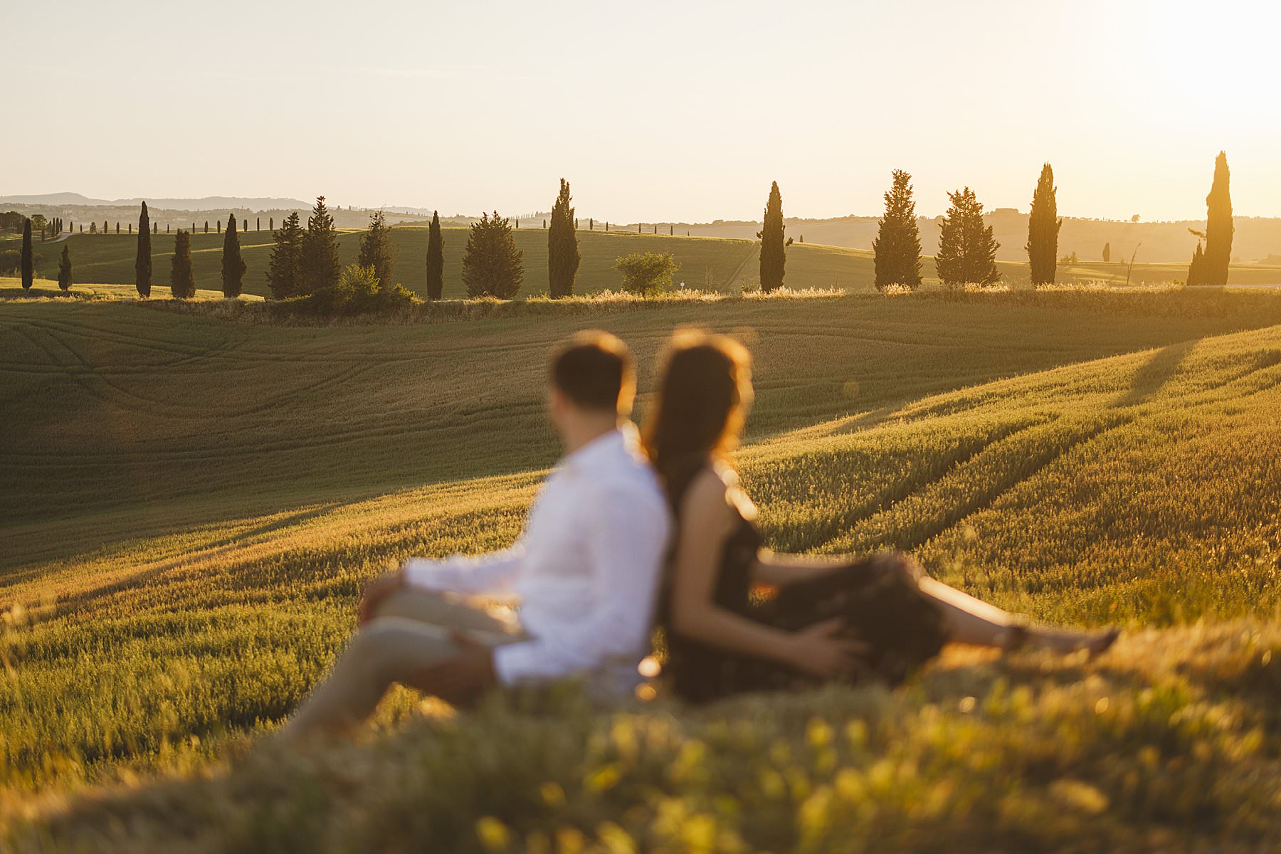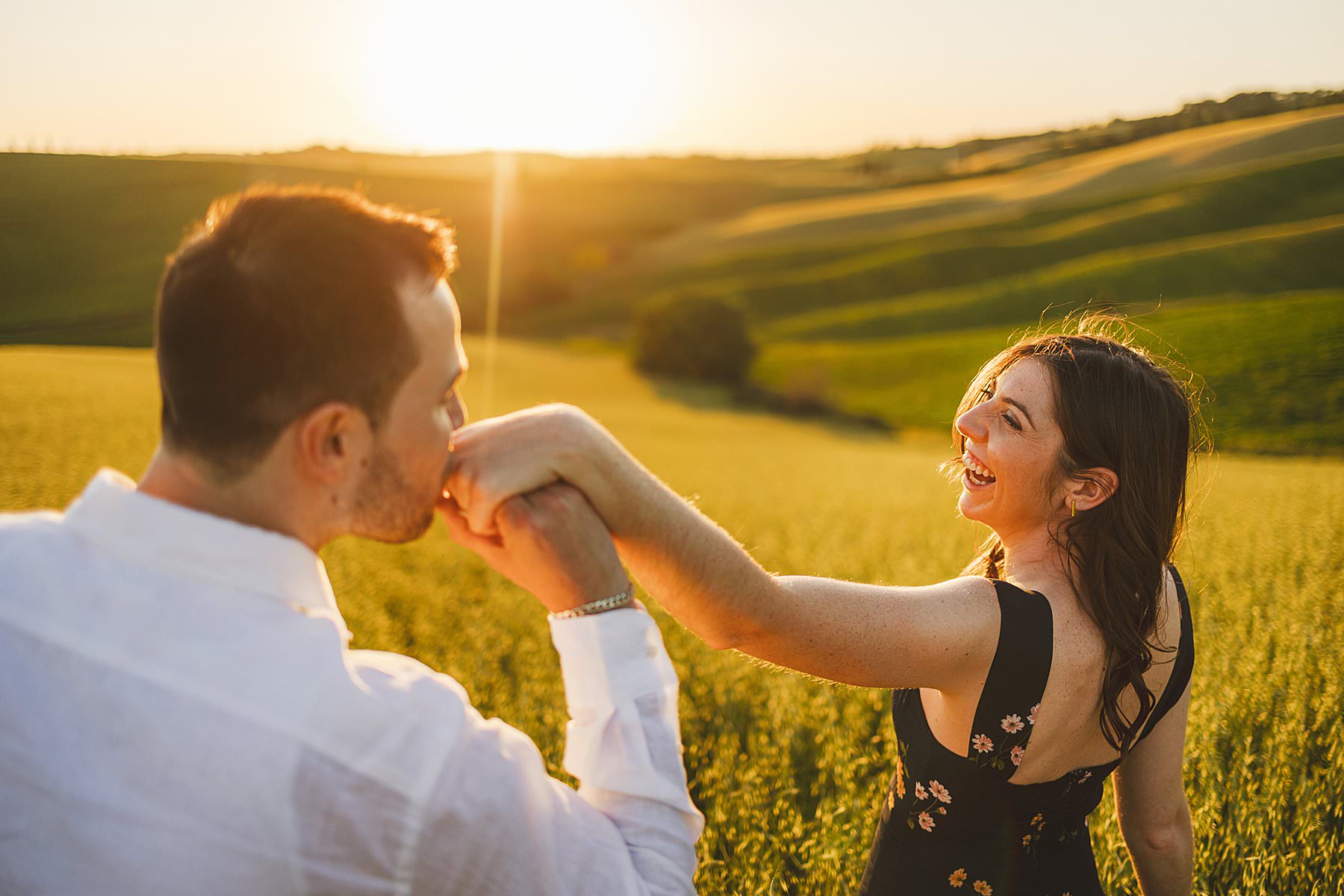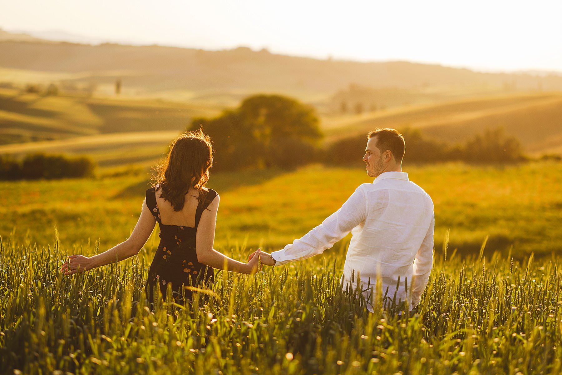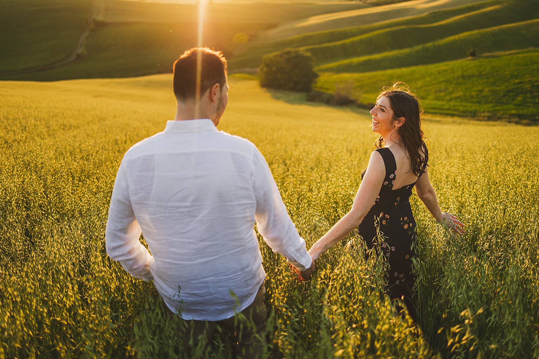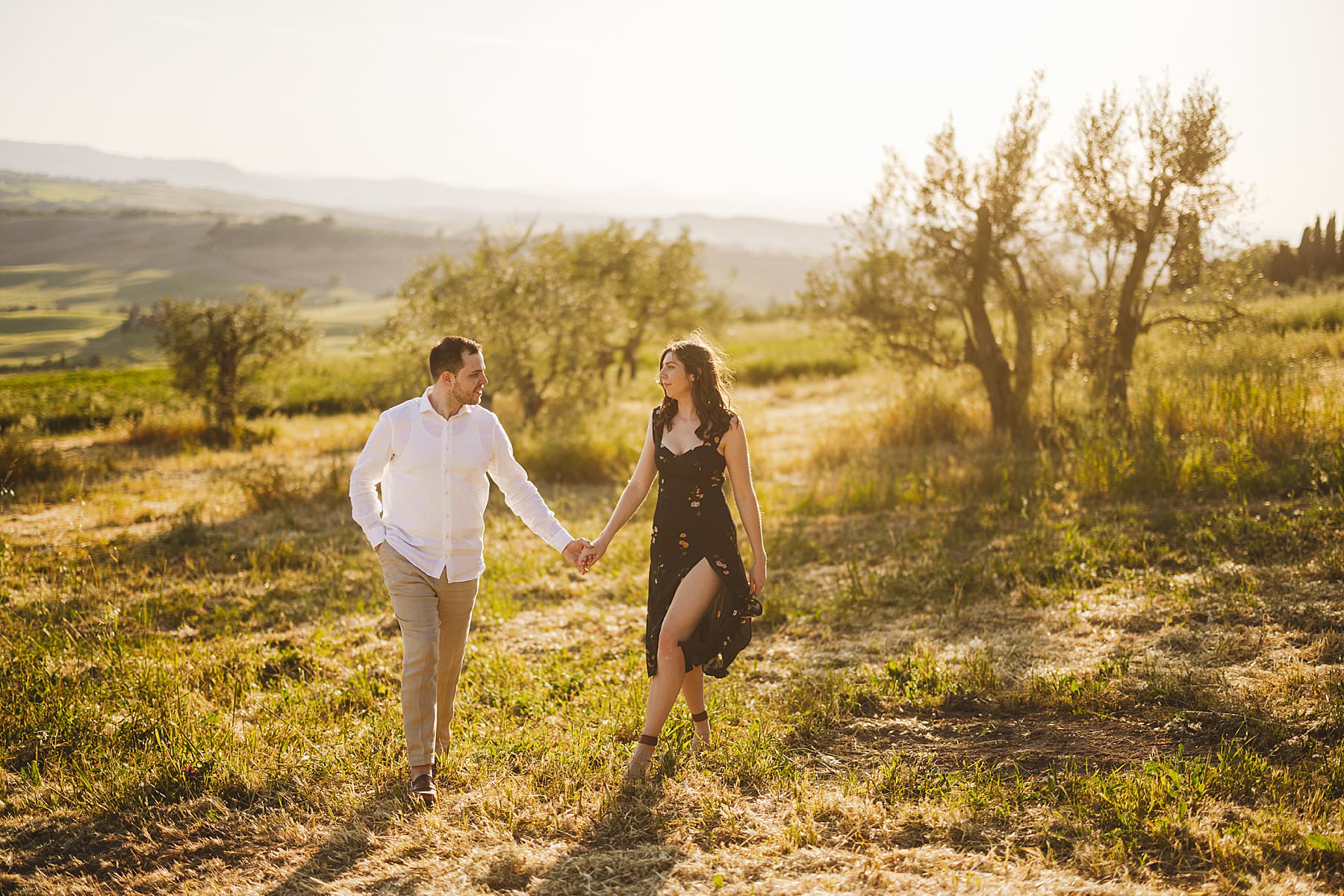Sunset engagement photos in the heavenly Val d’Orcia, Tuscany