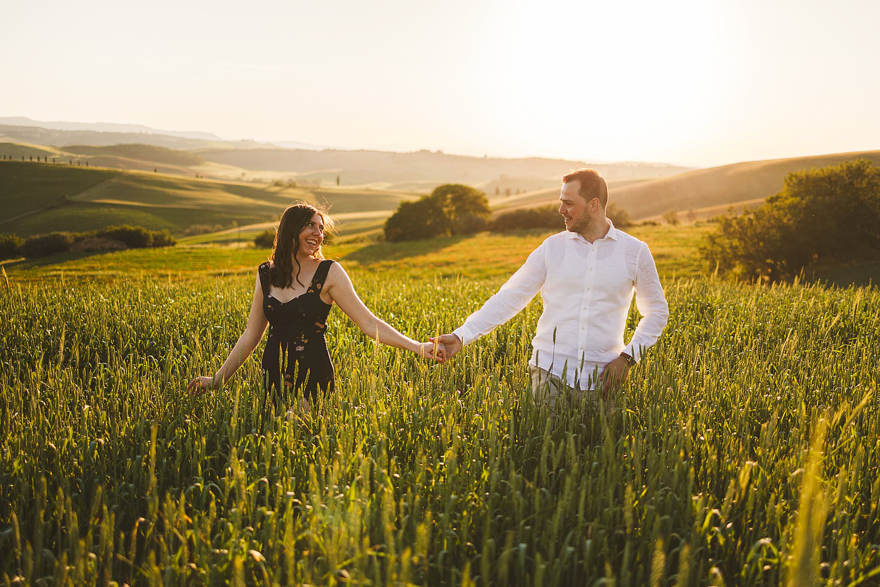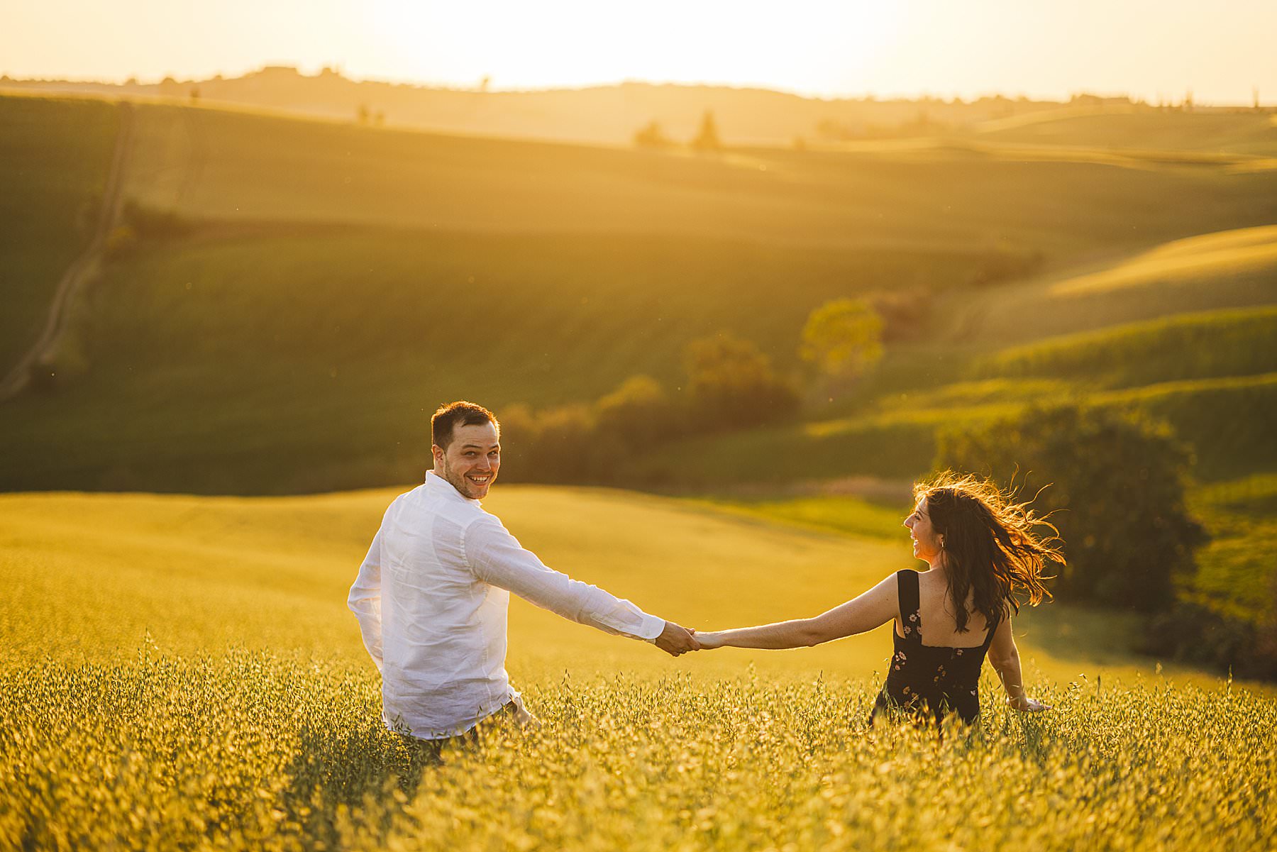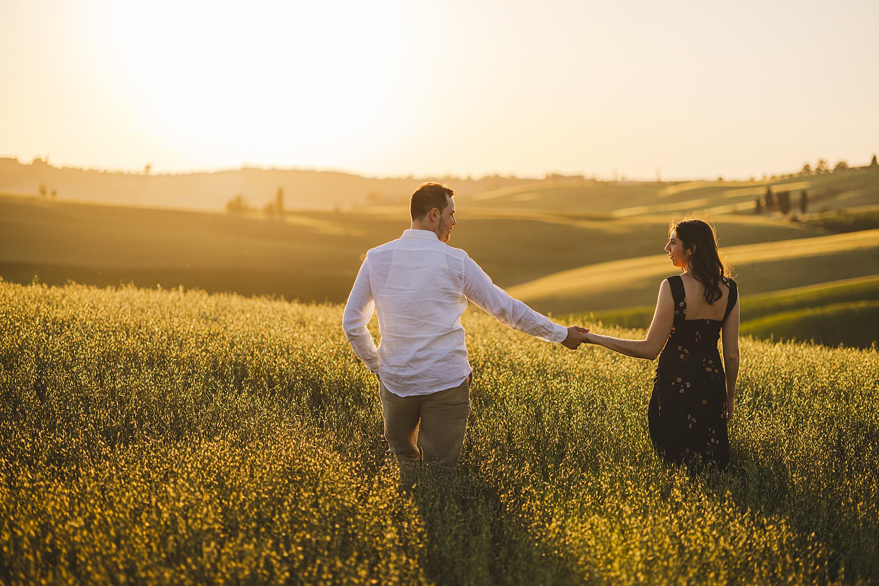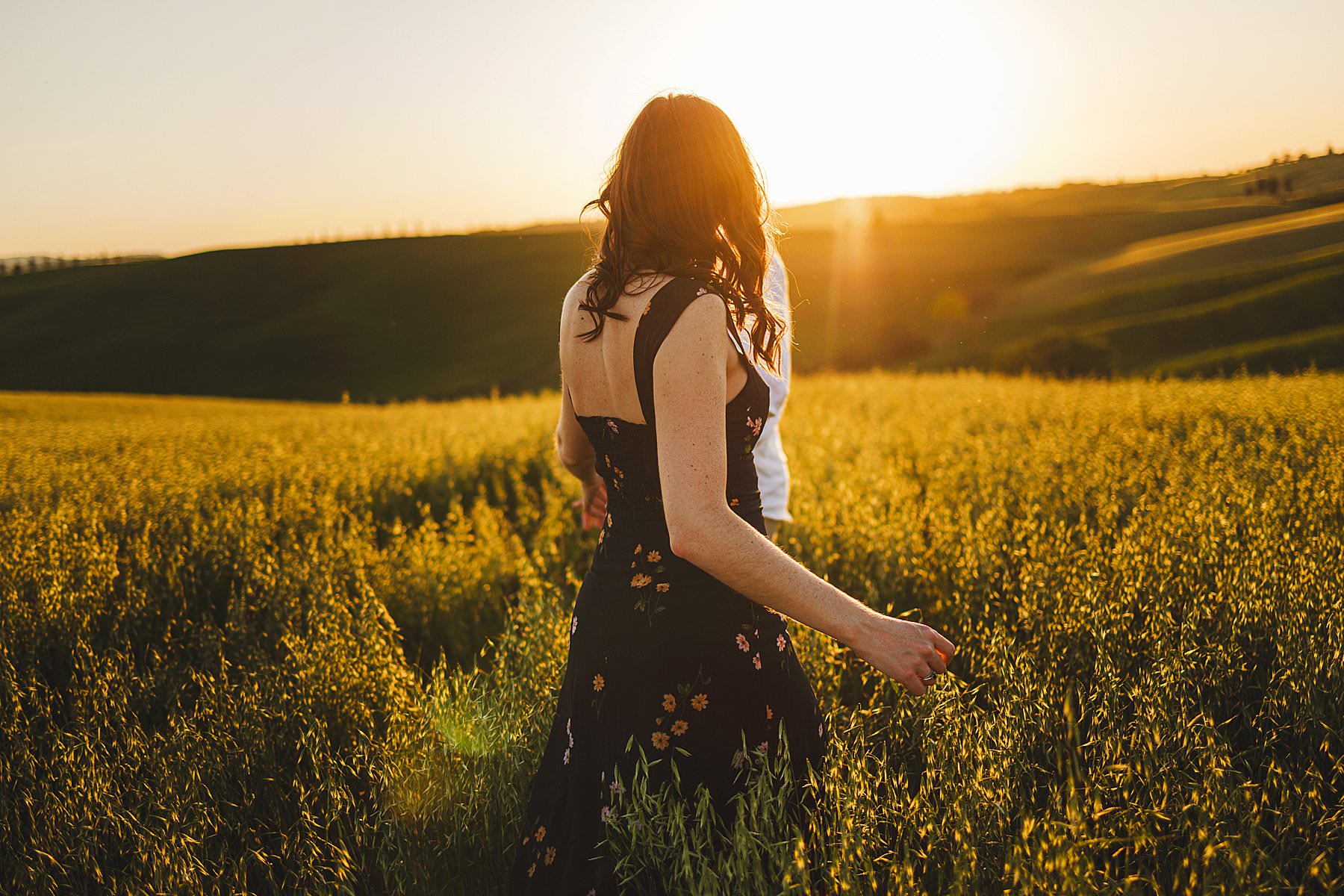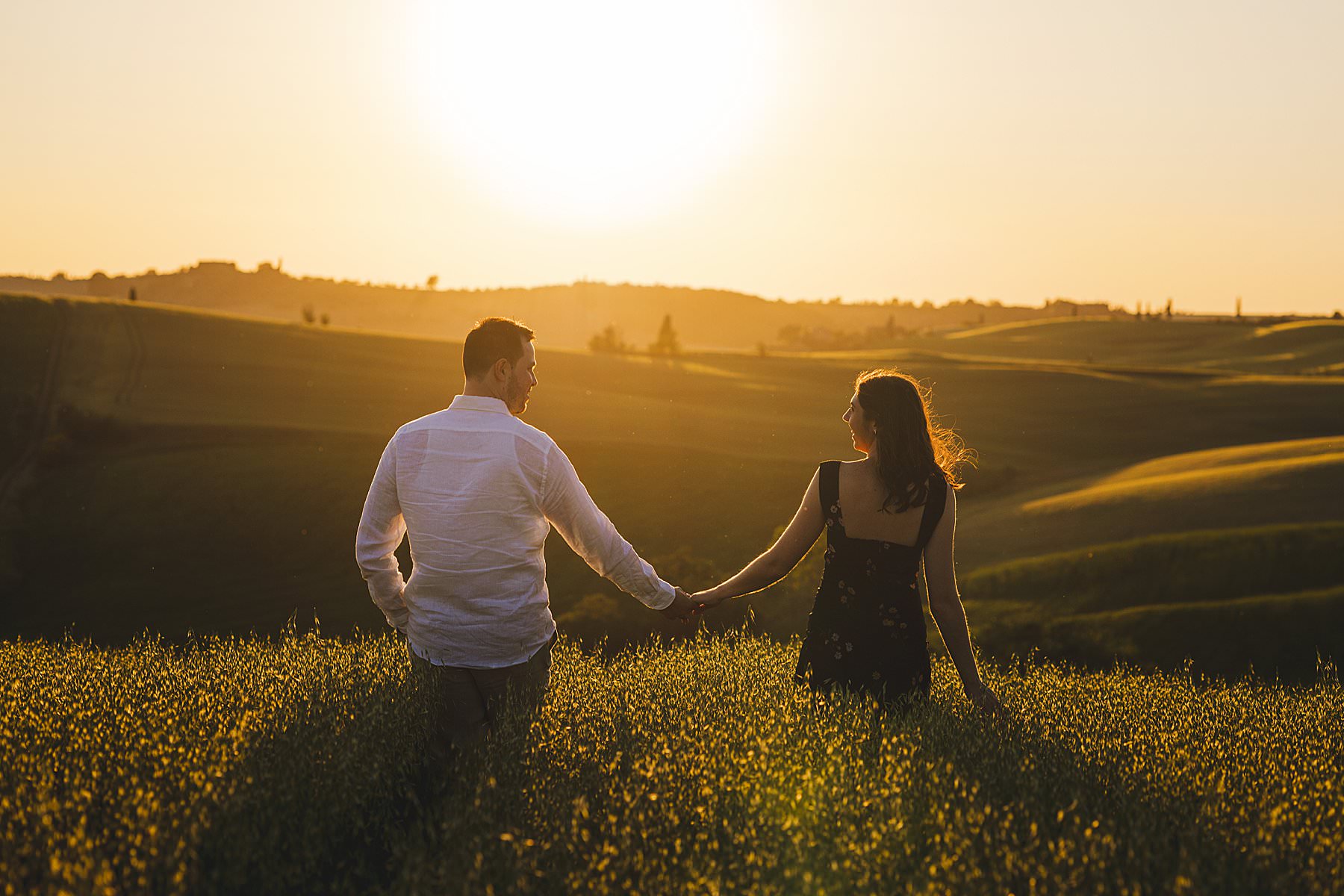 Sunset engagement photos in the heavenly Val d’Orcia, Tuscany