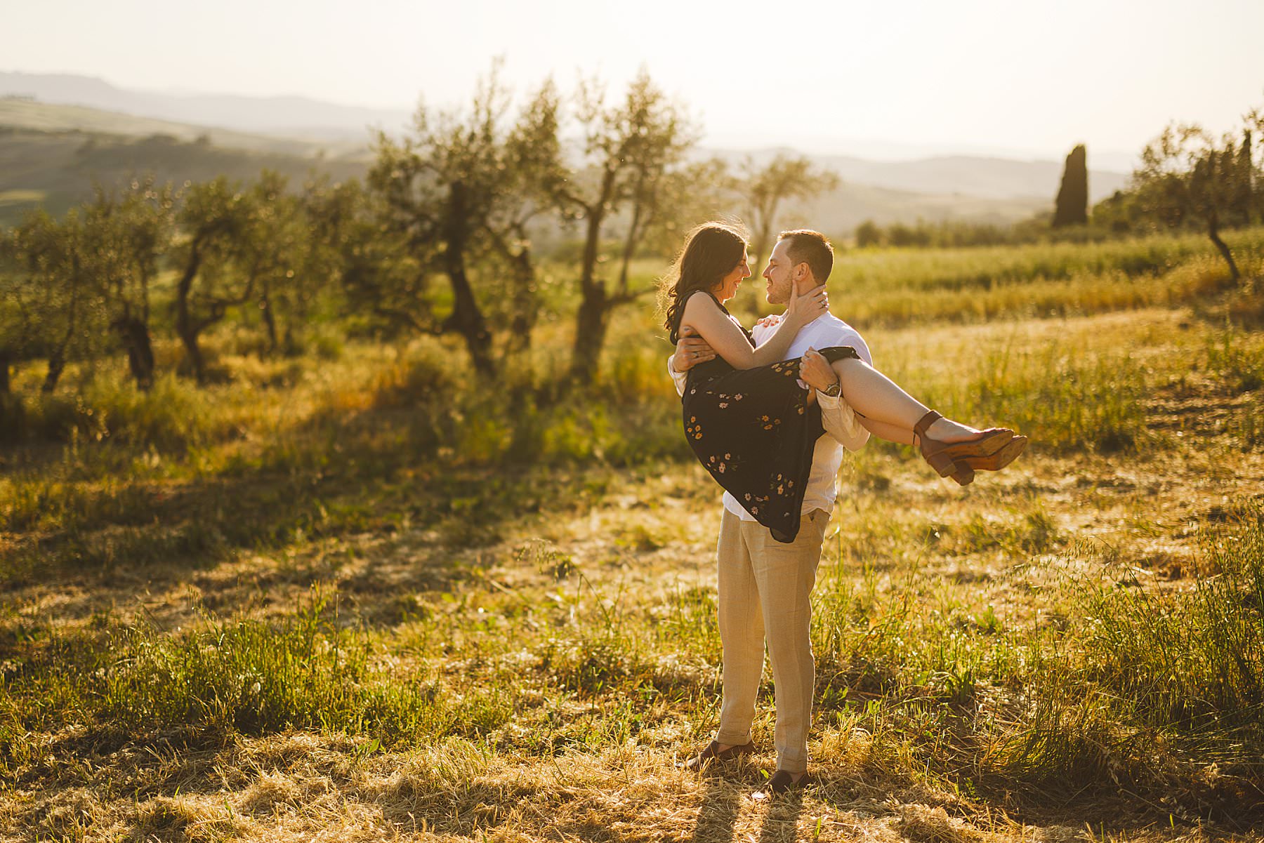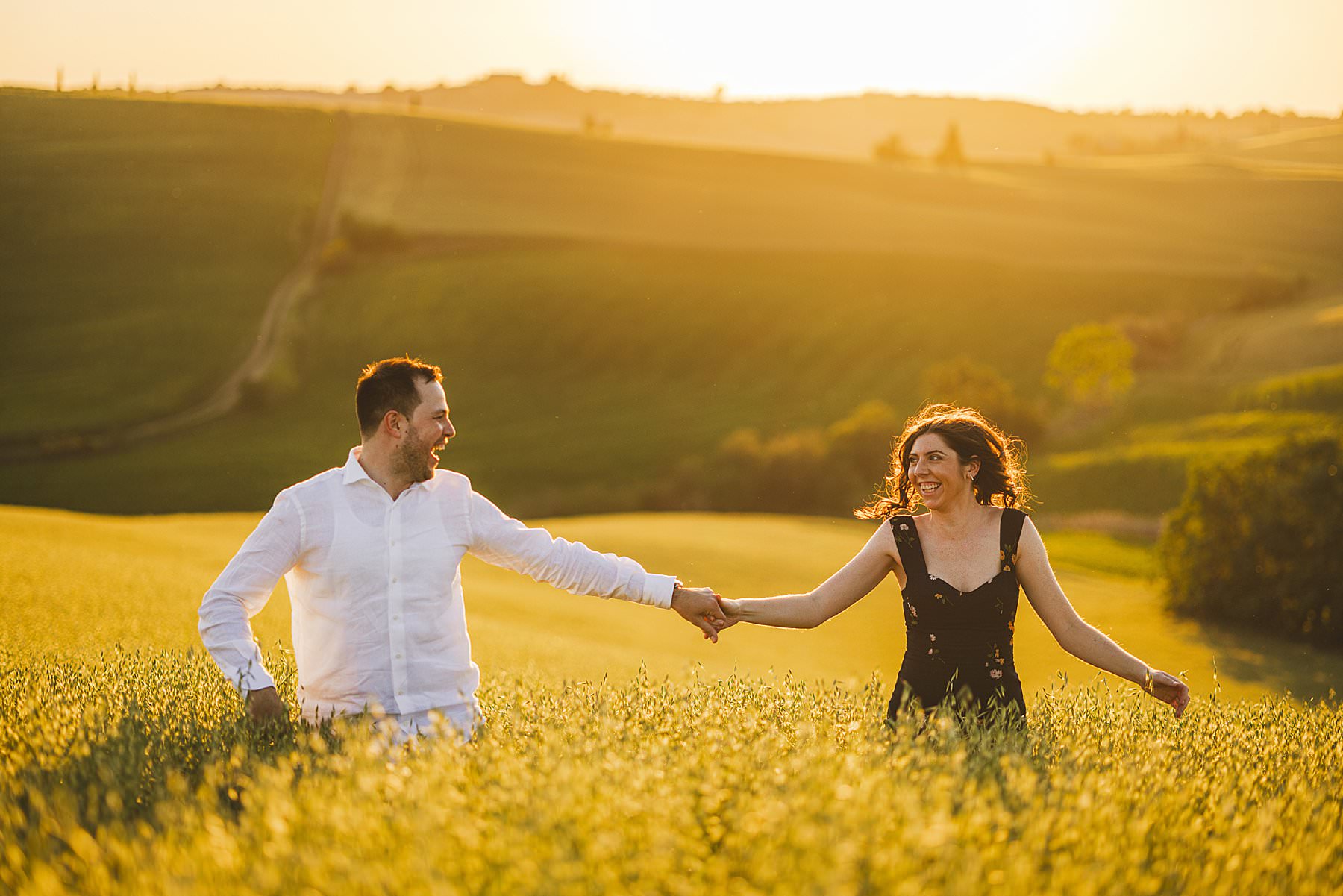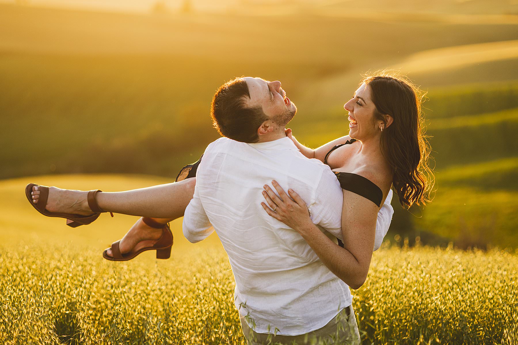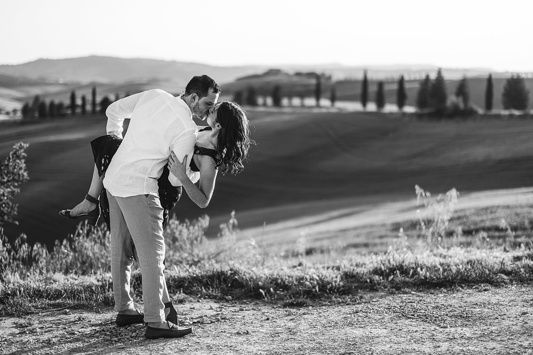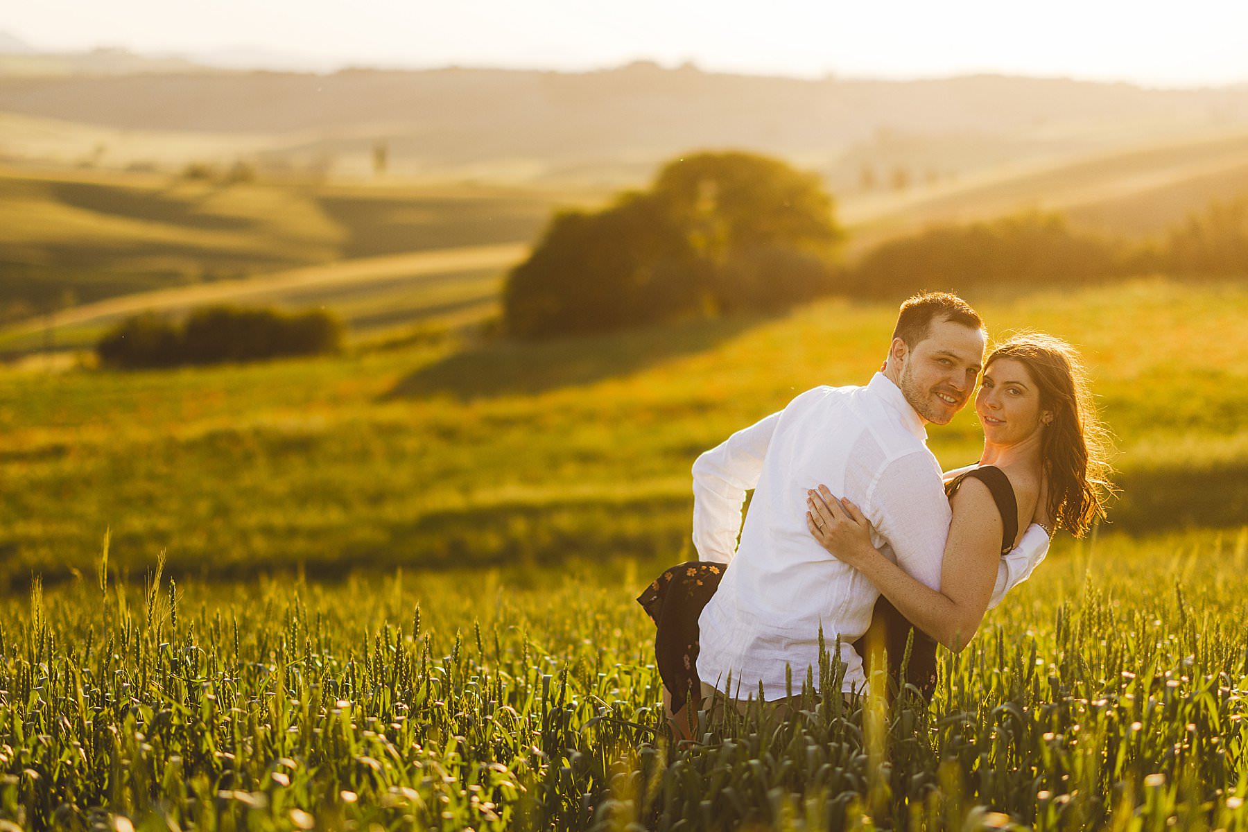 Sunset engagement photos in the heavenly Val d’Orcia, Tuscany