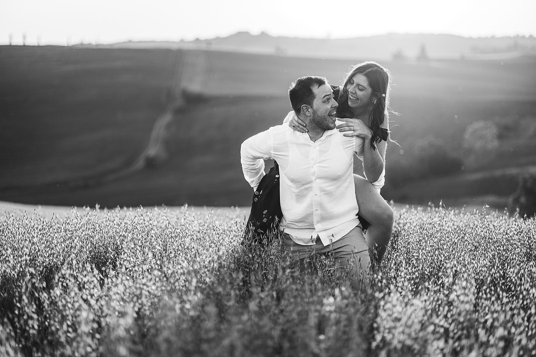 Exciting and lovely engagement photo session in Tuscany and the picturesque Val d’Orcia near Pienza. Photo by the Italian engagement photographer in Tuscany based Florence Gabriele Fani