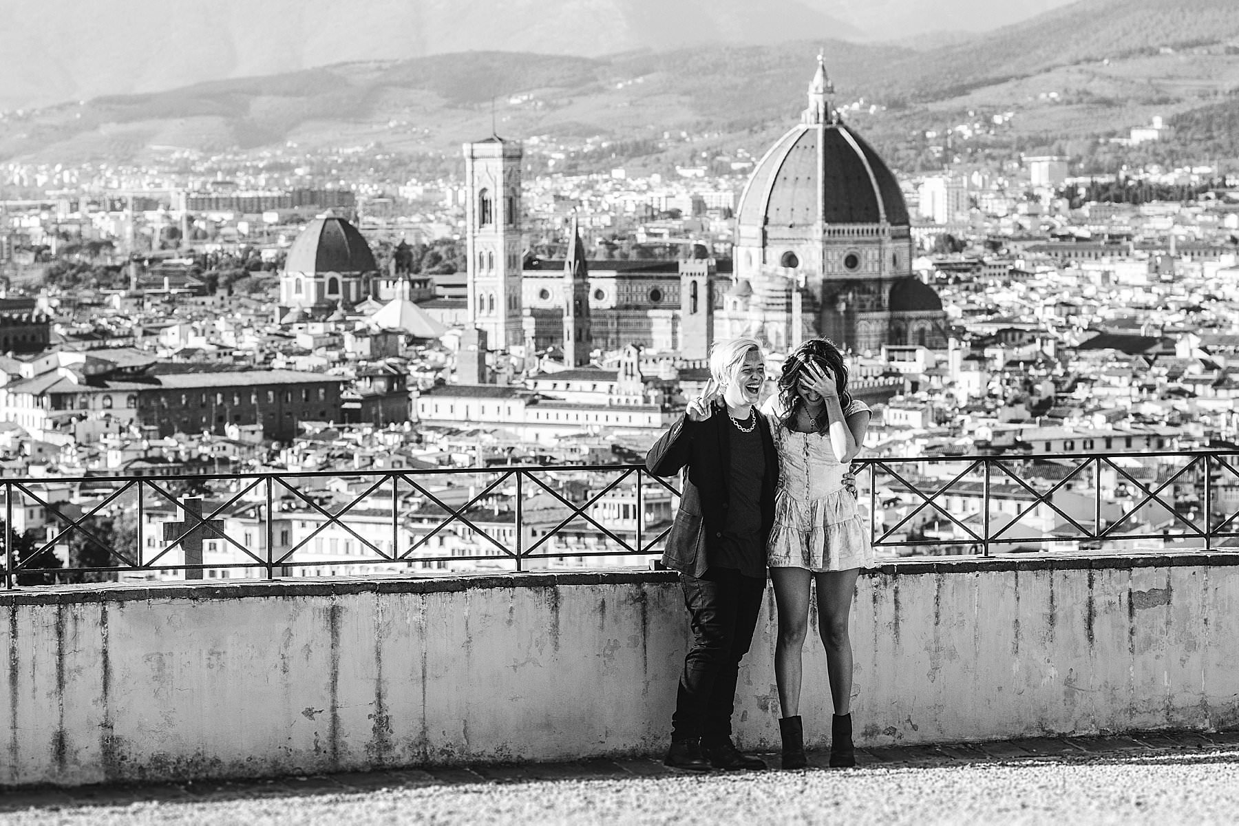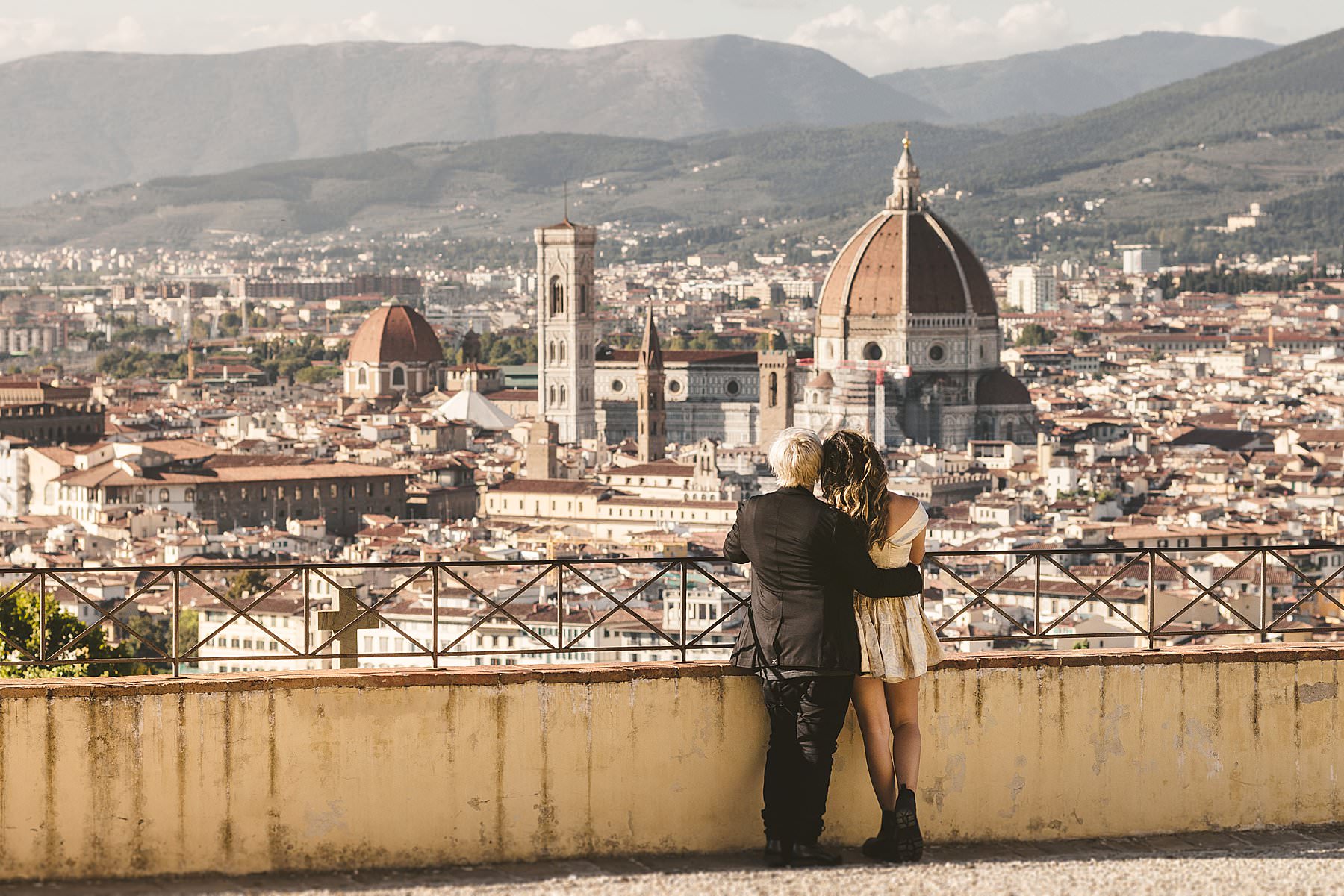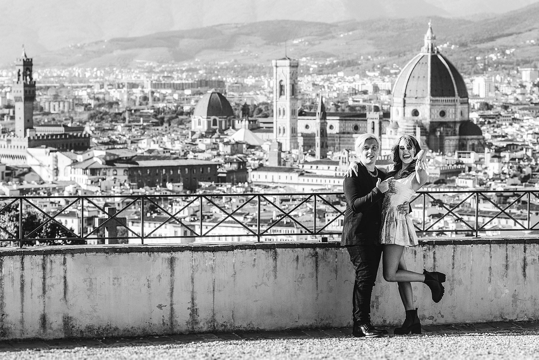 Best iconic panoramic photographic spot in Florence for real surprise proposal photo shoot. Photo by the Italian elegant creative and modern proposal photographer in Tuscany based Florence, Italy