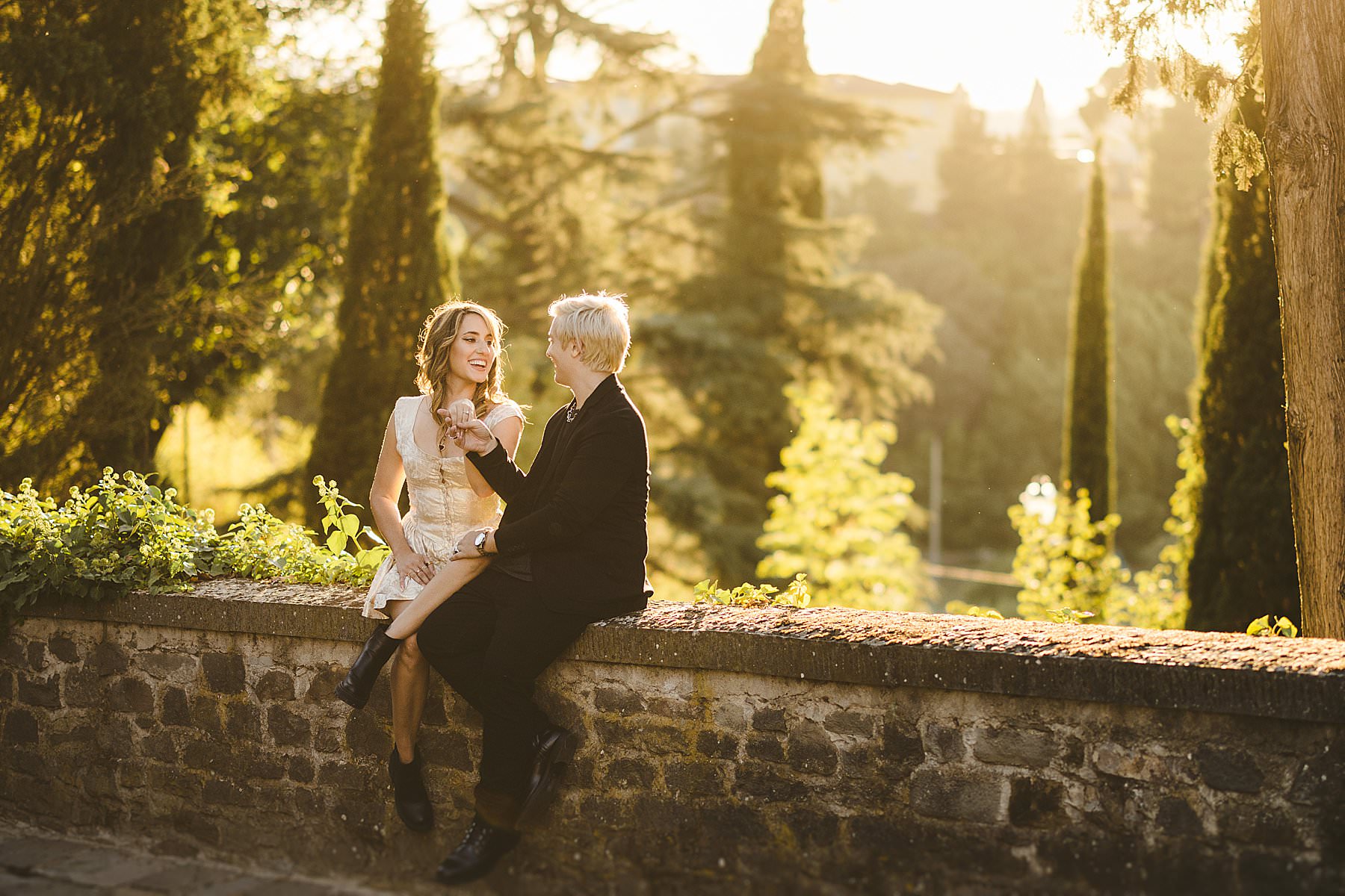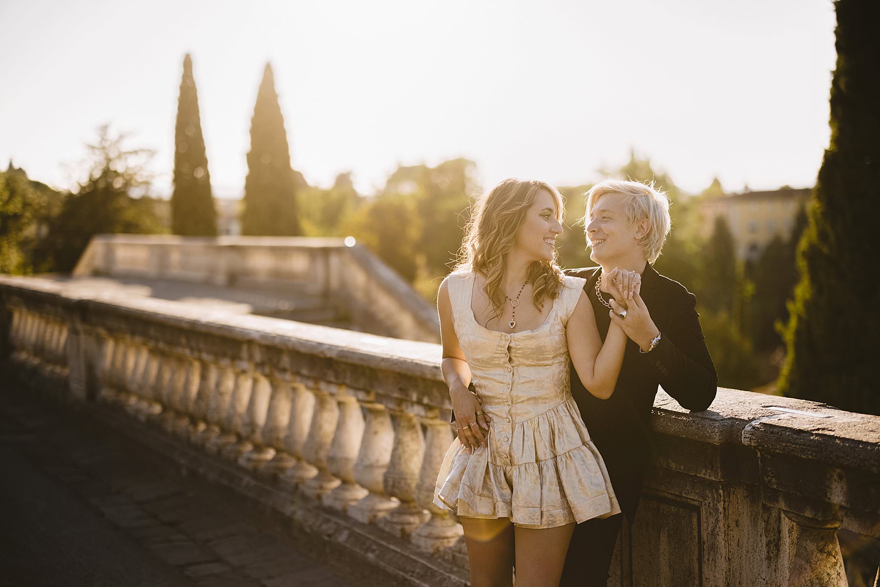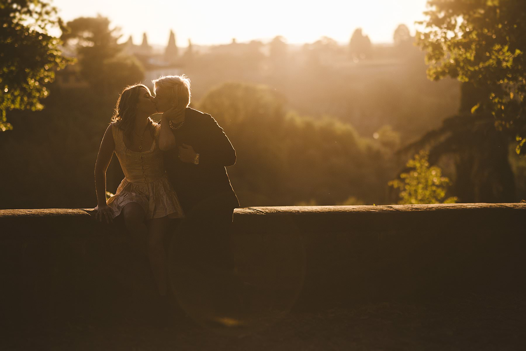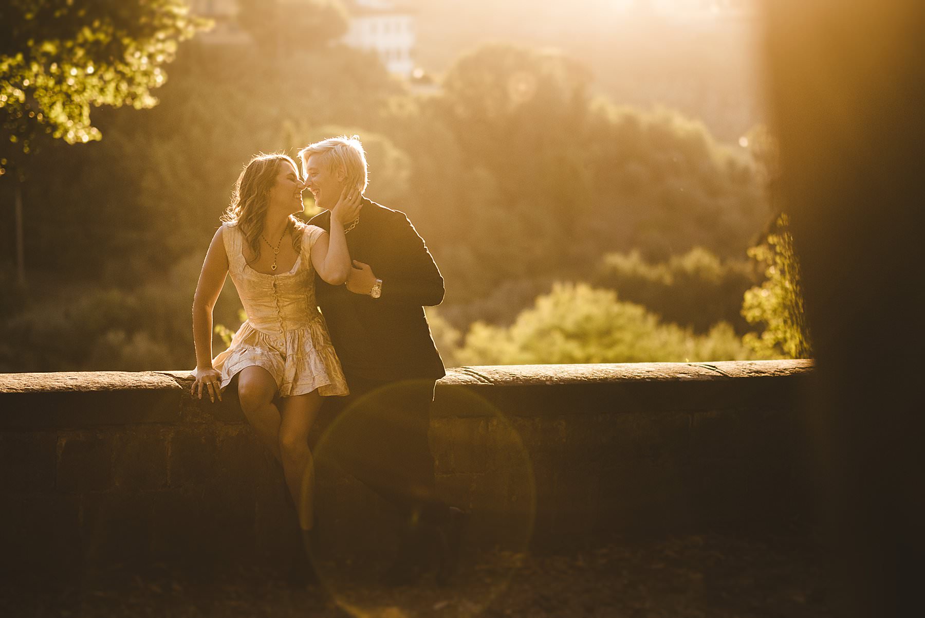 Sweet and romantic sunset couple portrait photo session in Florence, Italy with audio and video recording. Photo by the Italian elegant creative and modern proposal photographer in Tuscany based Florence, Italy