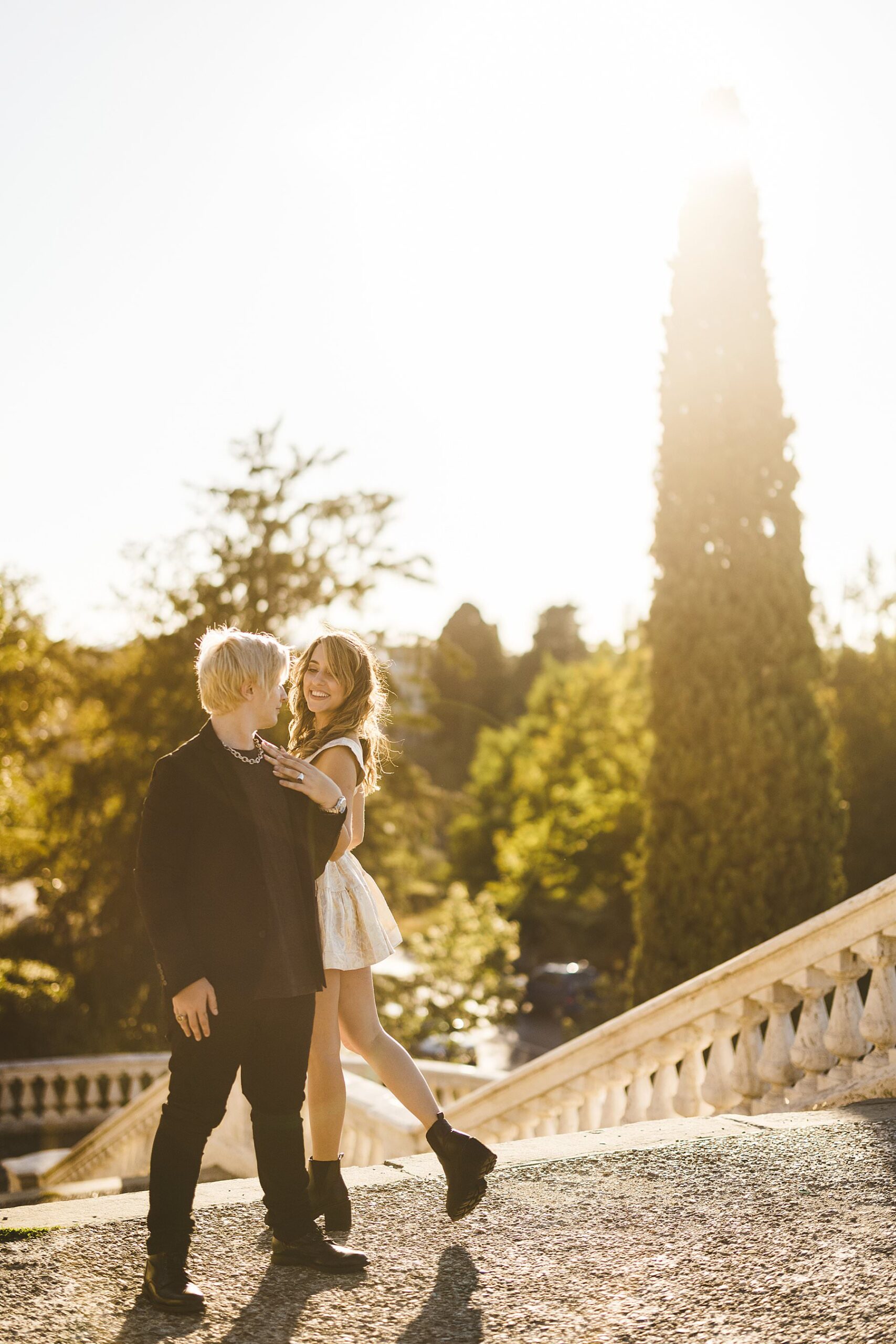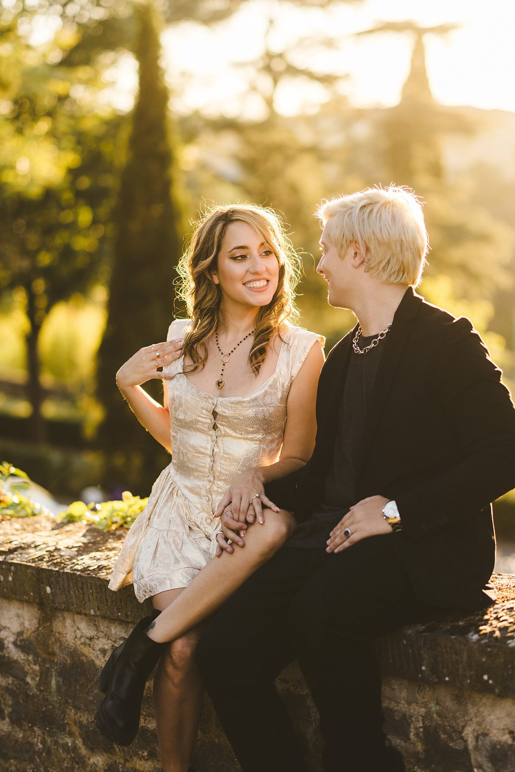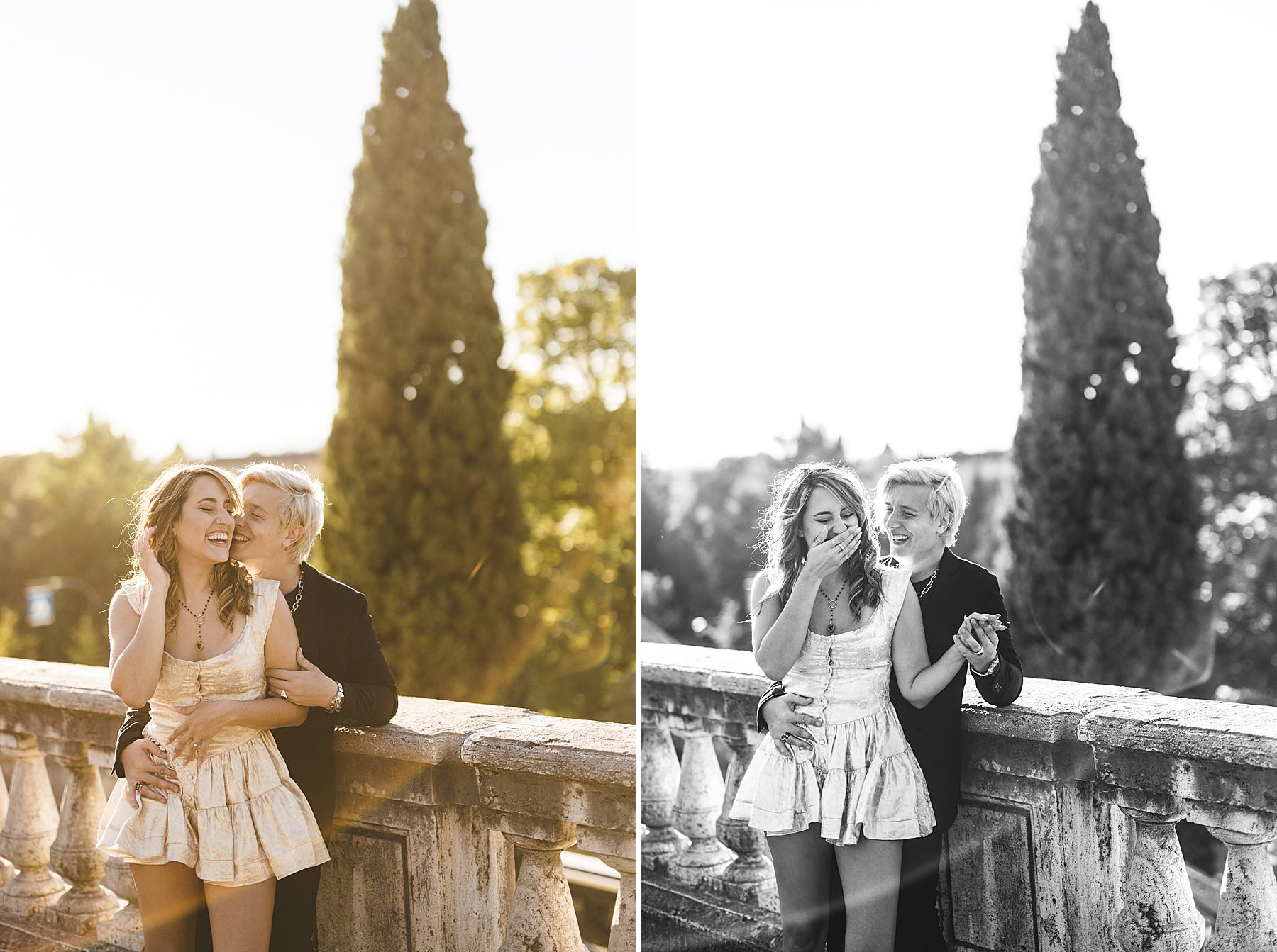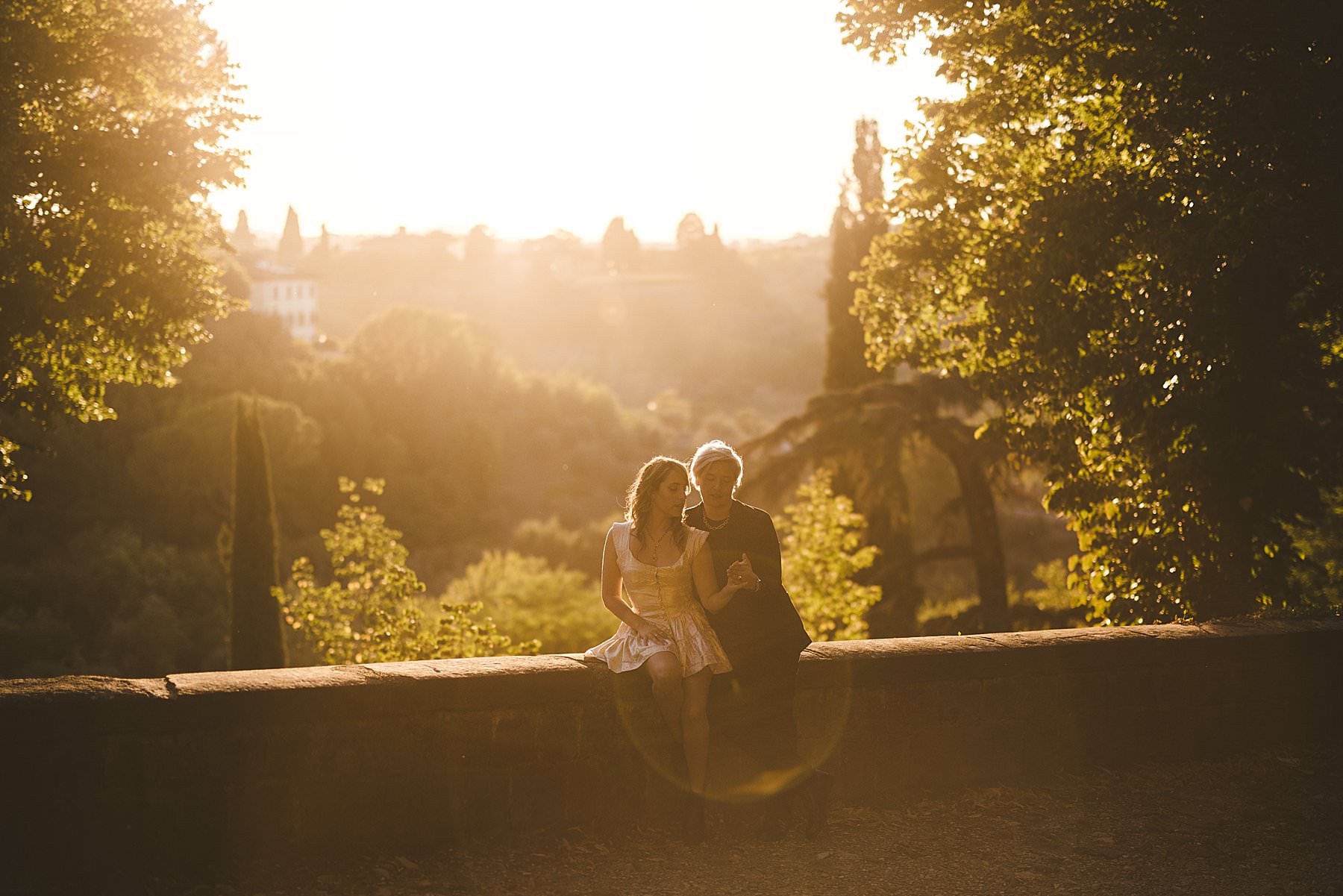 Sweet and romantic sunset couple portrait photo session in Florence, Italy with audio and video recording. Photo by the Italian elegant creative and modern proposal photographer in Tuscany based Florence, Italy