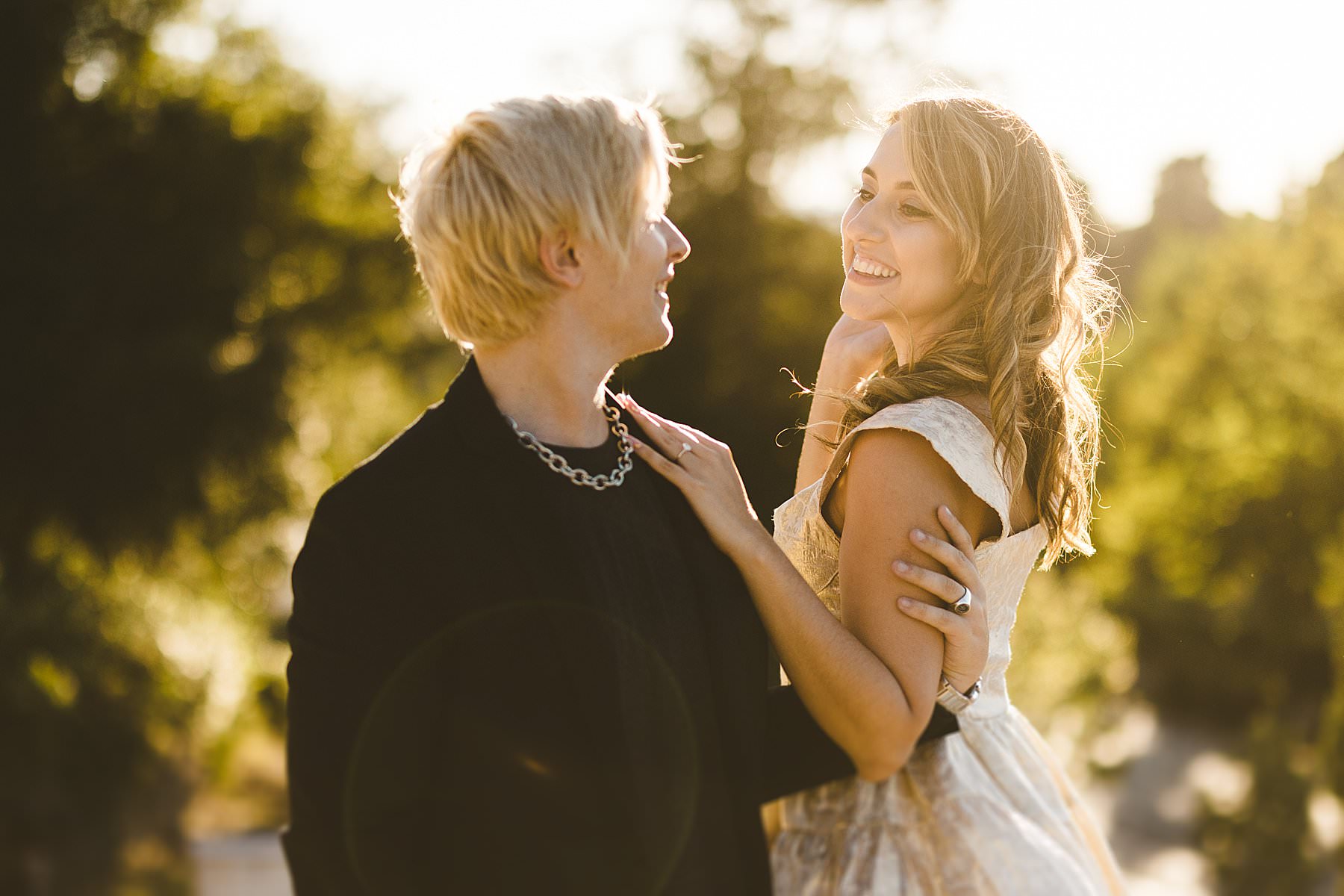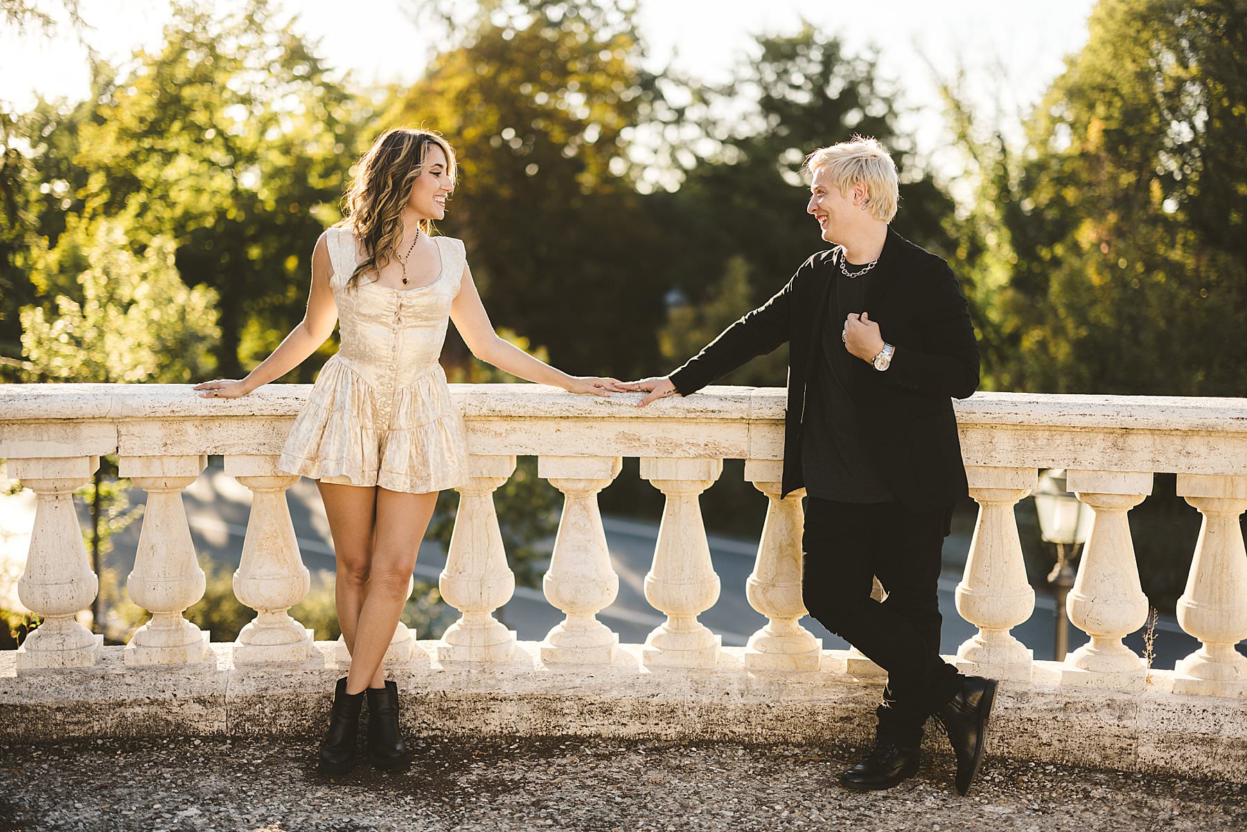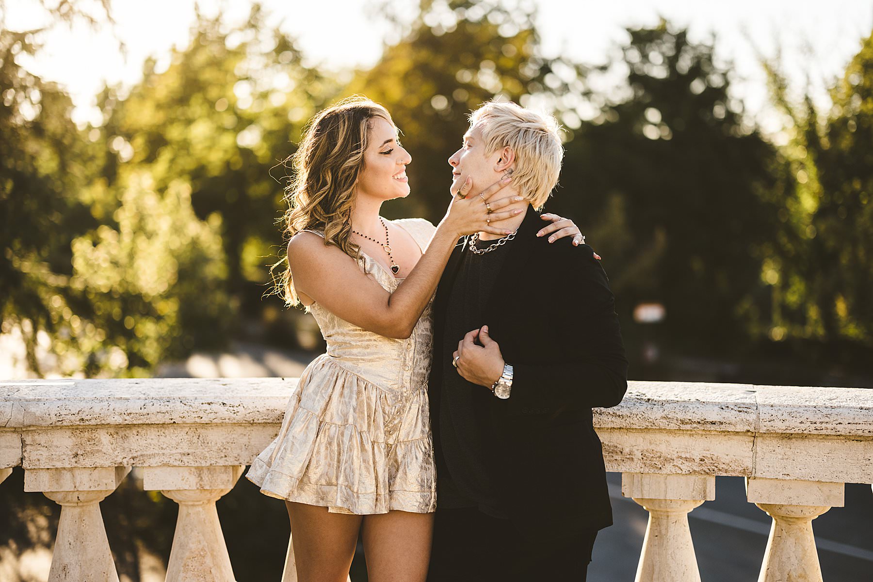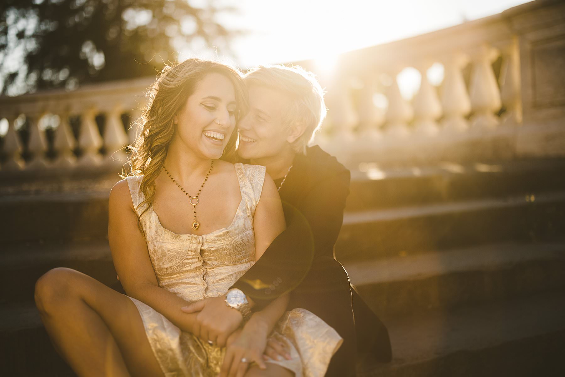 Sweet and romantic sunset couple portrait photo session in Florence, Italy with audio and video recording. Photo by the Italian elegant creative and modern proposal photographer in Tuscany based Florence, Italy