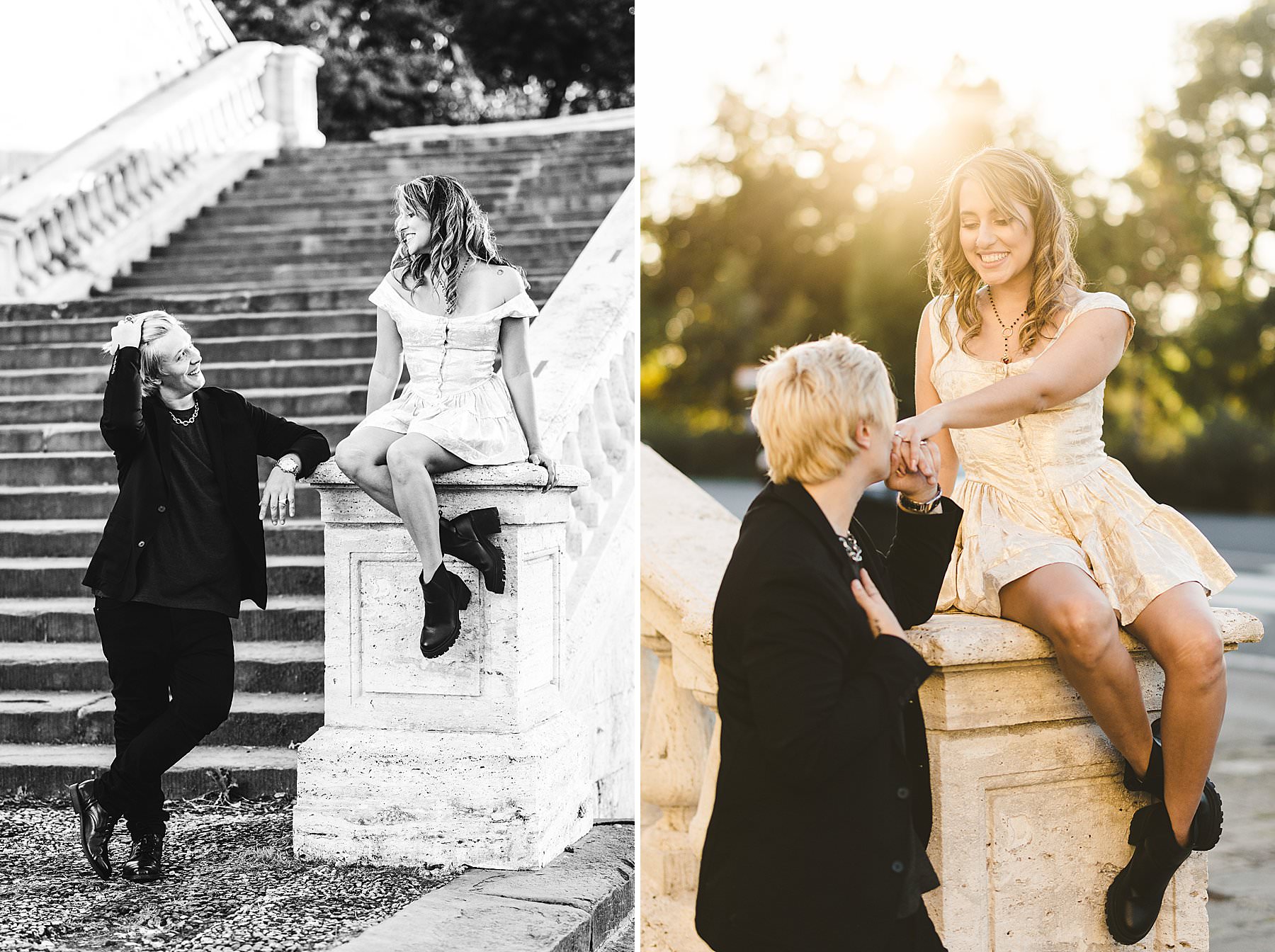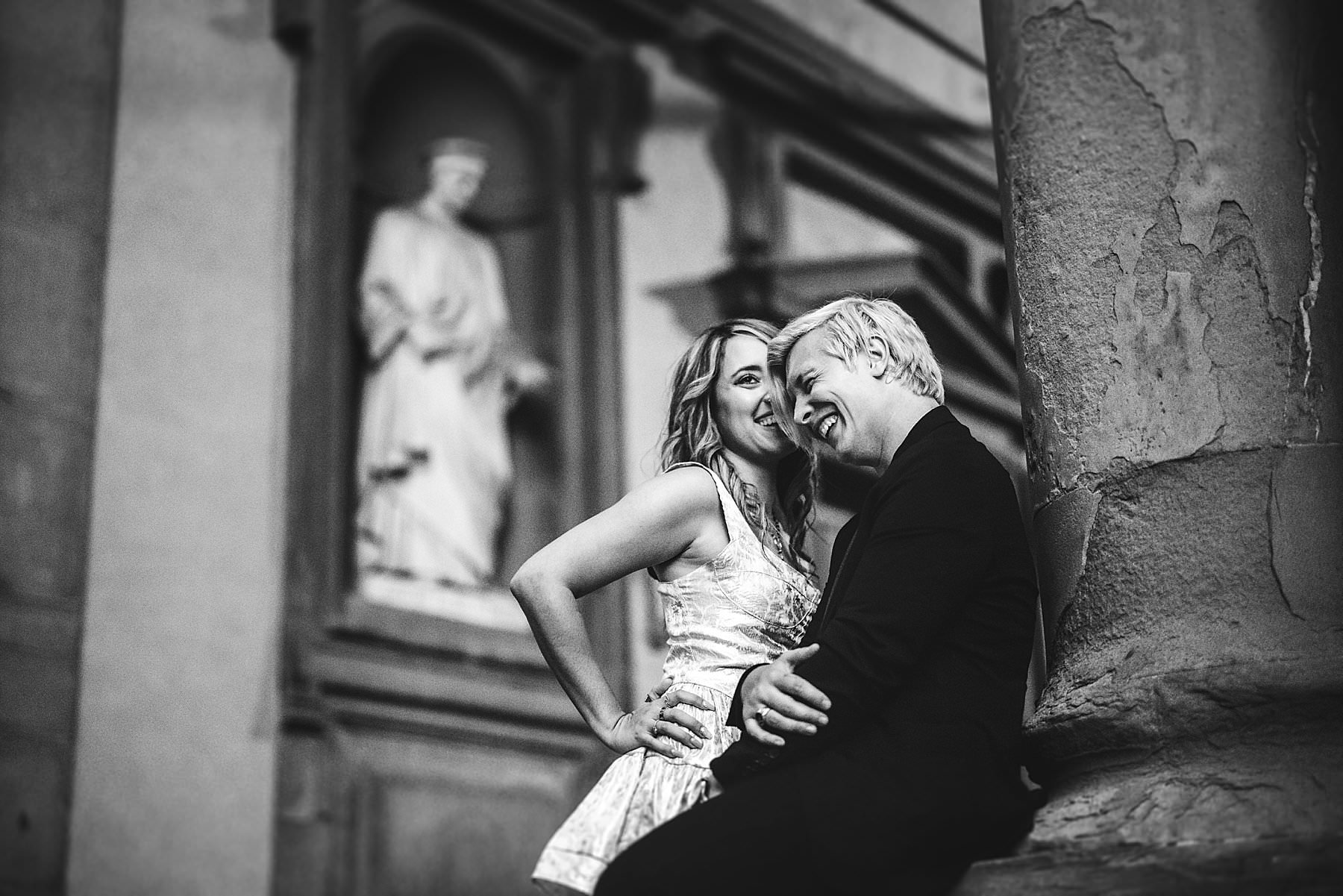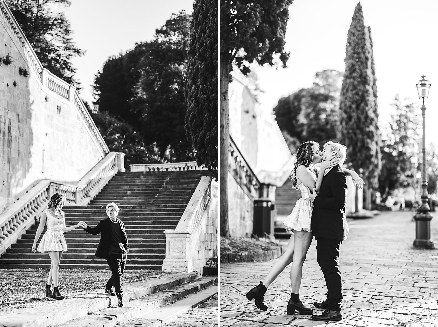 Exciting, fun and spontaneous engagement couple photo session in Florence, Italy. Photo by the Italian elegant creative and modern proposal photographer in Tuscany based Florence, Italy